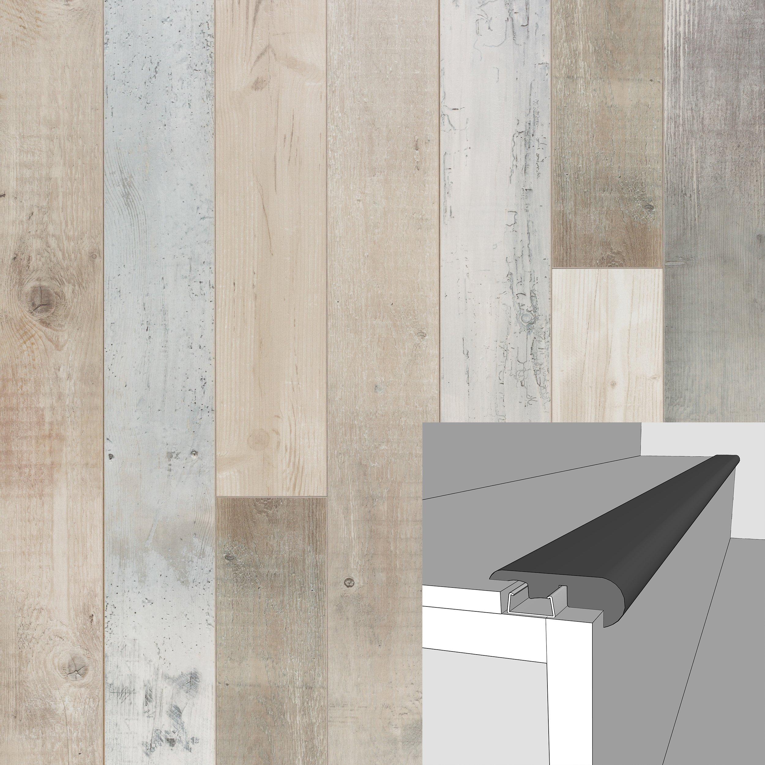 United States of AmericaFloor moldings, such as Seascape Mist Pine 94in. Laminate Overlapping Stair Nose, are a necessity to complete any flooring project. Whether you are transitioning between two rooms, or between two different types of flooring, floor moldings are key to finishing your floor with a great look!