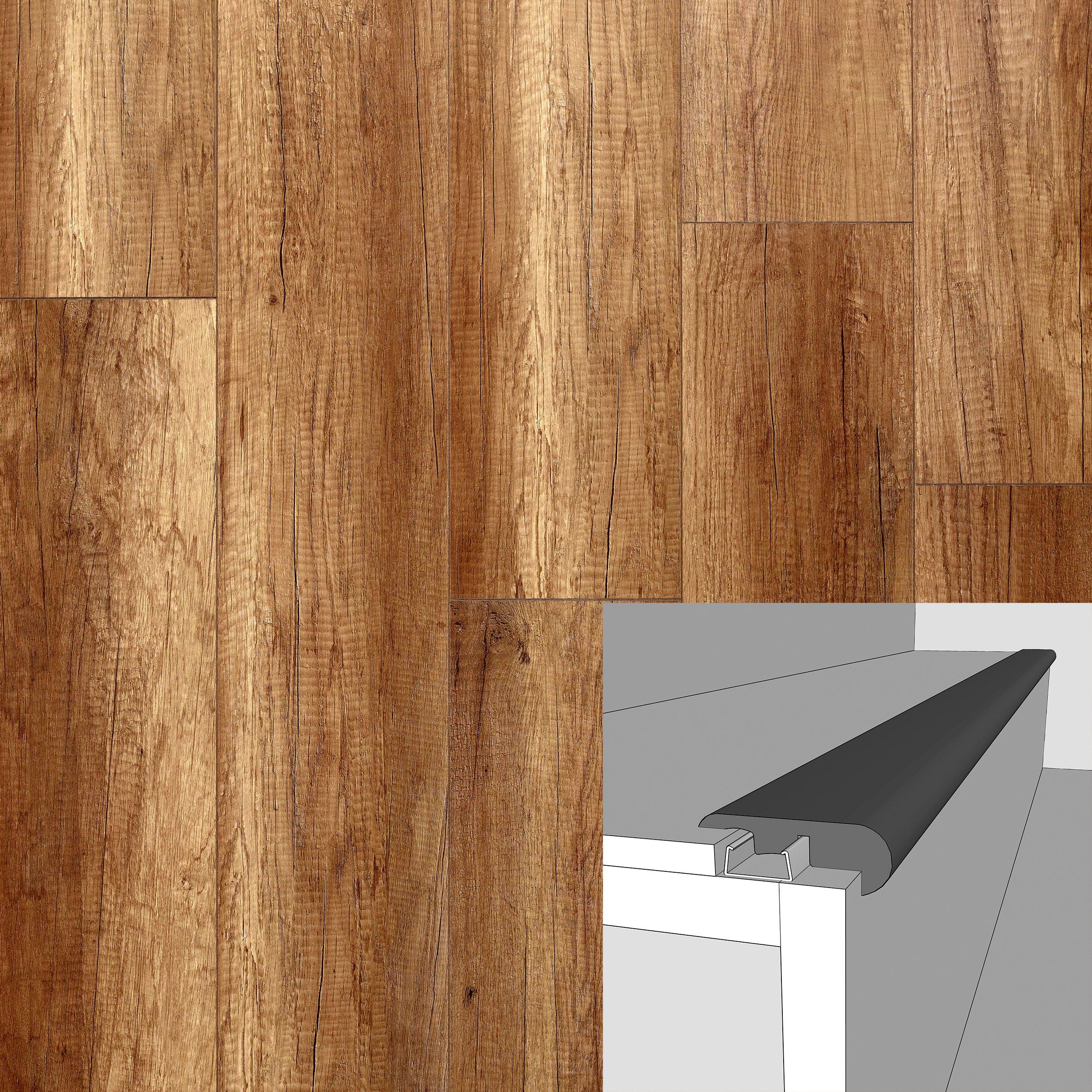 United States of AmericaFloor moldings, such as Timberline Oak 94in. Laminate Overlapping Stair Nose, are a necessity to complete any flooring project. Whether you are transitioning between two rooms, or between two different types of flooring, floor moldings are key to finishing your floor with a great look!