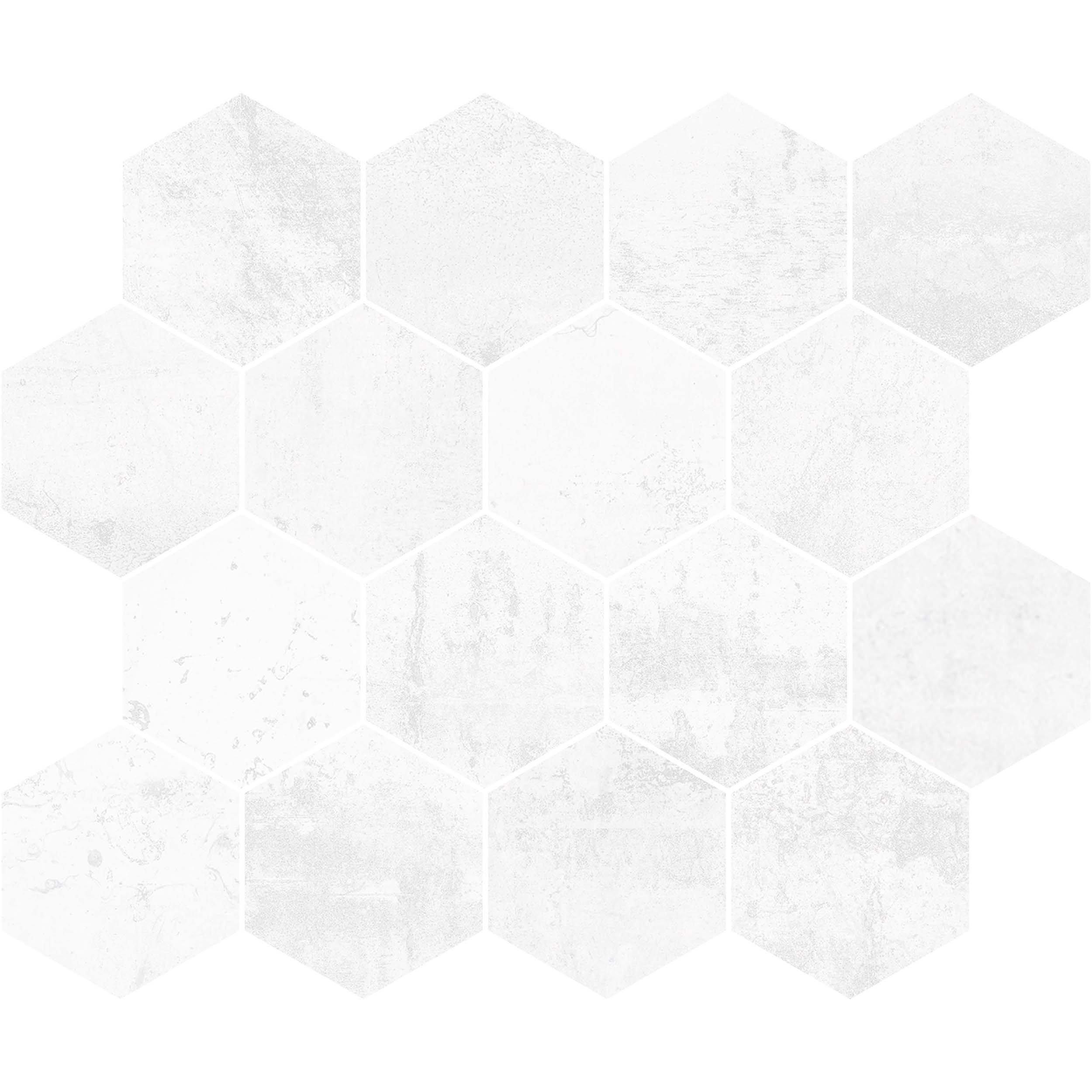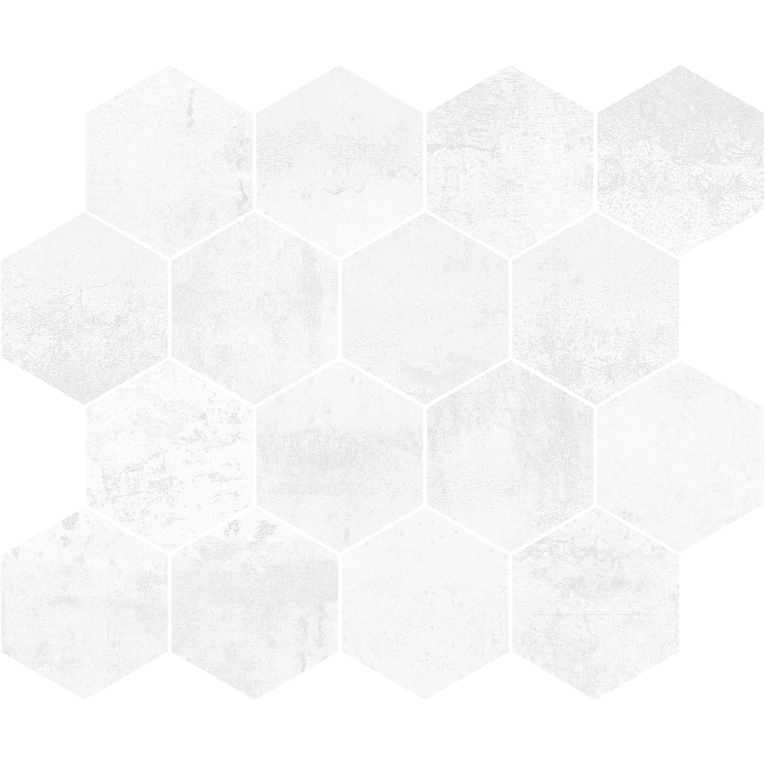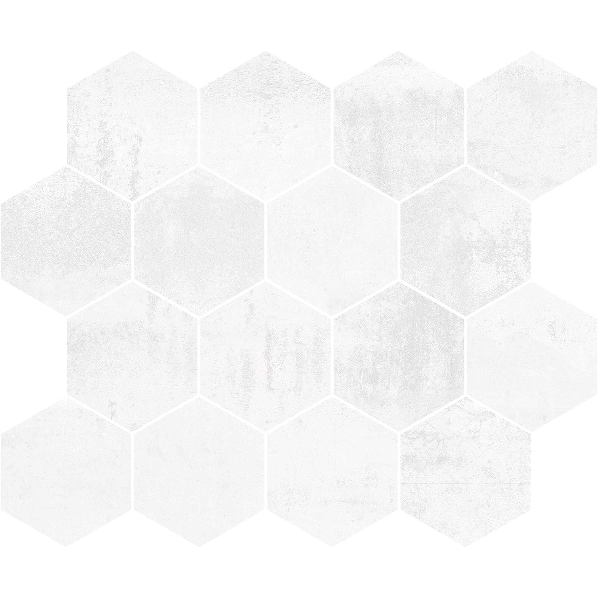 This white matte Alexei White Hexagon Porcelain Mosaic is 11 x 13.