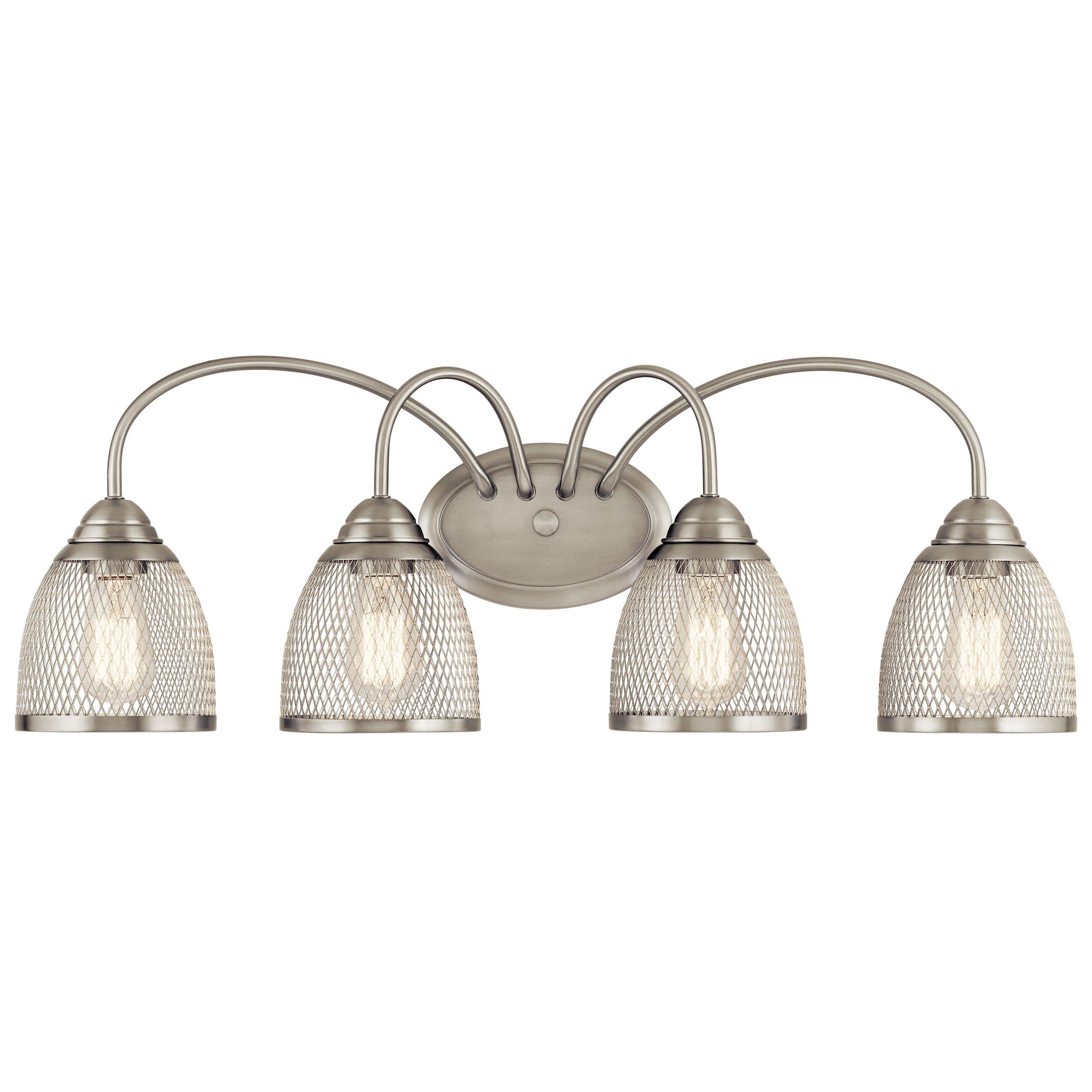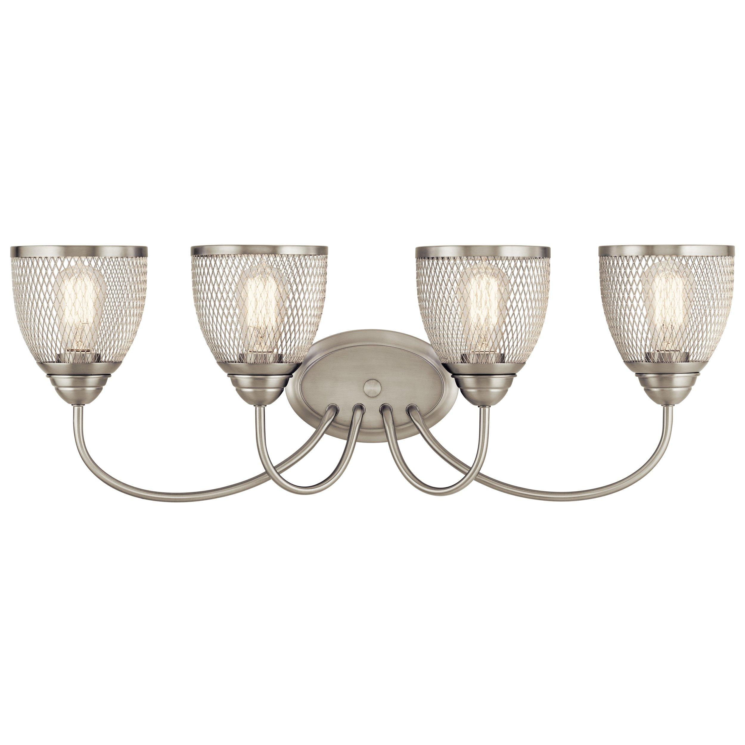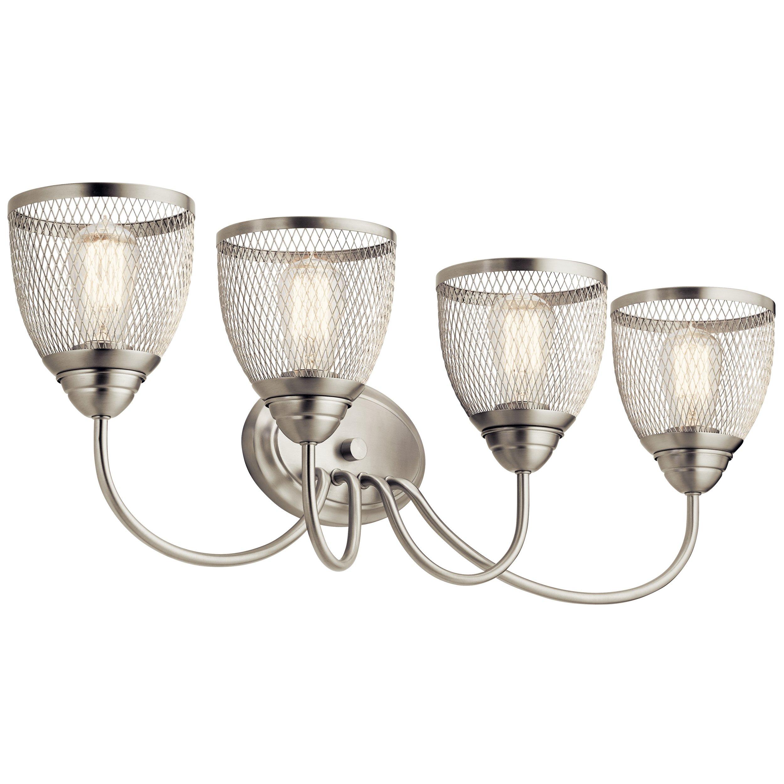 Accent your bathroom with this 32in. Voclain Brushed Nickel Quad Sconce in silver. Our varied selection of bathroom accessories is sure to offer just the right finishing pieces for your bath or shower project. We offer corner shelves, towel bars, soap dishes and more in a variety of materials, colors, and finishes.