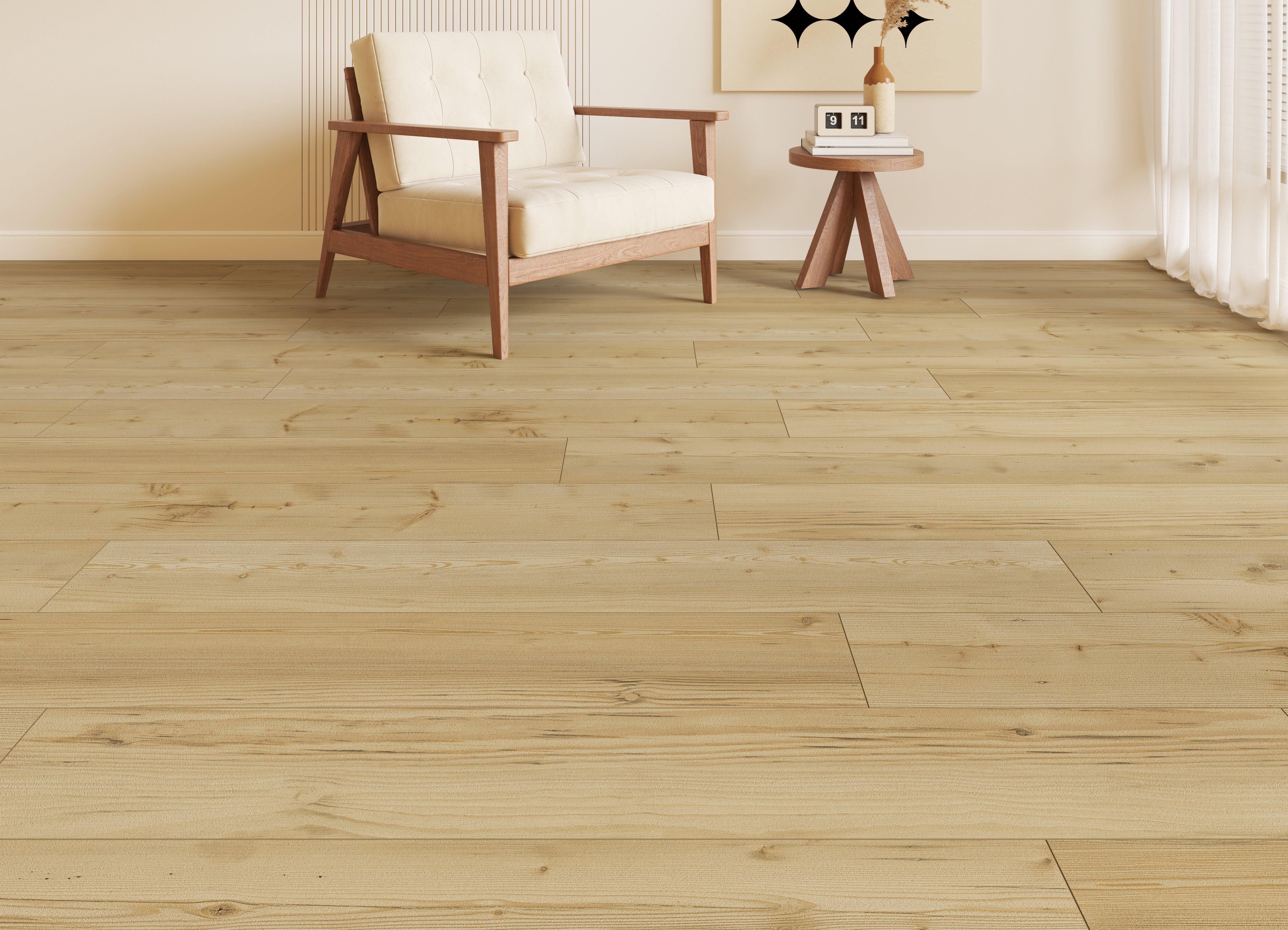 Pre-attached hypoallergenic cork pad creates a quieter, warmer floor with 7.5 mm total flooring thickness. Sentinel Protect Plus underlayment recommended for increased performance.