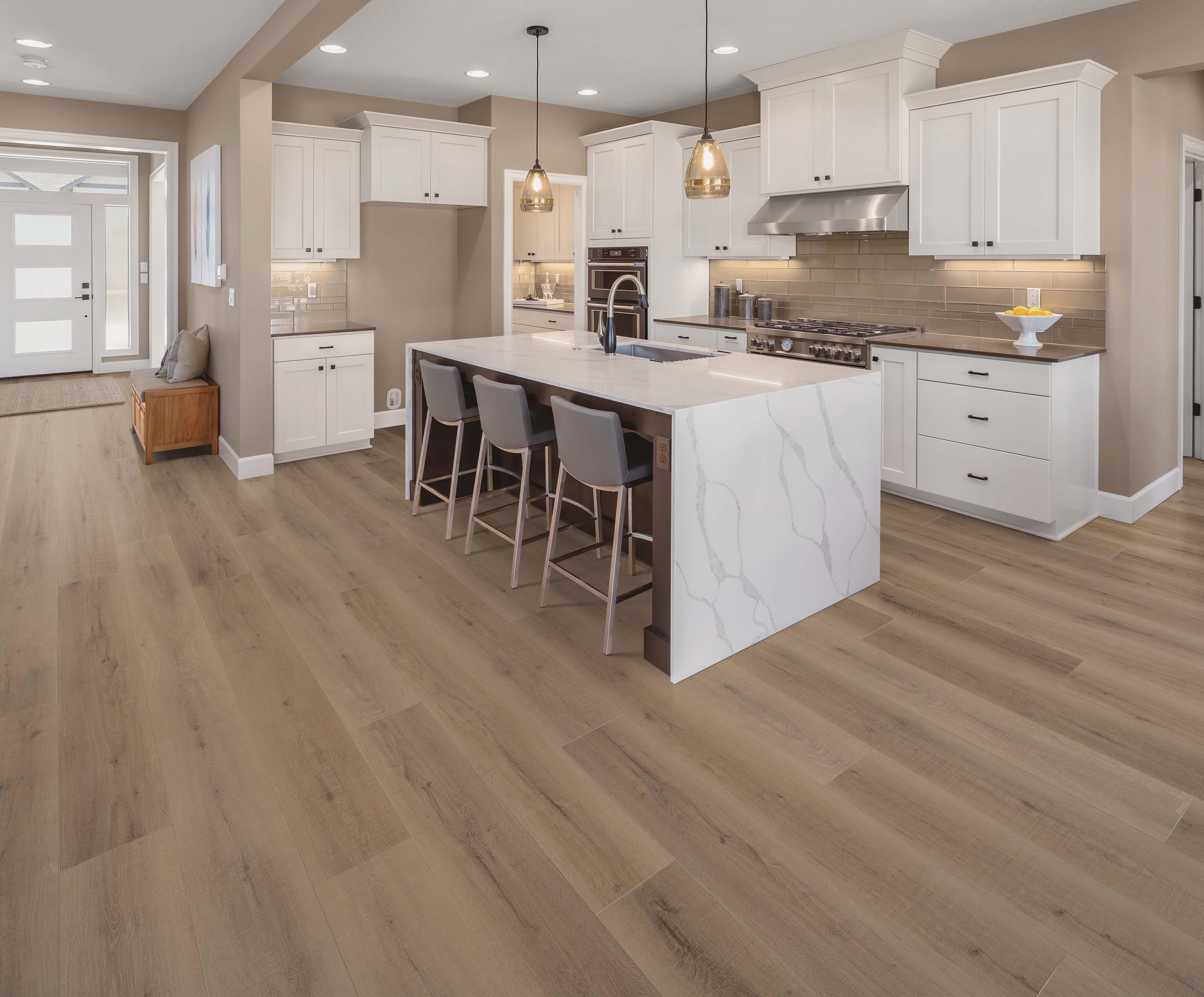 • 100% waterproof. Install it in virtually any room in the home (kitchens, full bathrooms, and basements). Install up to 6,400 square feet. No need for transition molding