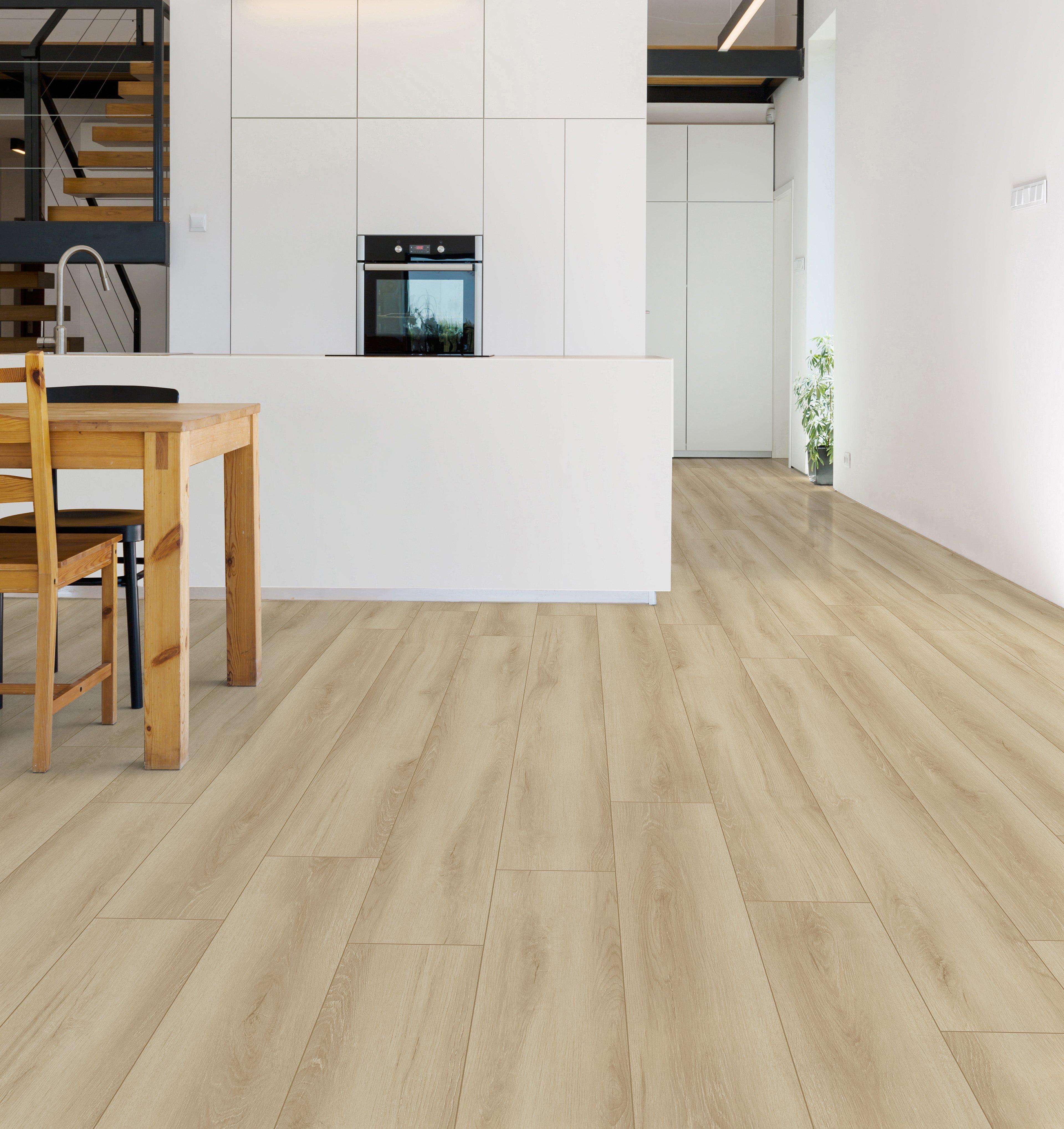 - Premium natural cork backing built-in for a quieter, warmer, softer floor without the need for additional underlayment.