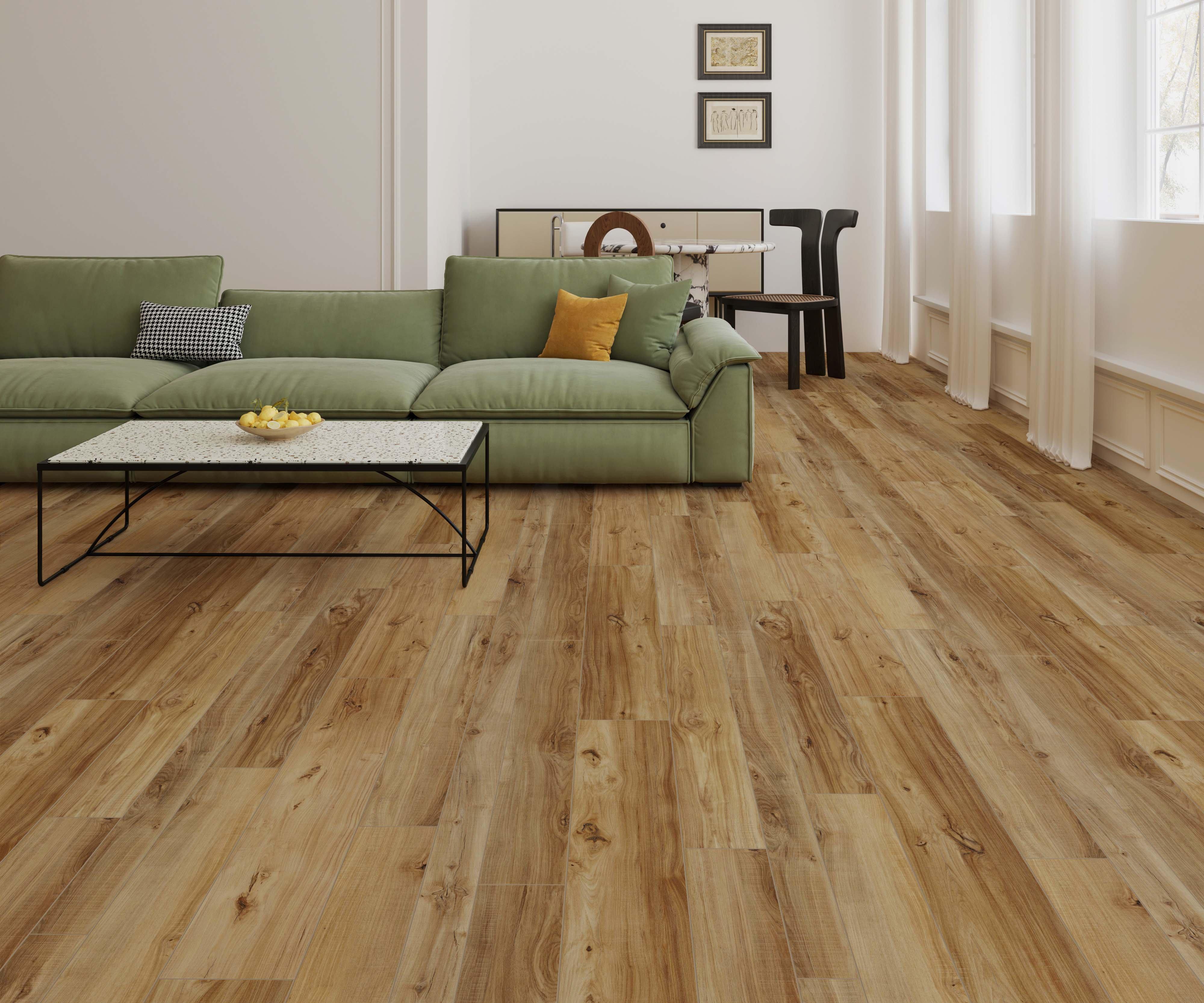- Premium natural cork backing built-in for a quieter, warmer, softer floor without the need for additional underlayment.