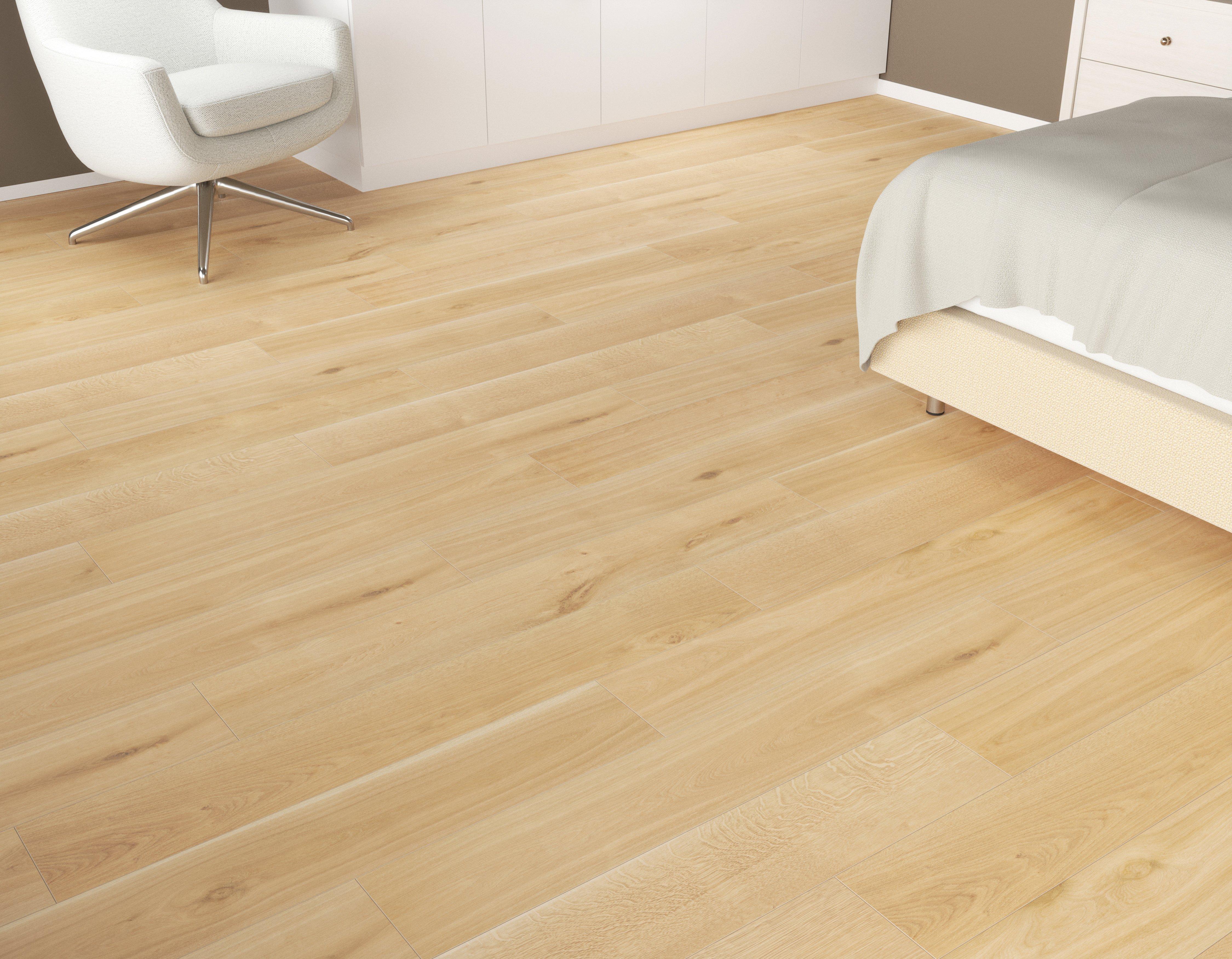 Pre-attached hypoallergenic cork pad creates a quieter, warmer floor and 6.5+ mm total flooring thickness. Sentinel Protect Plus underlayment recommended for increased performance.