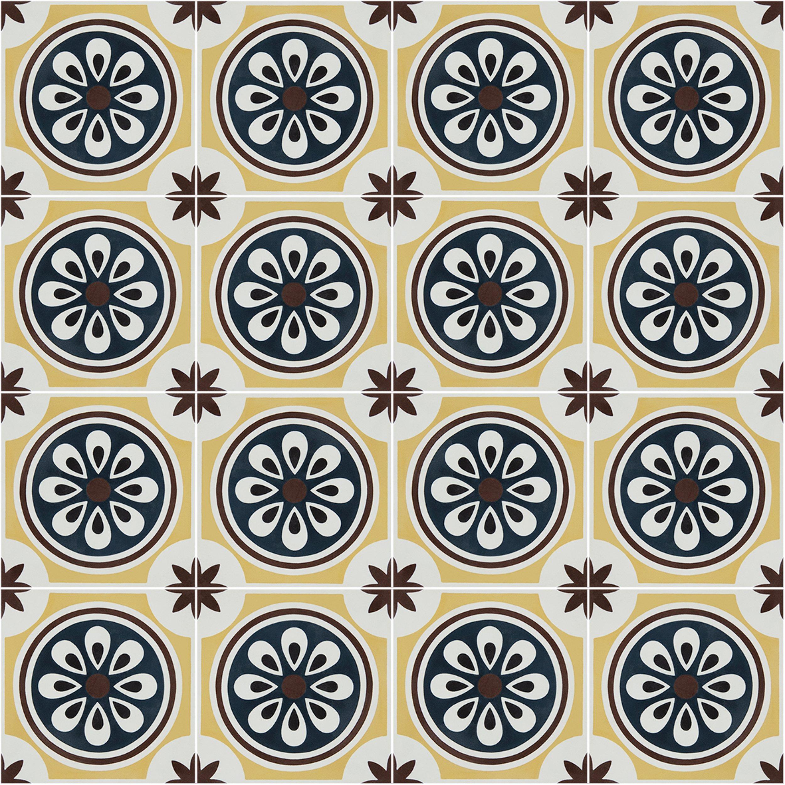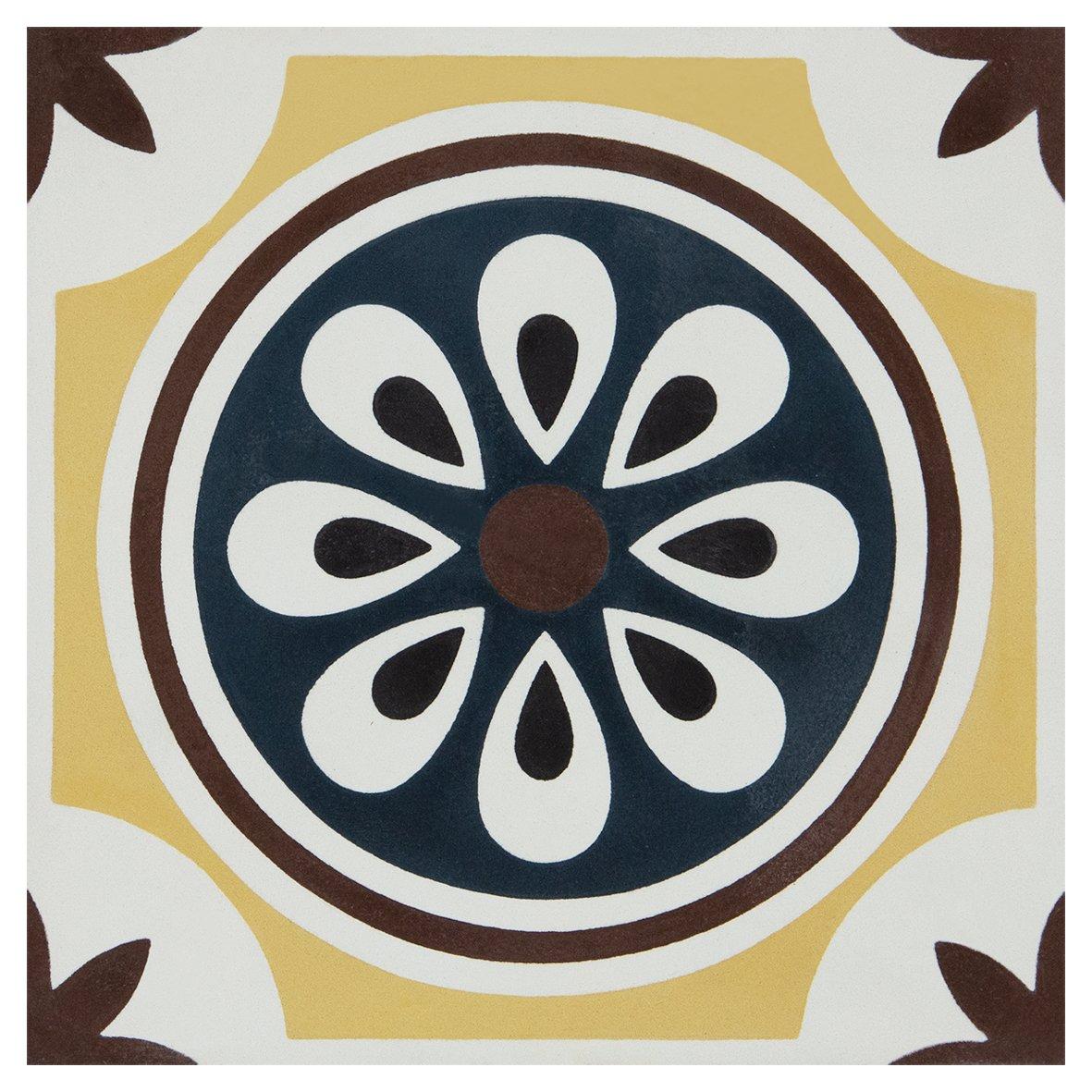Personalize your space with the Clementina Encaustic Cement Tile. This multi color matte finish tile will make a great impact in small areas like the bathroom, den, or other overlooked spaces.