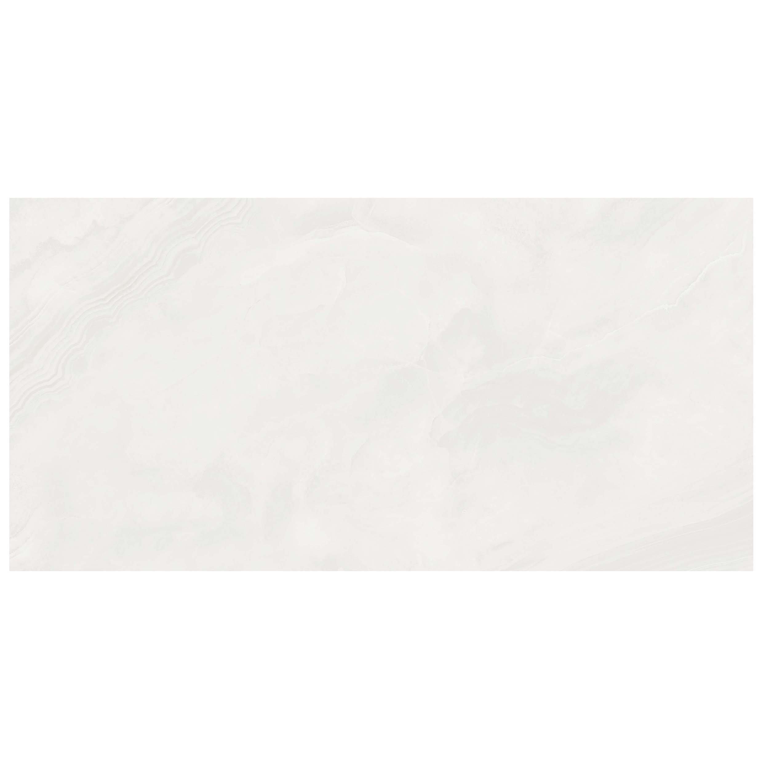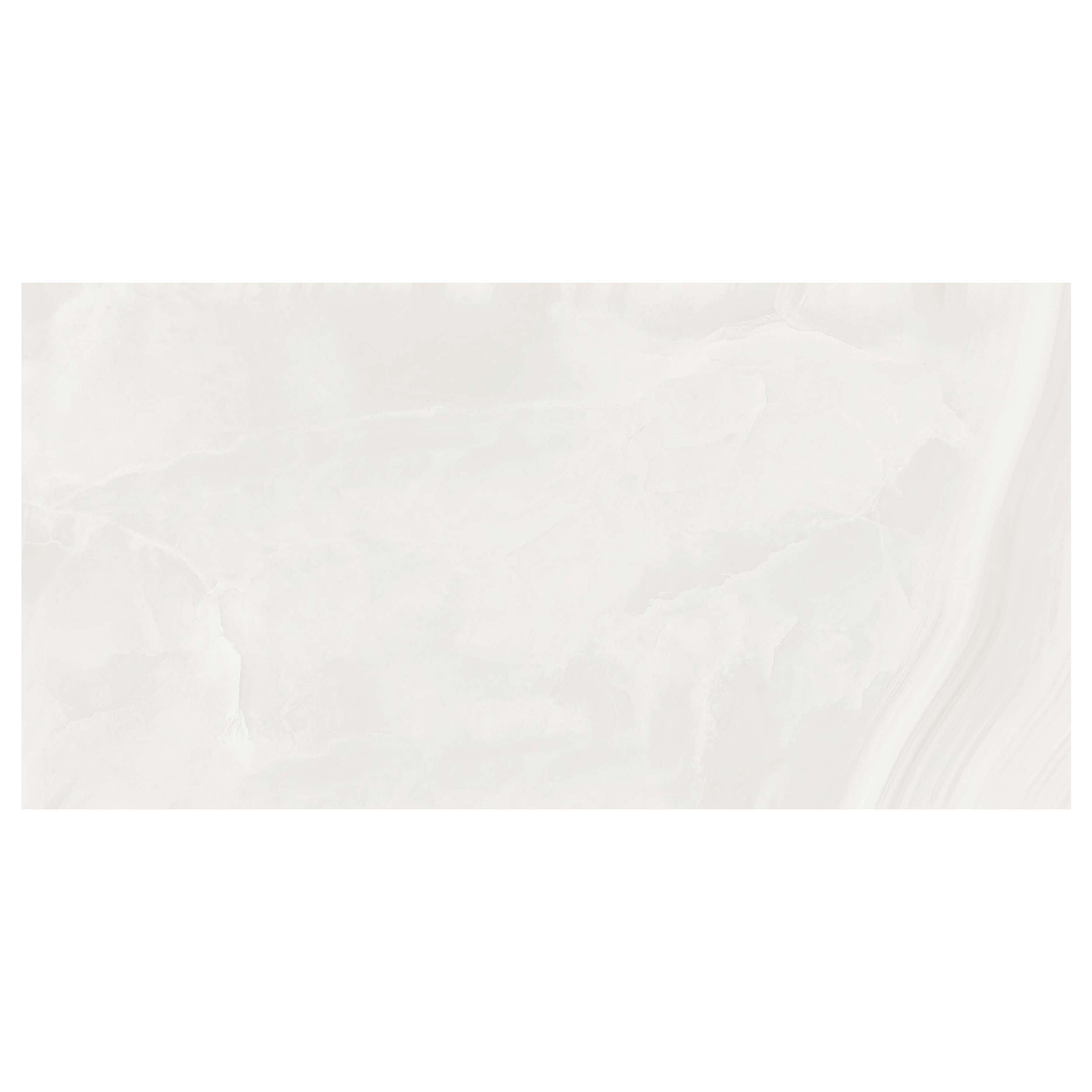 With a polished finish, this white Amalfi Sand Polished Porcelain Tile is 24 x 48.