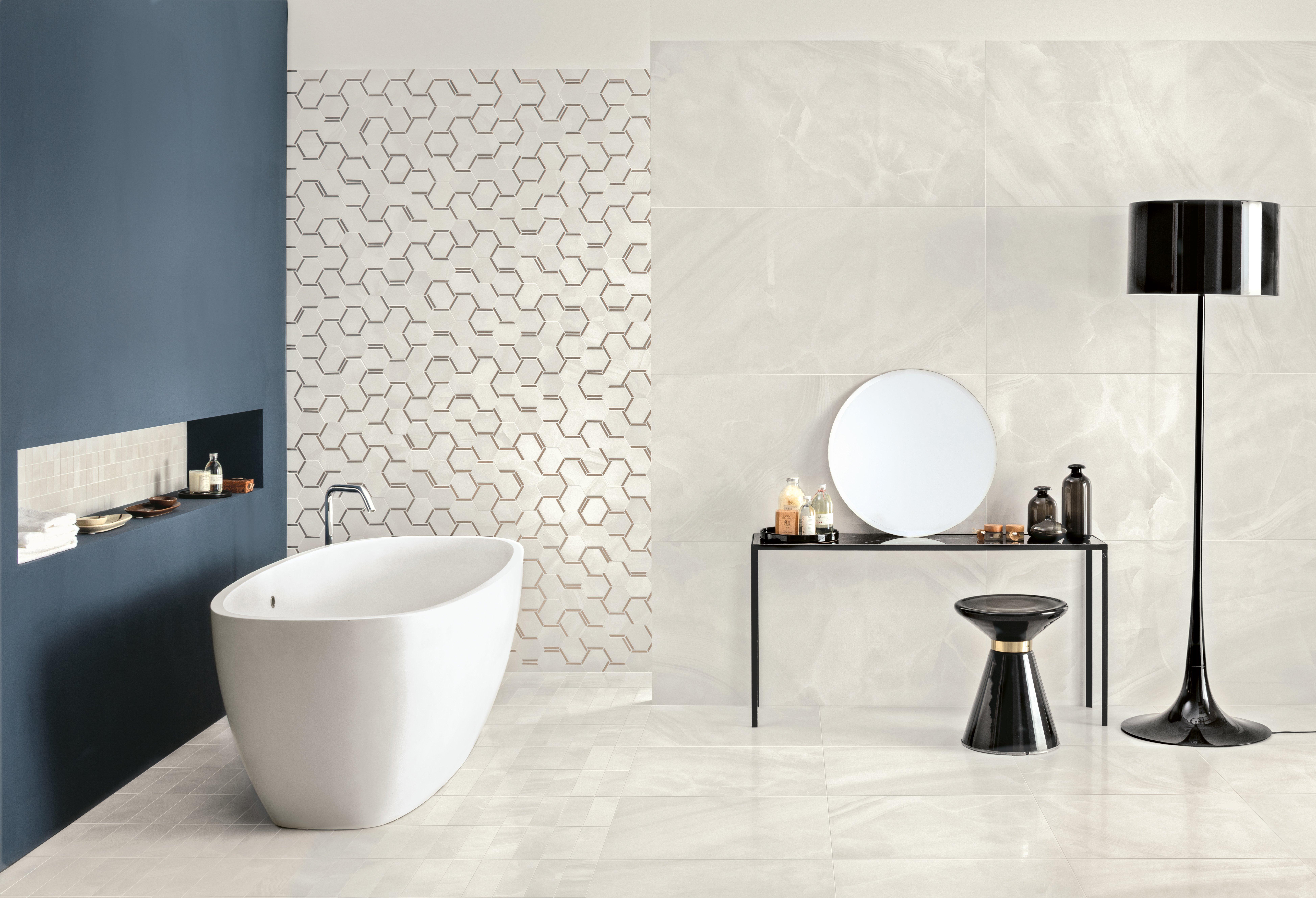 Offering modern to classic appeal, our polished porcelain and ceramic tiles flaunt a shiny, high-gloss finish.