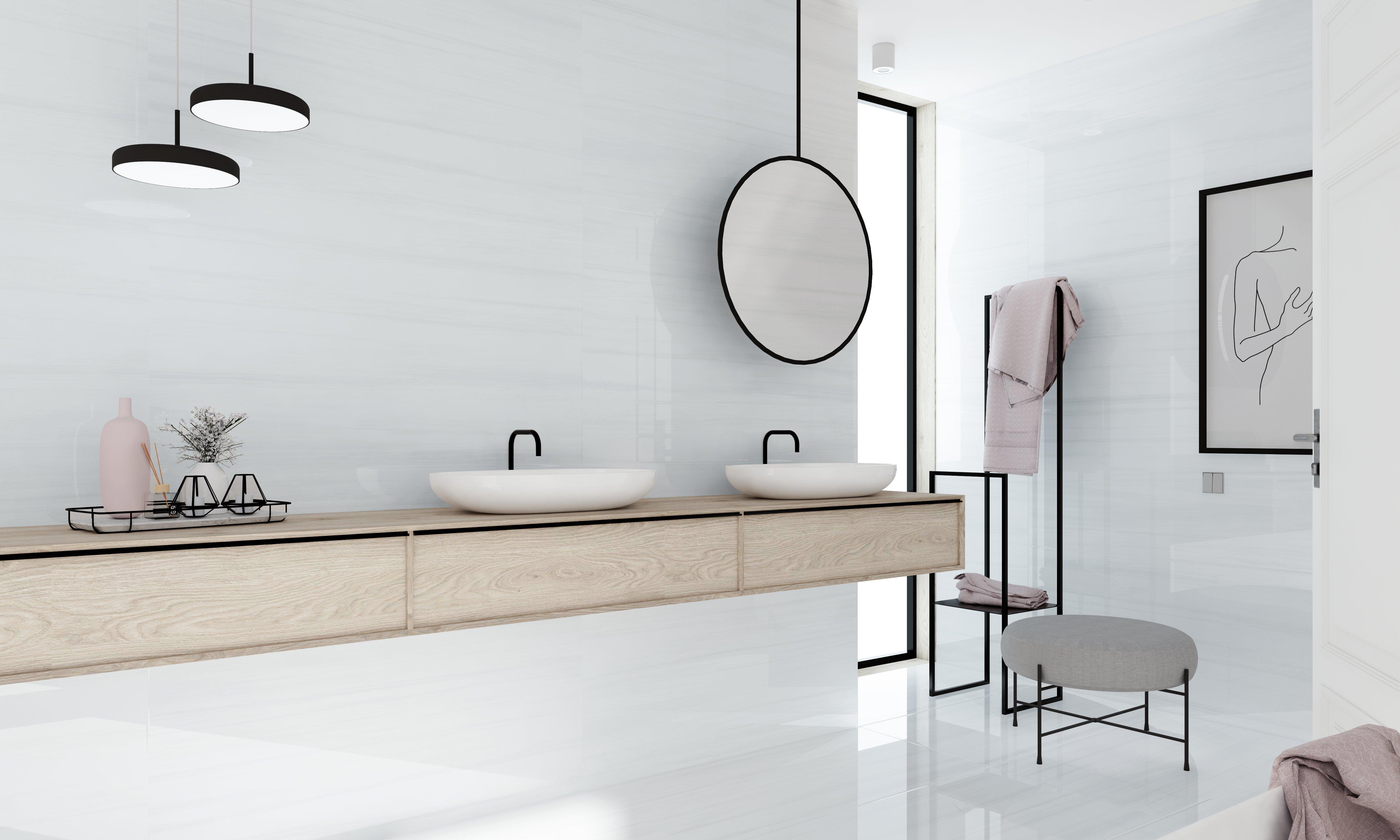 Offering modern to classic appeal, our polished porcelain and ceramic tiles flaunt a shiny, high-gloss finish.