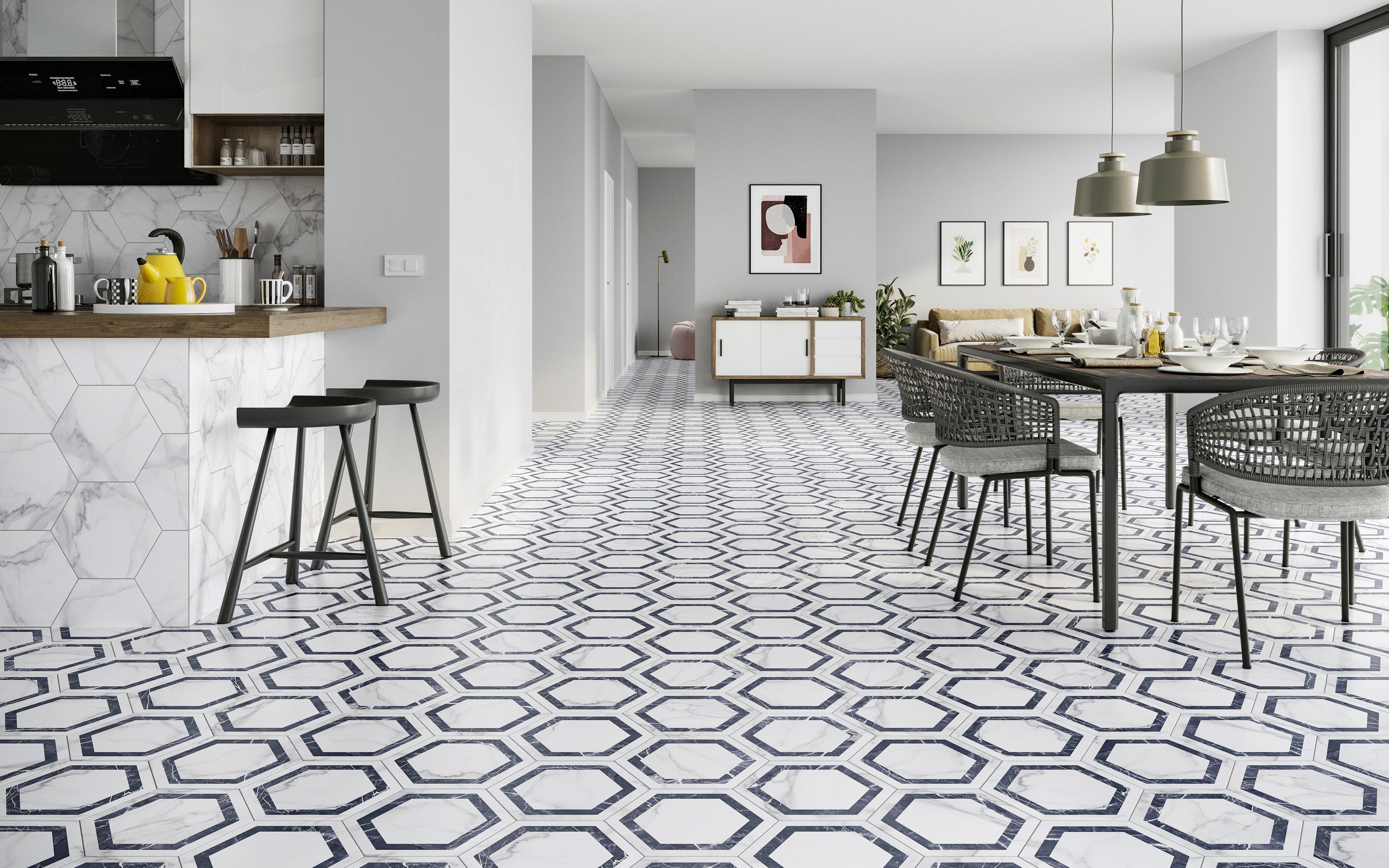 Available in white color with a hexagon & octagon shape, the Arina Bianco Matte Porcelain Mosaic delivers a classic yet contemporary look. Measuring approximately 11 x 13 inches with a 9mm thickness, this tile is perfect for creating stunning designs in any space.