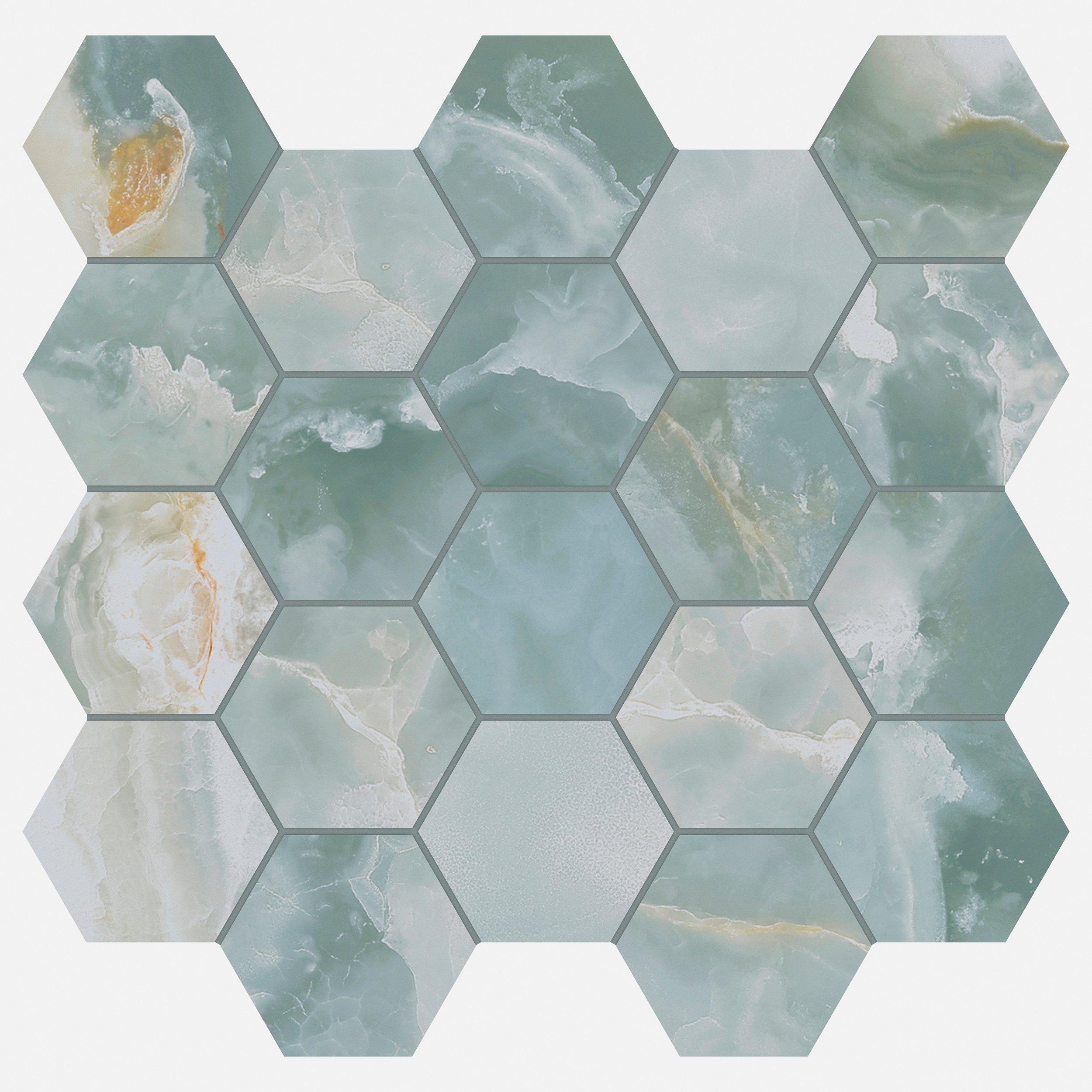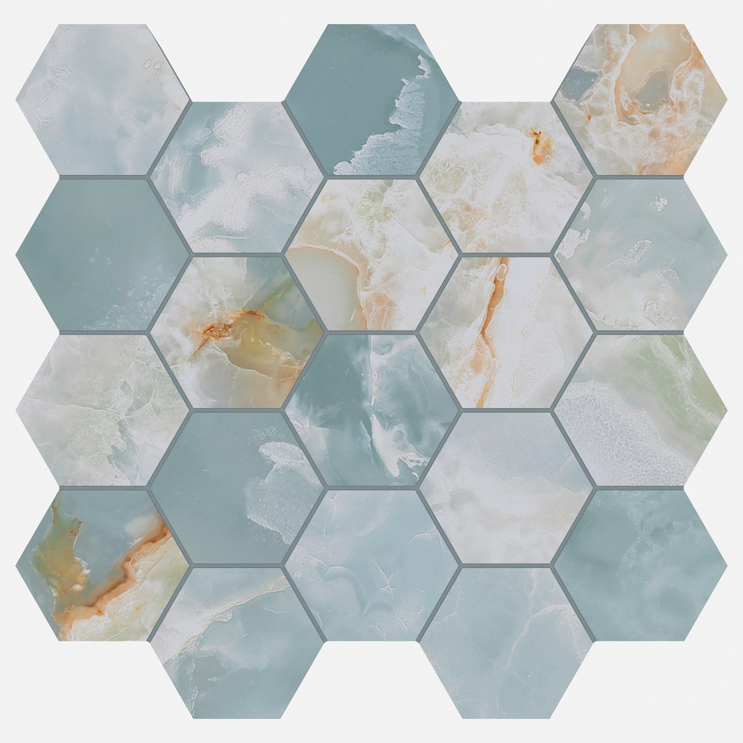 Elevate the look of your home with this gorgeous Aurelio Azul Hexagon Porcelain Mosaic. This 10.5 x 11.5 tile comes in blue and has a matte finish. This stone-look tile is durable and easy to clean, so you can put it in areas that have heavy foot traffic. Plus, this stone-look tile is resistant to fading and staining.