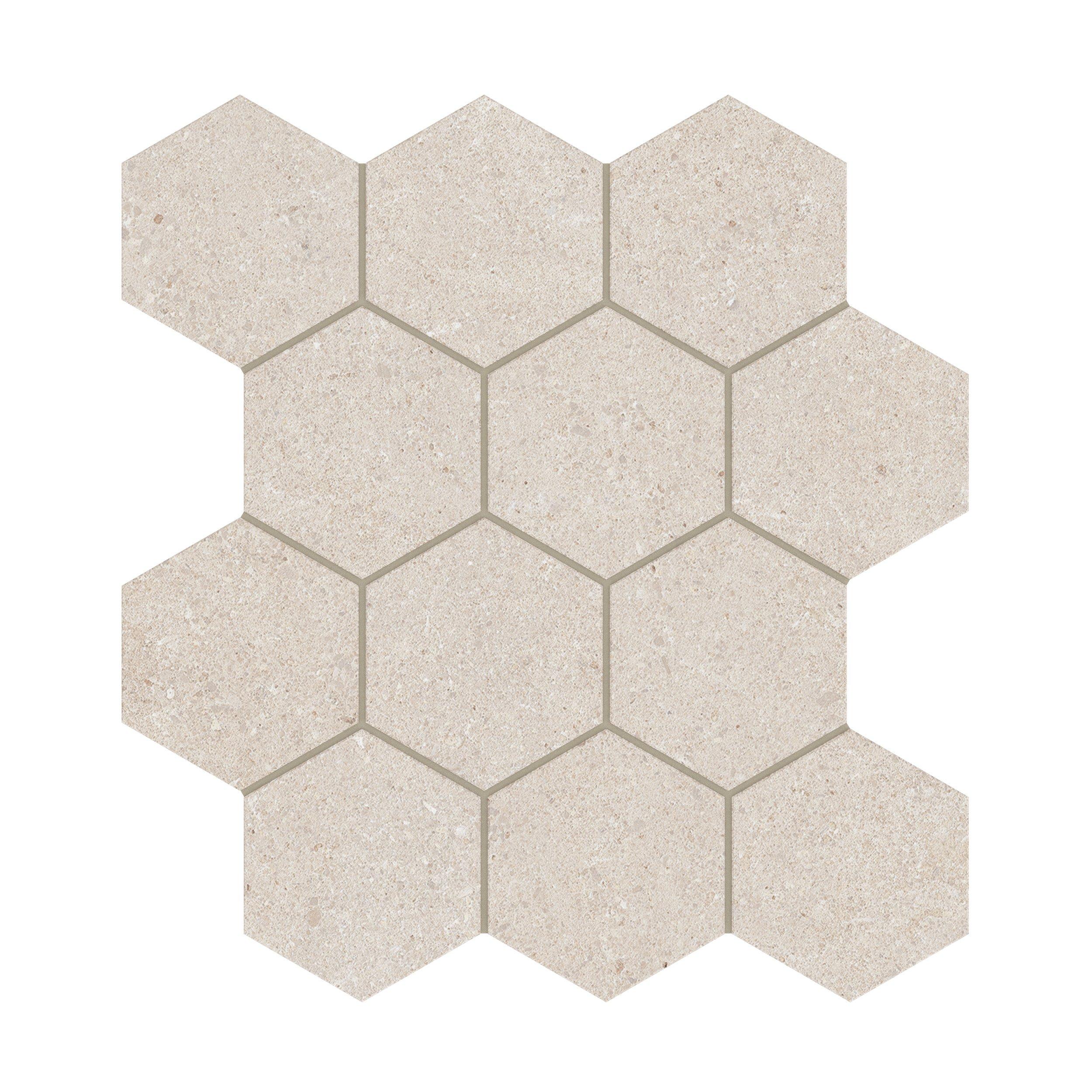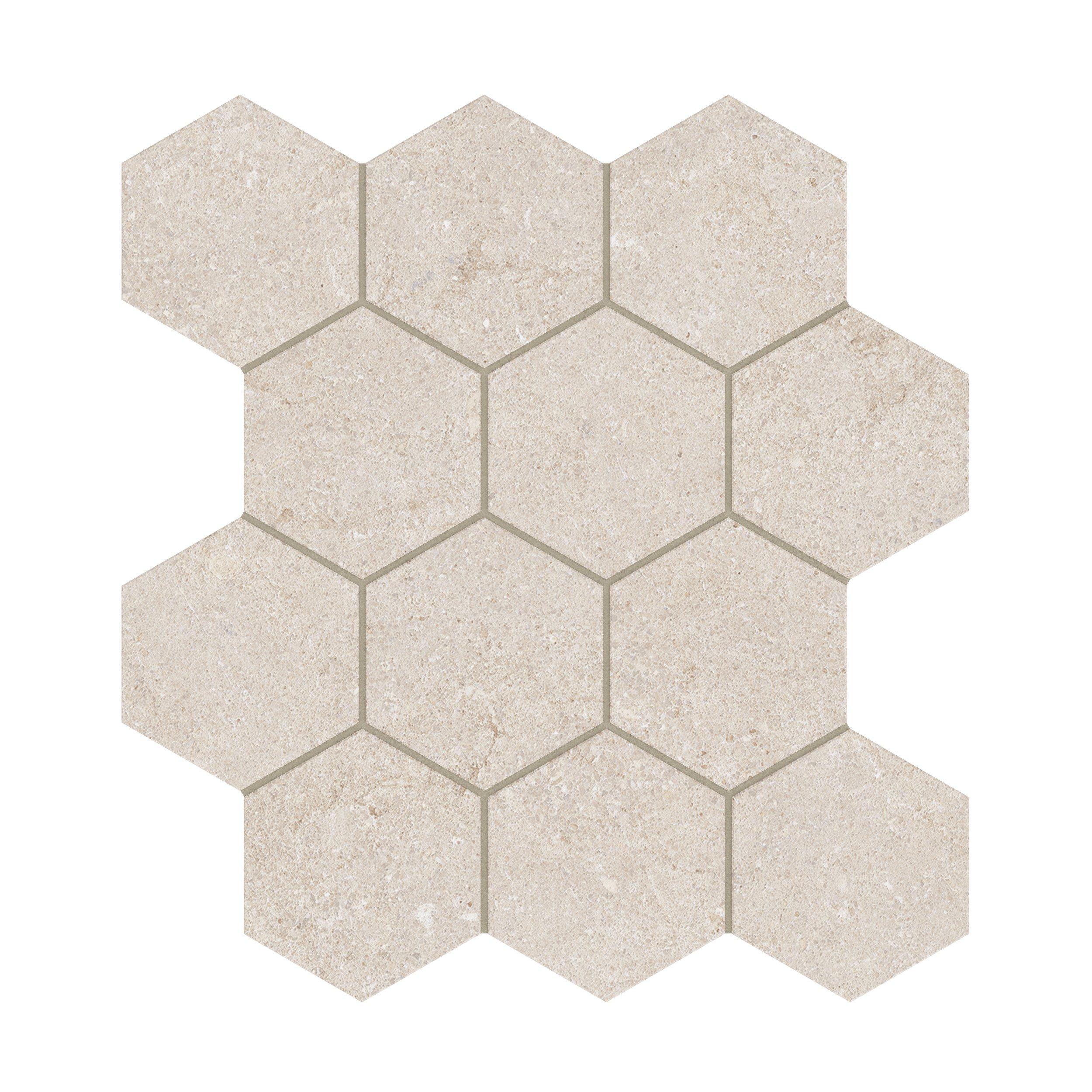 With its beige color and limestone look, the Capri Almond Hexagon Matte Porcelain Mosaic adds a natural touch to any space. The hexagon shape and matte surface texture provide a modern yet timeless appeal. Available in a 12 x 12 nominal size, this mosaic tile is perfect for creating eye-catching designs in your home or commercial project.