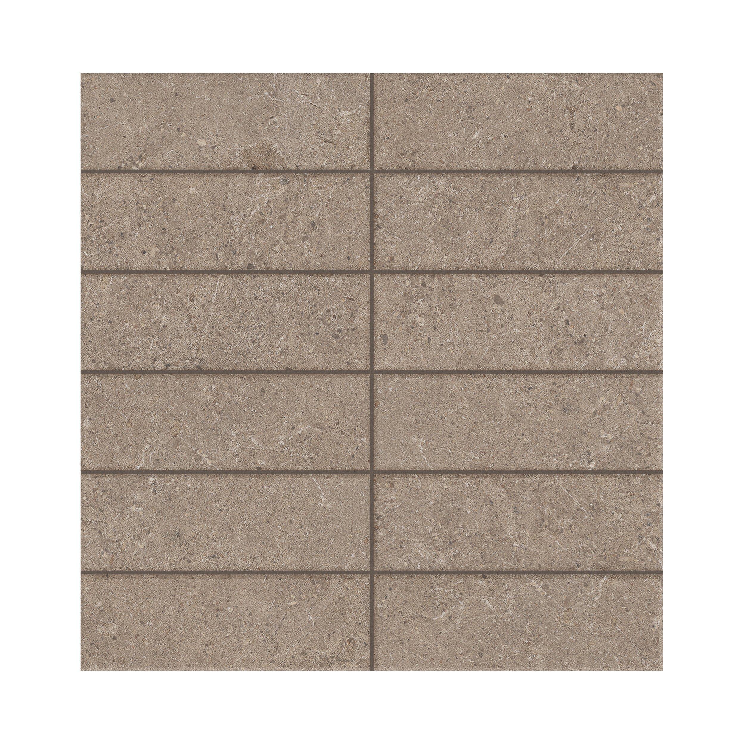 Capri Chai Stack Matte Porcelain Mosaic by Vetta Elements is the perfect blend of elegance and durability for your home or commercial space. Ideal for both indoor and outdoor applications, this mosaic tile offers a stunning limestone look in a versatile brown hue.
