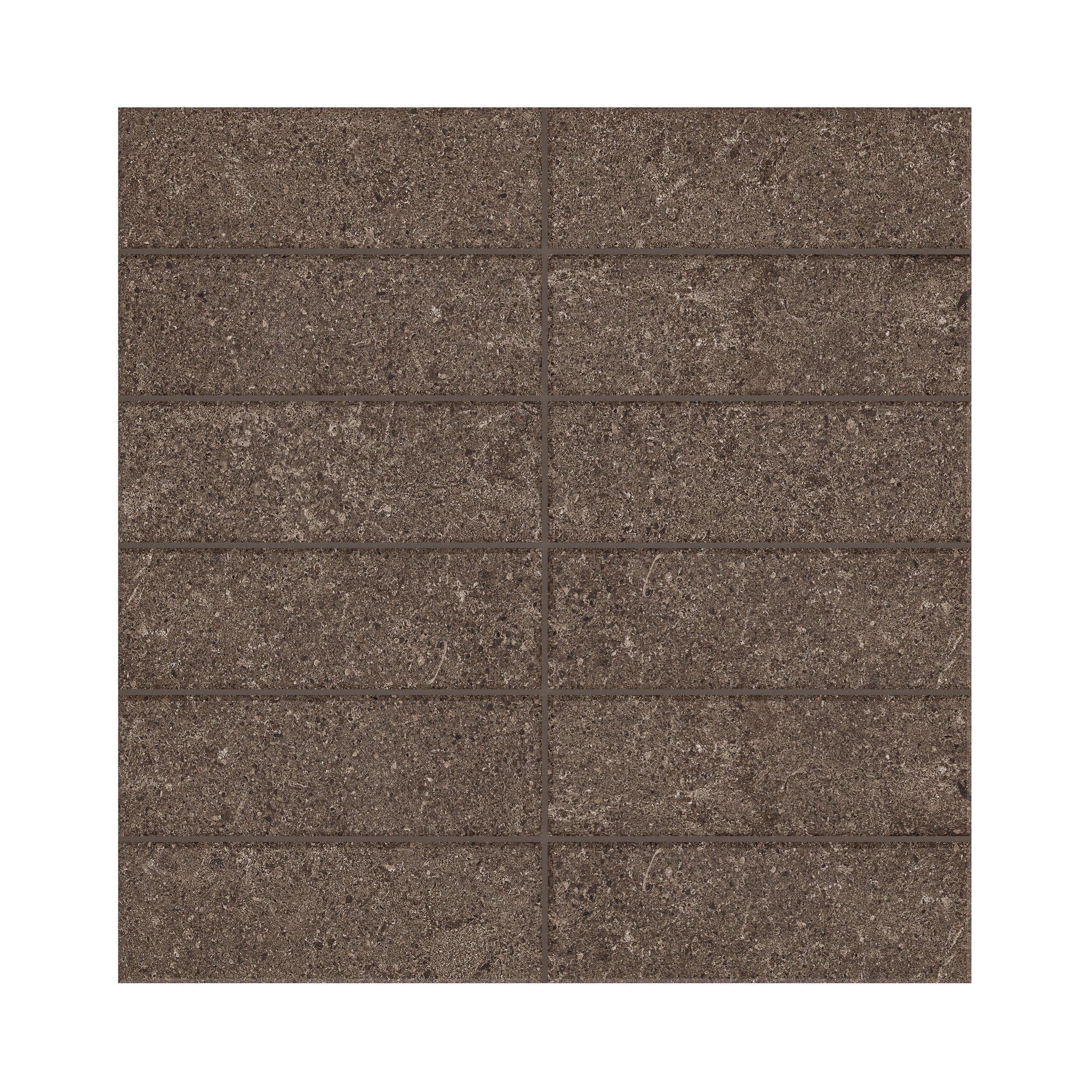 Transform your space with the elegant brown color and rectangular shape of Capri Clove Stack Matte Porcelain Mosaic. Measuring 12 x 12 inches with an approximate thickness of 8 mm, this mosaic tile offers a timeless limestone look that complements any decor style.
