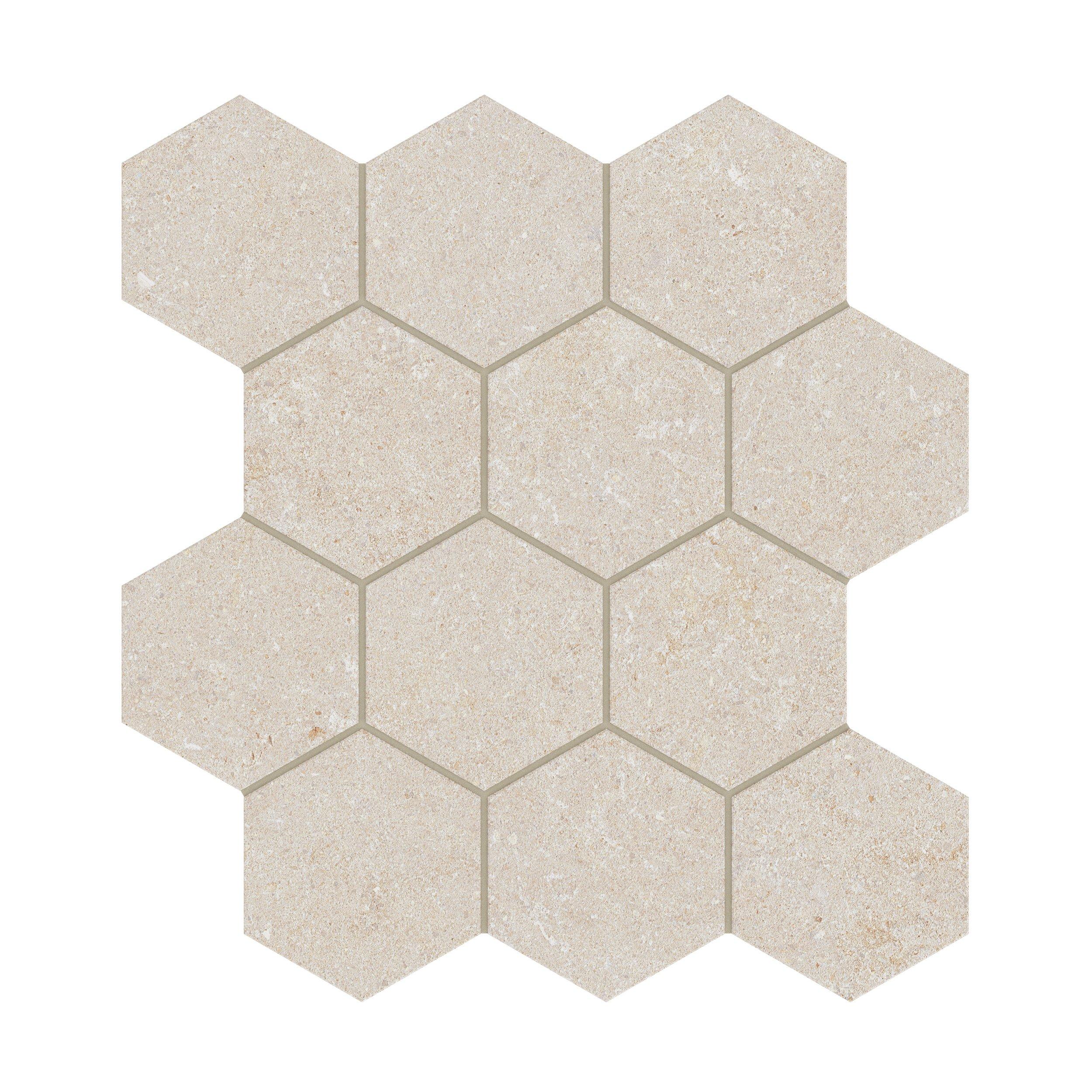 Capri Oat Hexagon Matte Porcelain Mosaic features a beige color with a limestone look, adding elegance to any setting. Its hexagon and octagon shape create a unique visual appeal, while the 12 x 12 nominal size makes it suitable for various applications. This mosaic tile is an excellent choice for those seeking style and functionality.