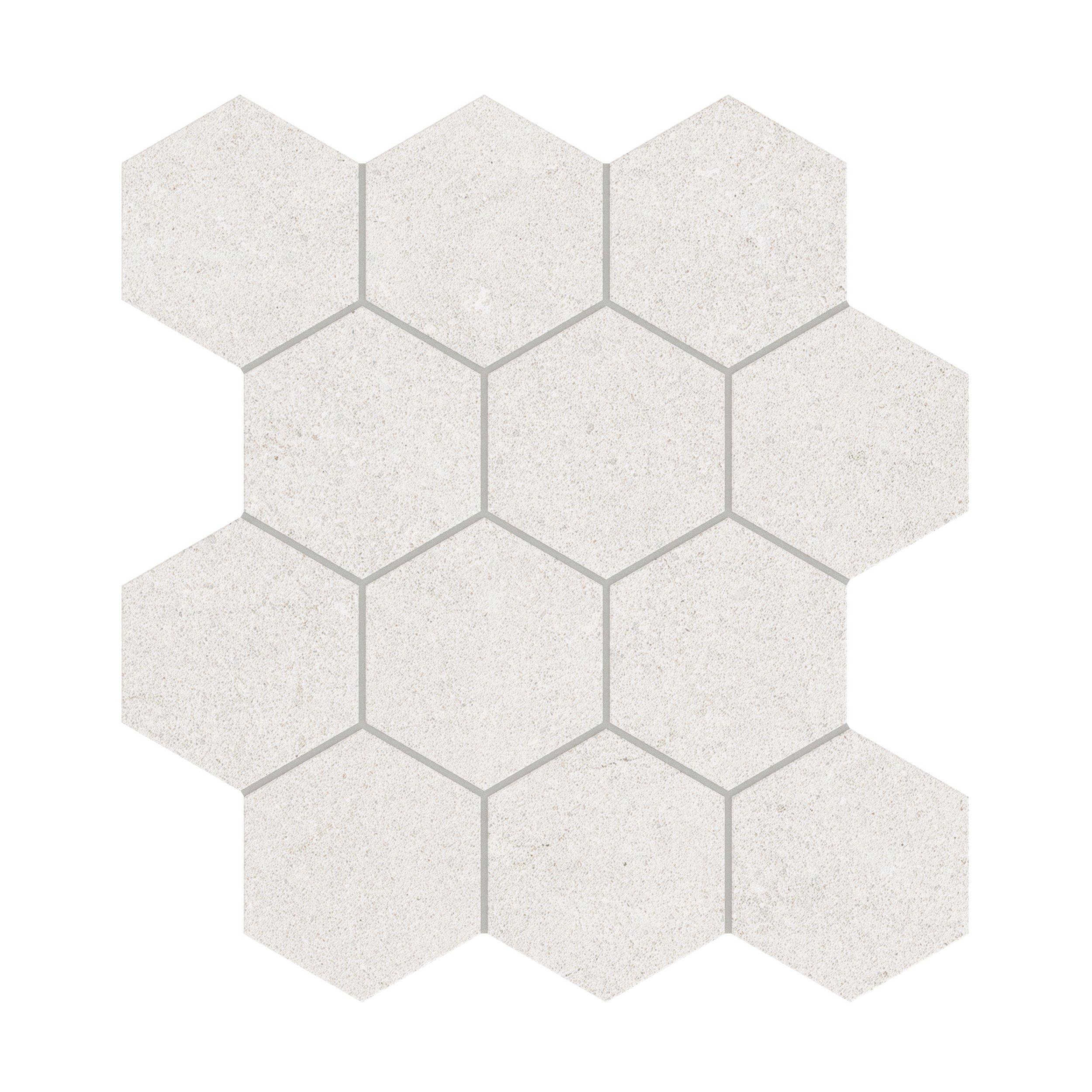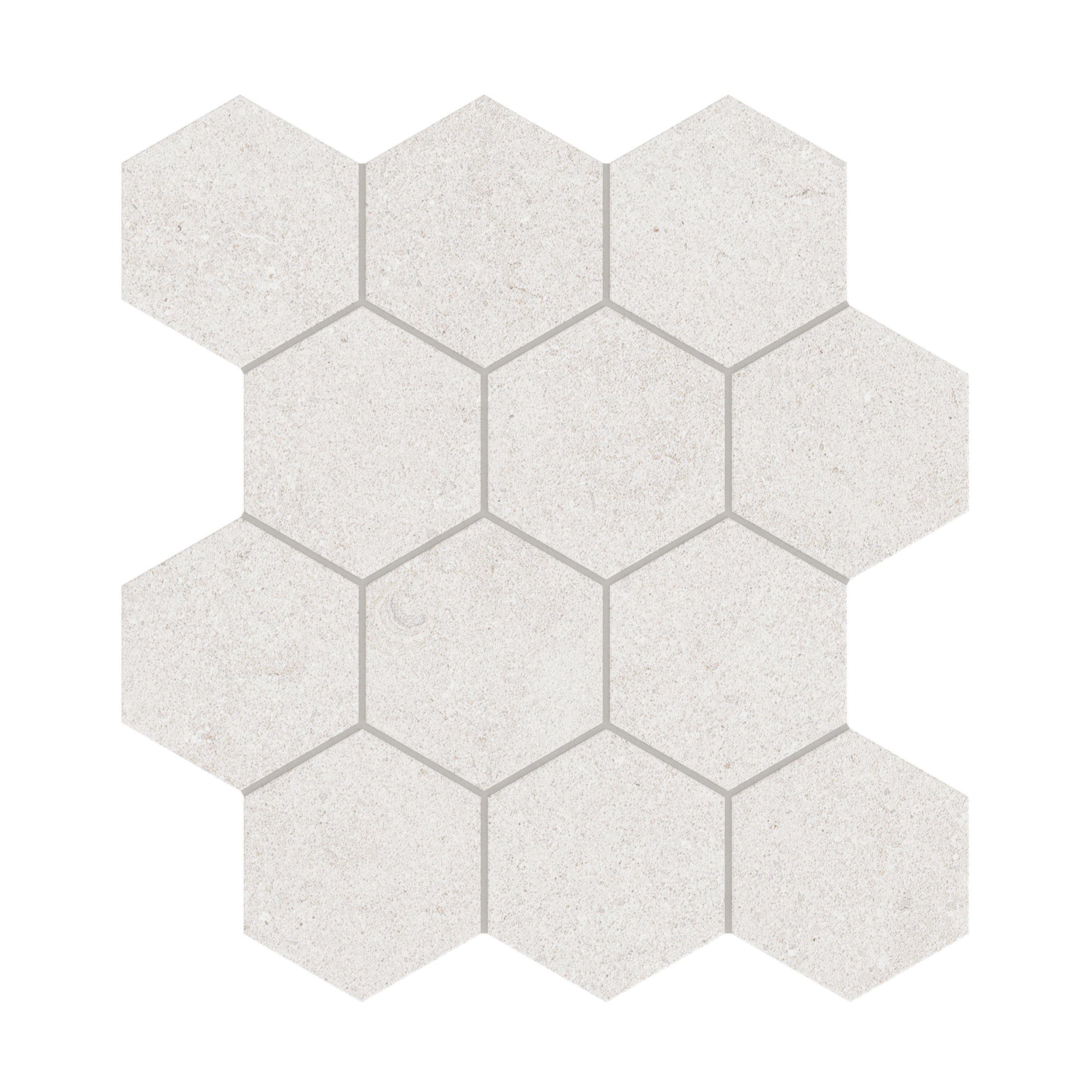 Enhance your home or commercial space with the timeless beauty of Capri Oyster Hexagon Matte Porcelain Mosaic. Available in a classic white color with a limestone look, this 12 x 12 tile offers both style and practicality for any project.