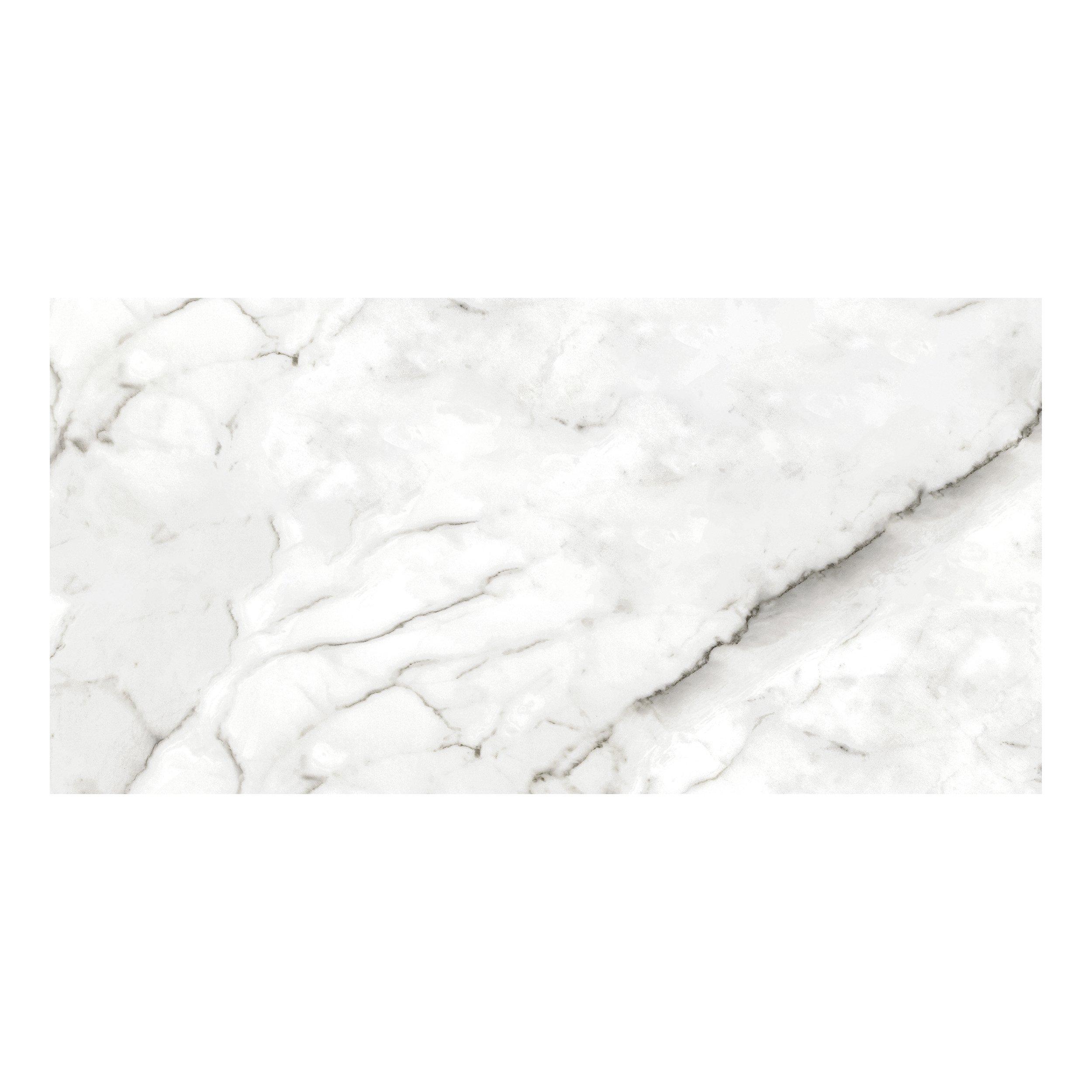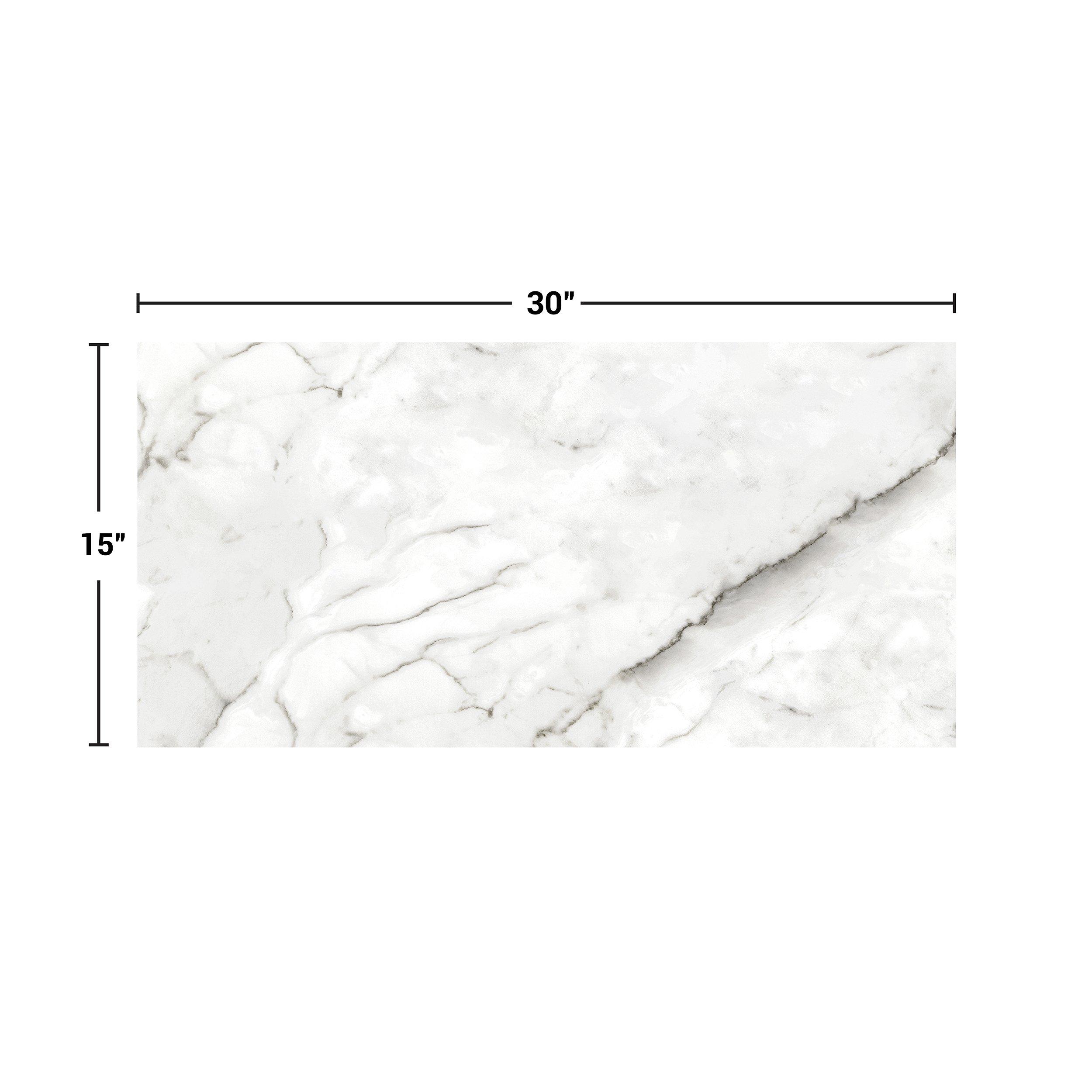 With a polished or high gloss finish, this white Carlini Bianca Polished Porcelain Tile is 15 x 30.