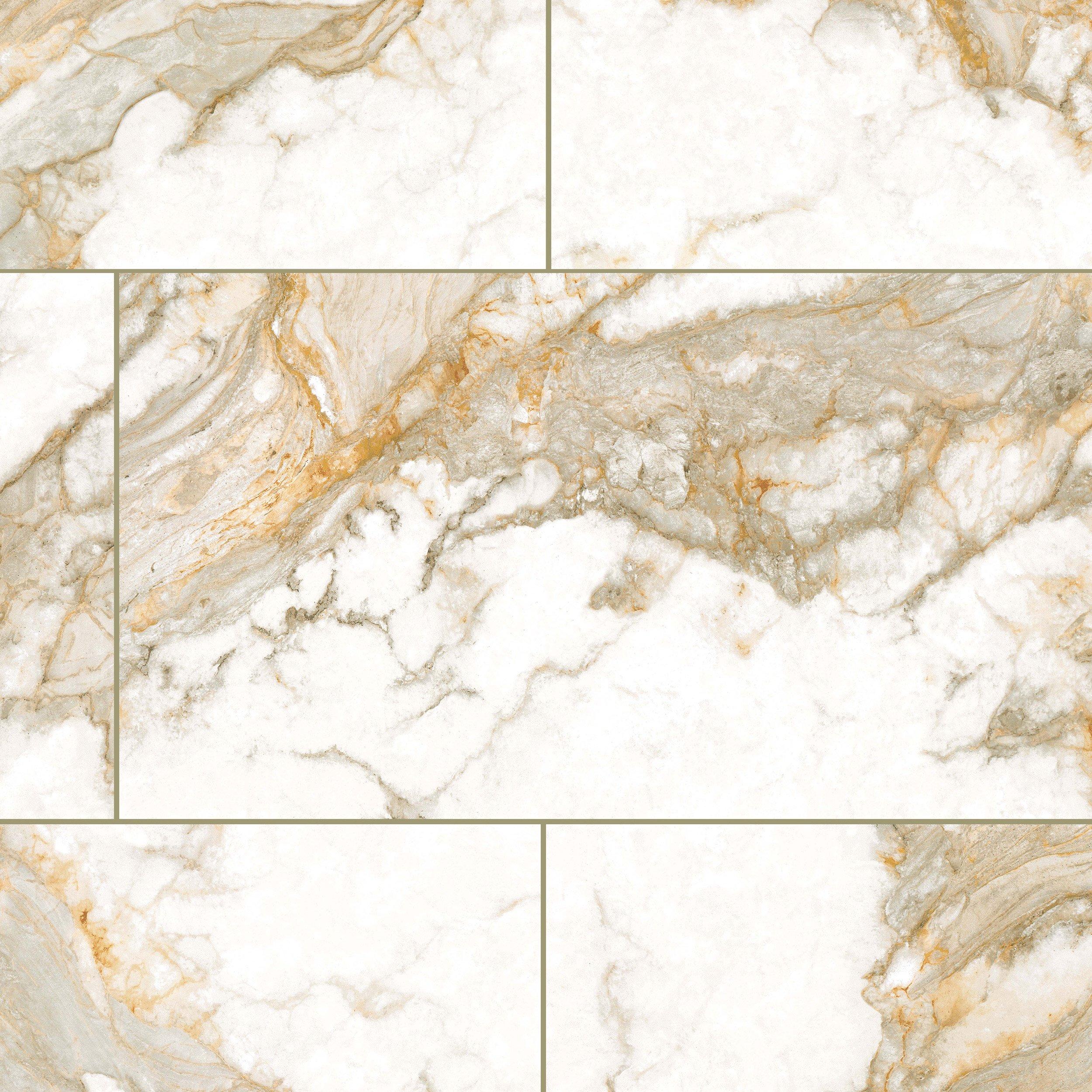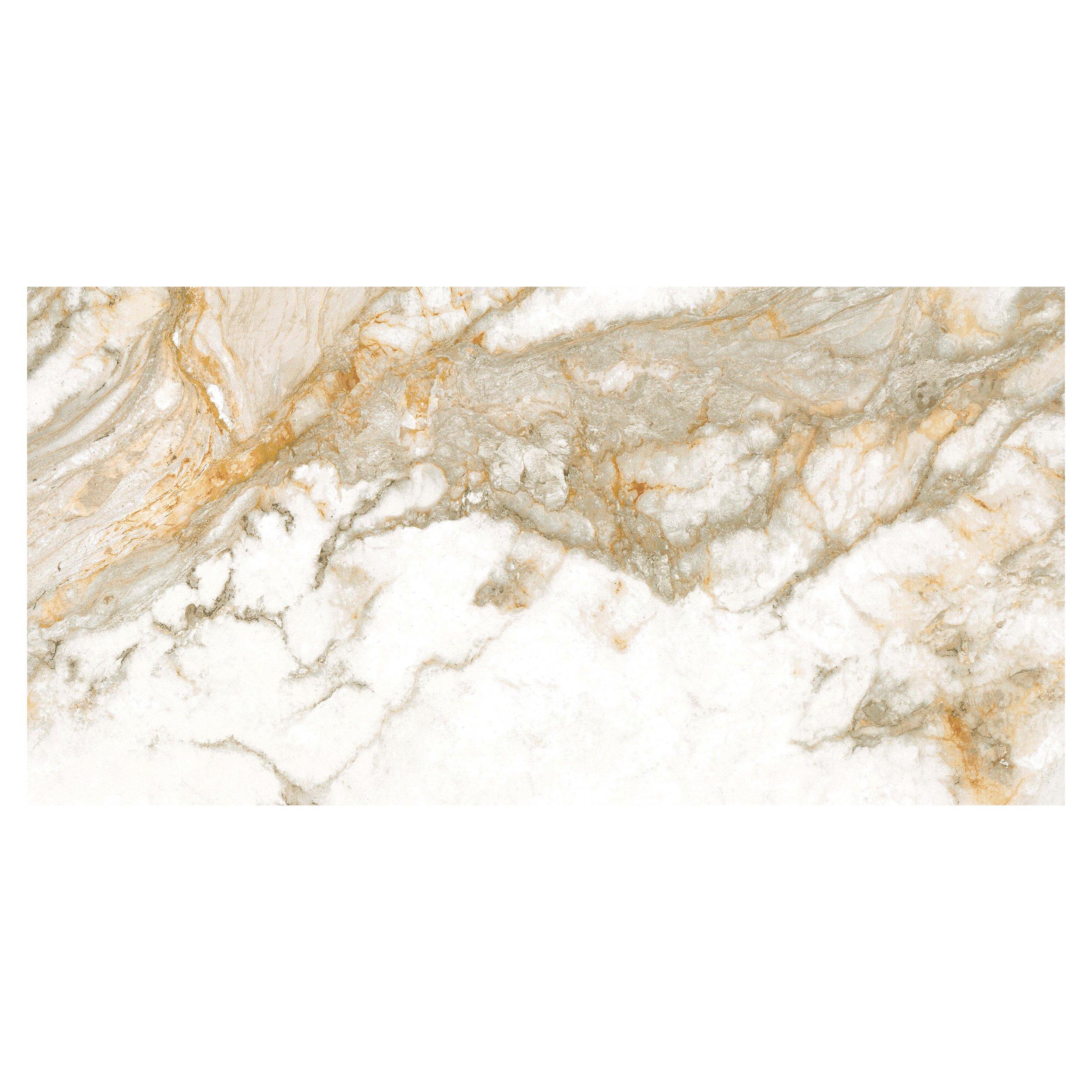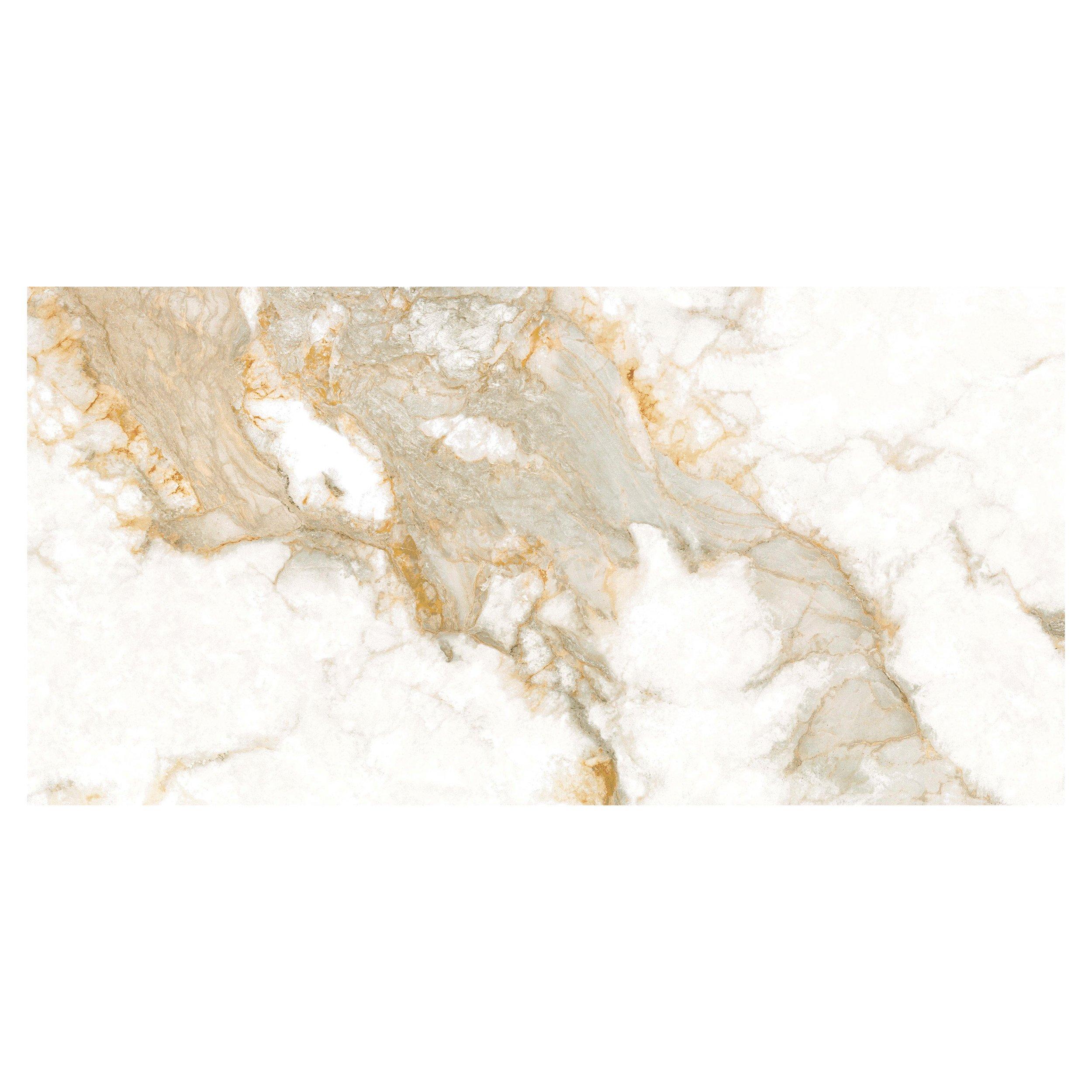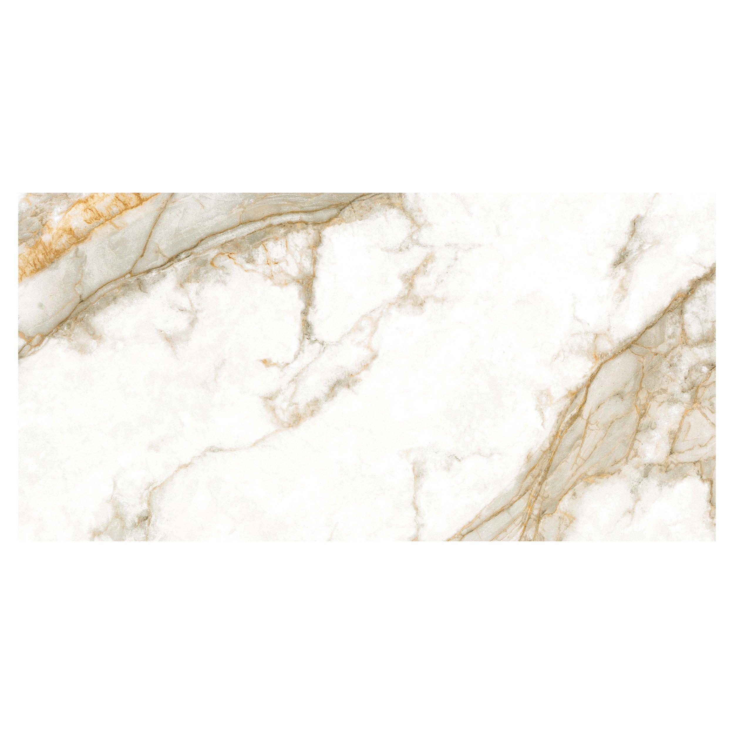 Transform your space with the Cenza Italia Polished Porcelain Tile in white. Its rectangular shape and marble look offer a sophisticated aesthetic that complements any decor style. Measuring 24 x 48 inches with an approximate thickness of 9 mm, this tile is the ultimate choice for creating luxurious interiors.