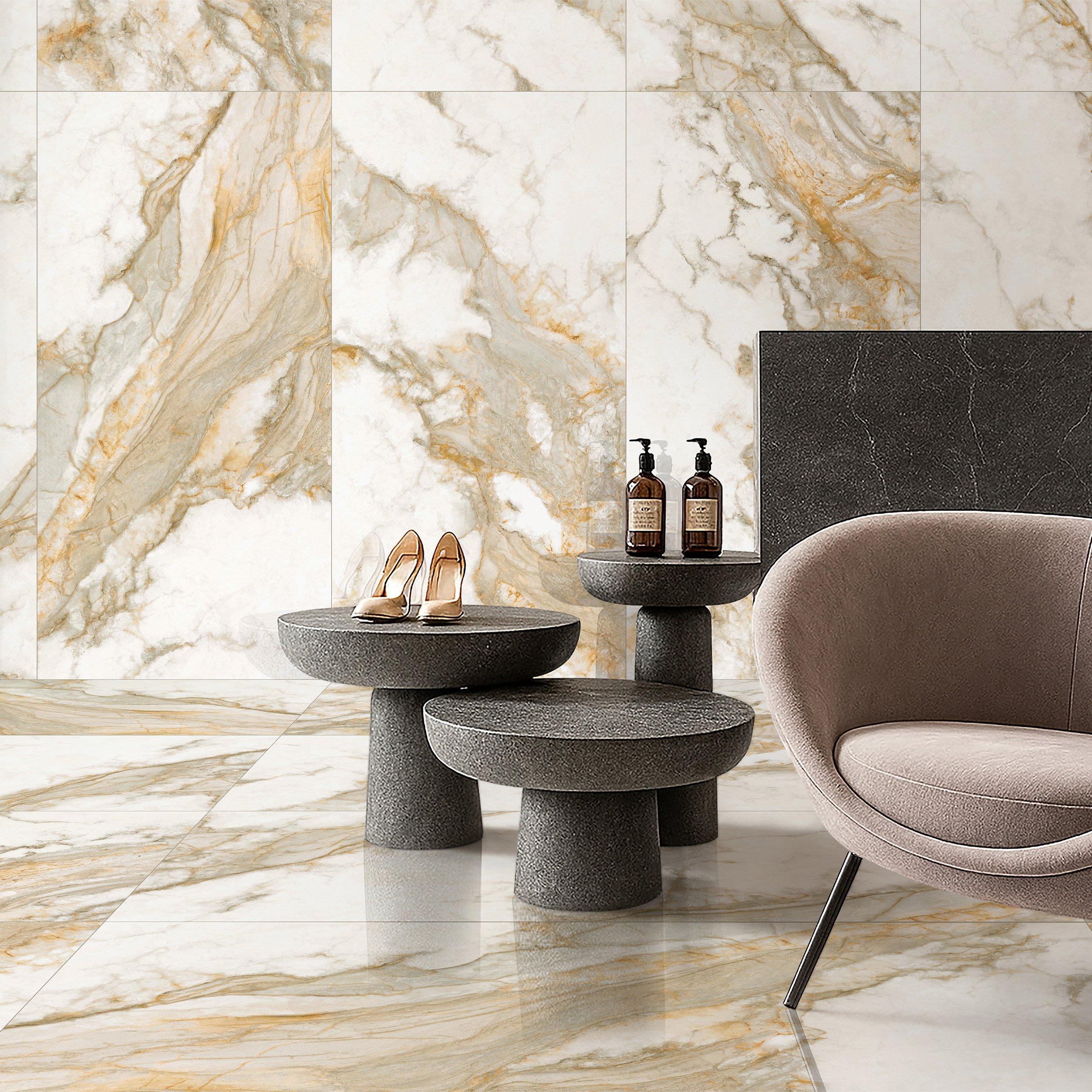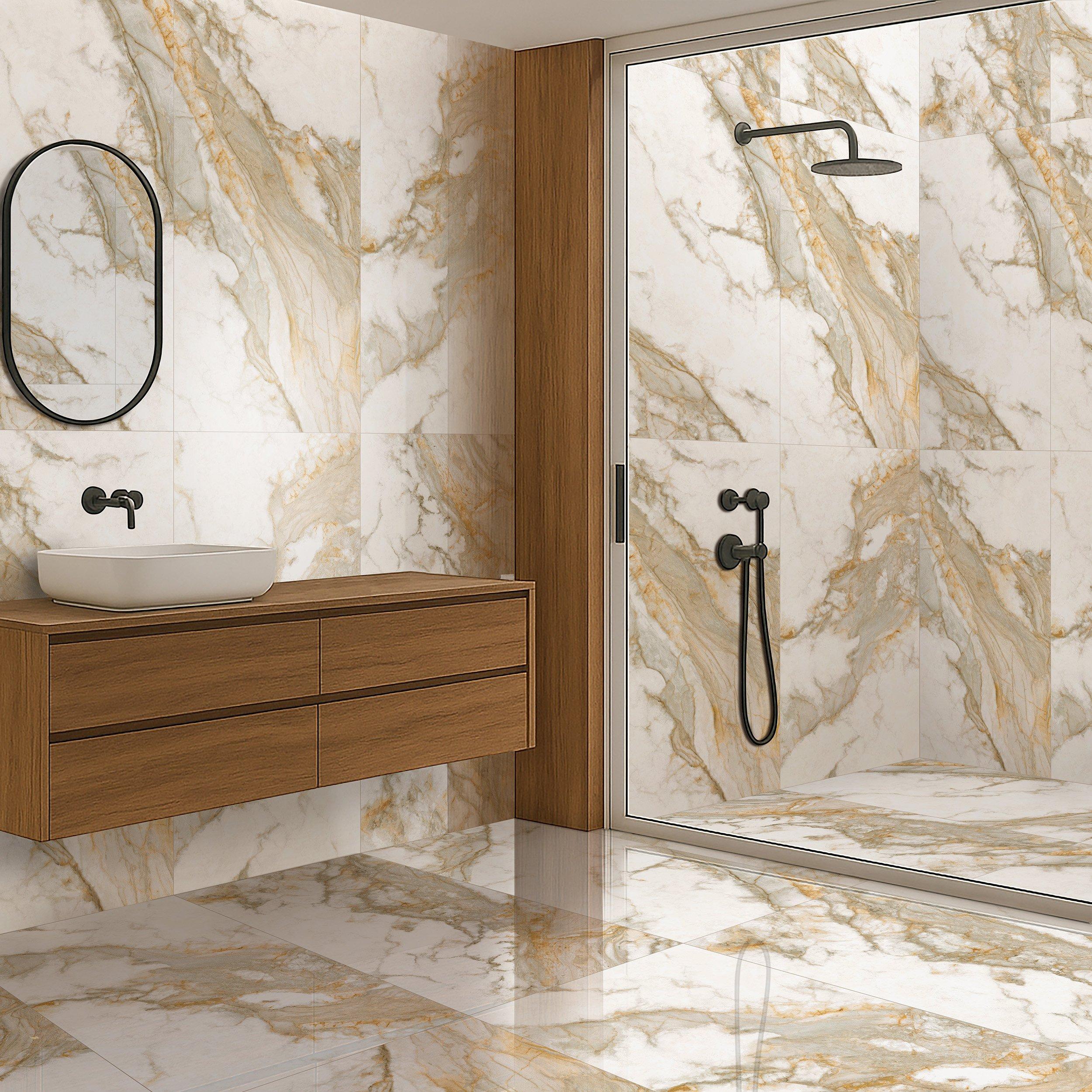 Cenza Italia Polished Porcelain Tile by San Giorgio offers a stunning marble look that adds elegance to any space. Suitable for both residential and light commercial use, this tile is perfect for achieving a high-end finish in your bathroom or kitchen.