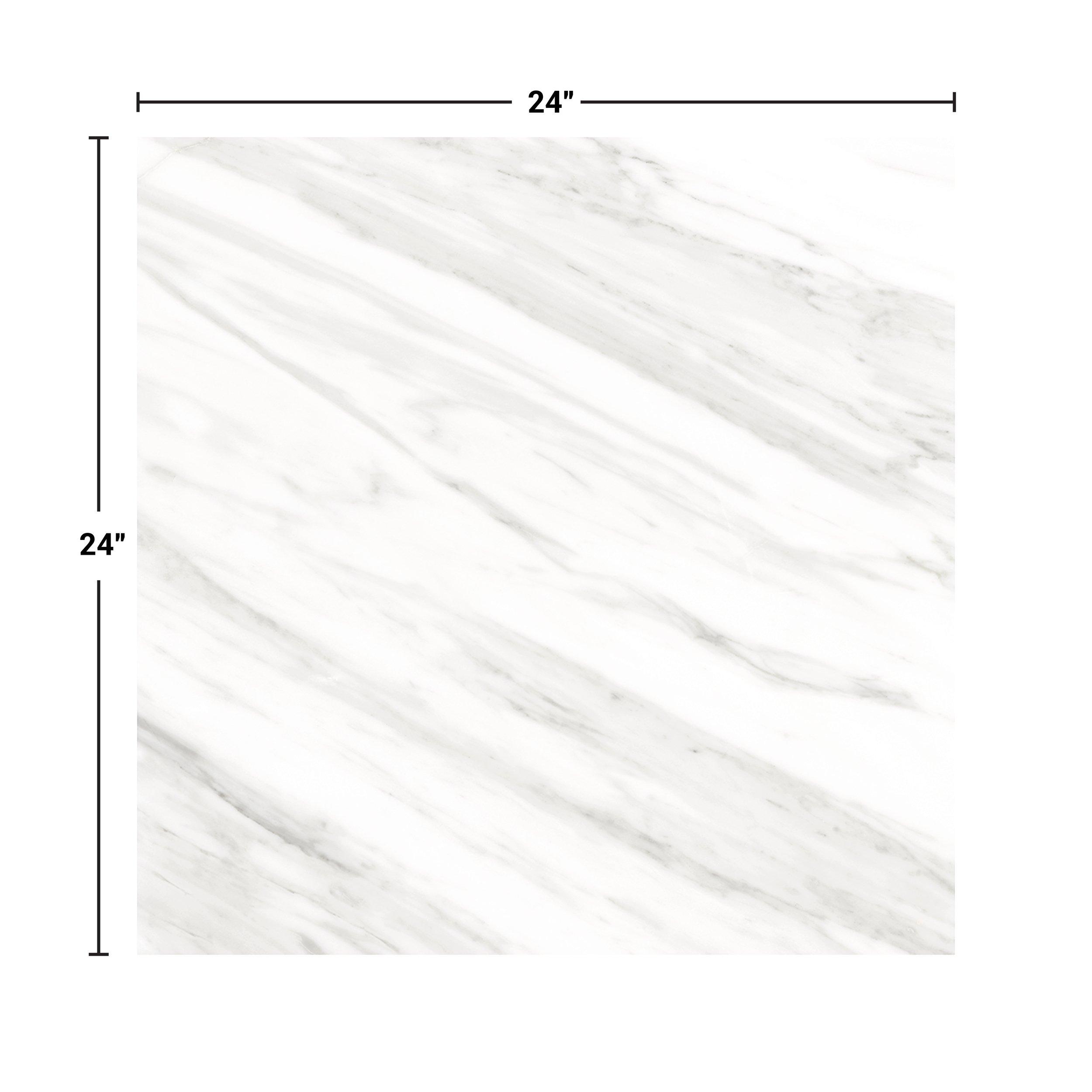 With a polished or high gloss finish, this white Cesari Bianca II Polished Porcelain Tile is 24 x 24.