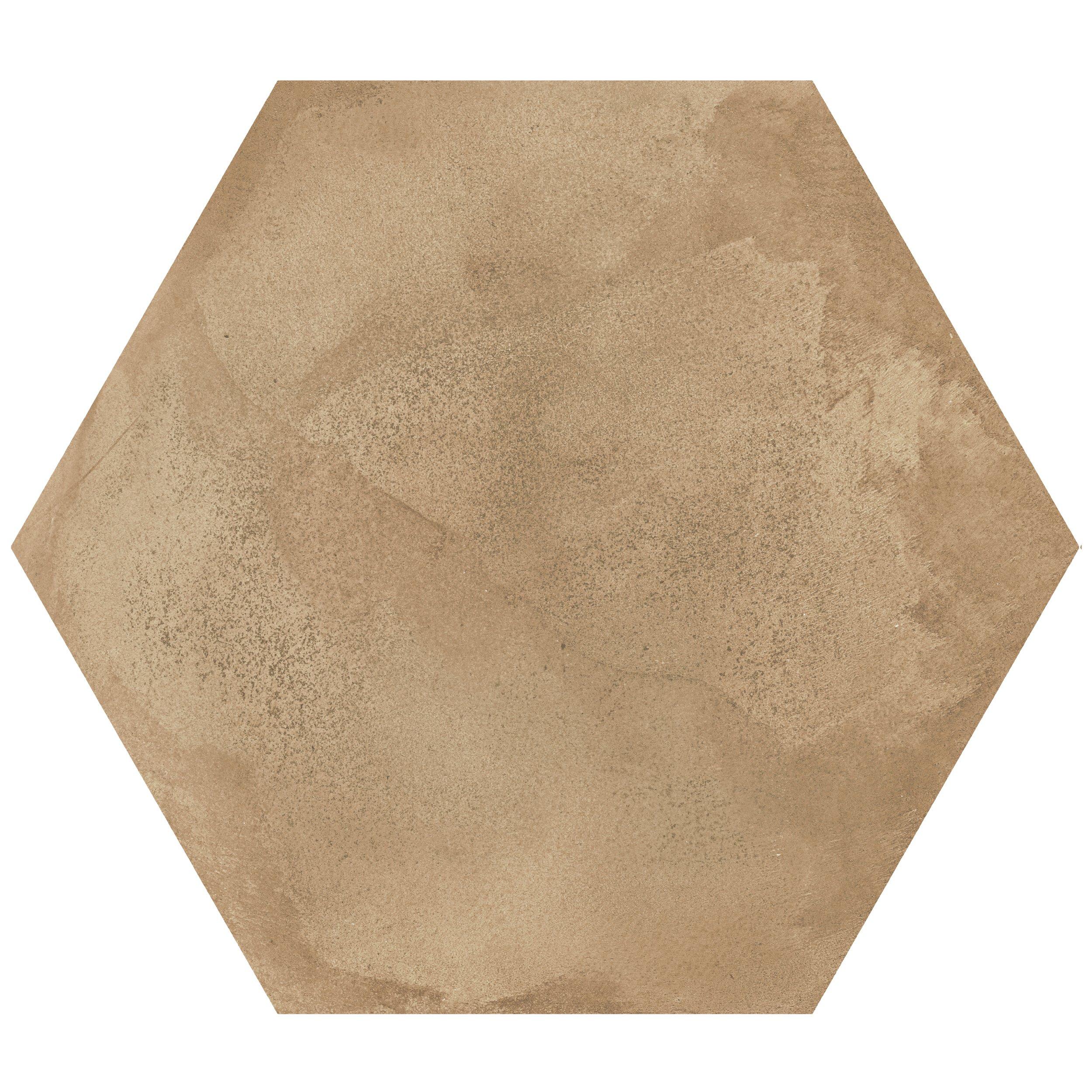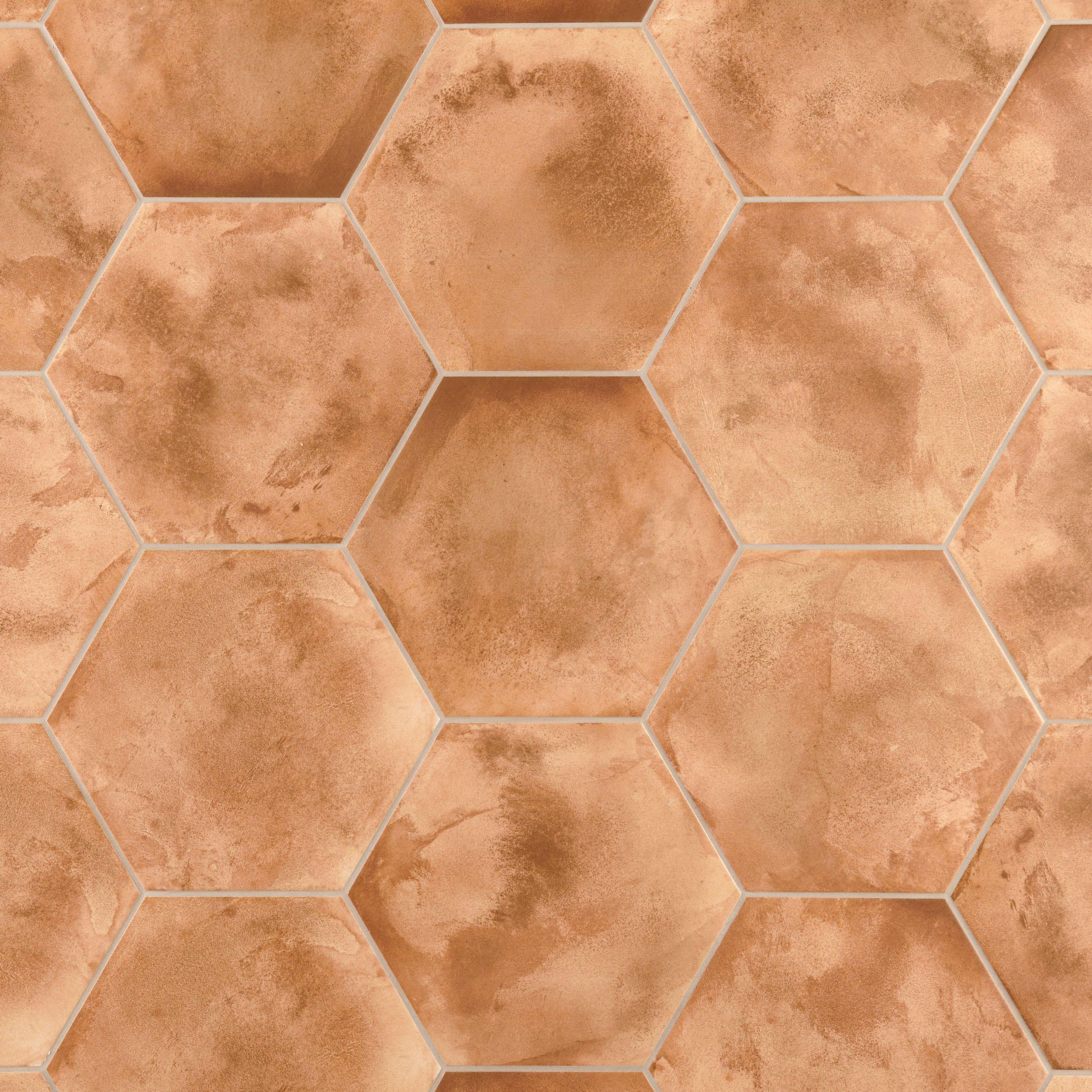 With a matte finish, this brown Costa Mesa Hexagon Porcelain Tile is 11 x 13.