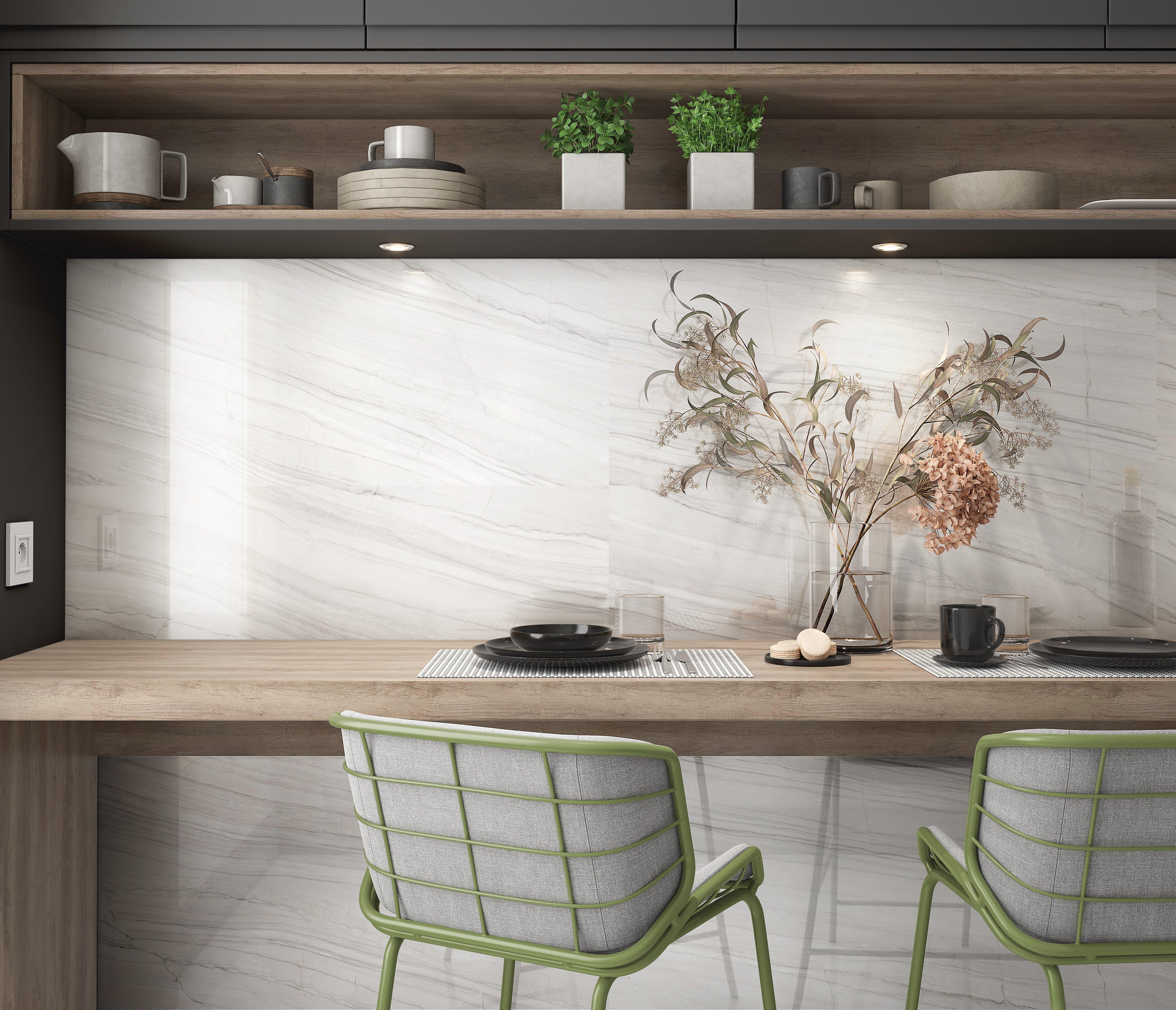 Use ceramic or porcelain tiles with a high-gloss finish to create a classic look.