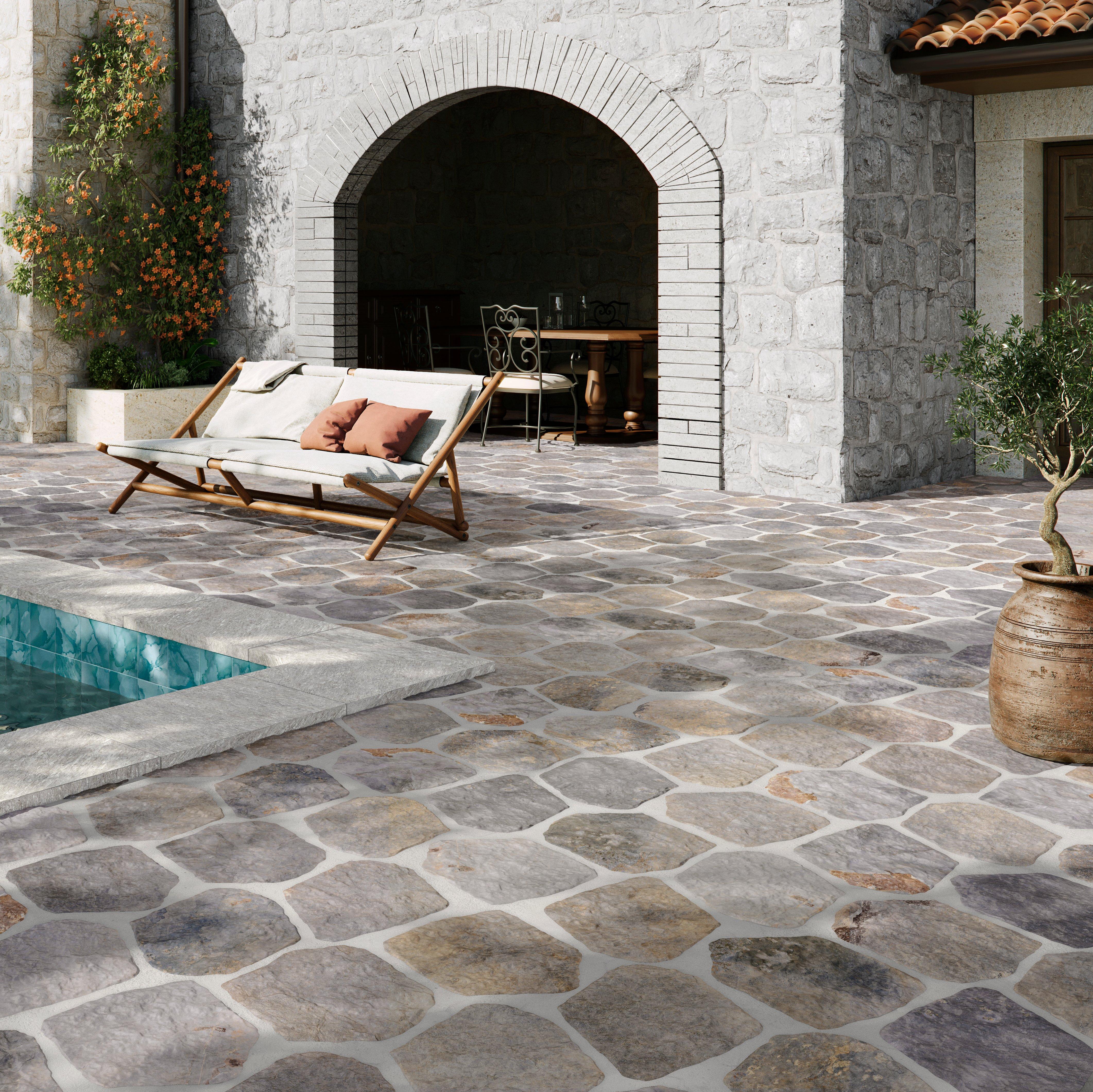 With its multi-color design, hexagon & octagon shapes, flagstone look style family, and matte finish, Eastgate Shoal Matte Porcelain Tile is the perfect solution to elevate the aesthetic of any space at competitive prices.