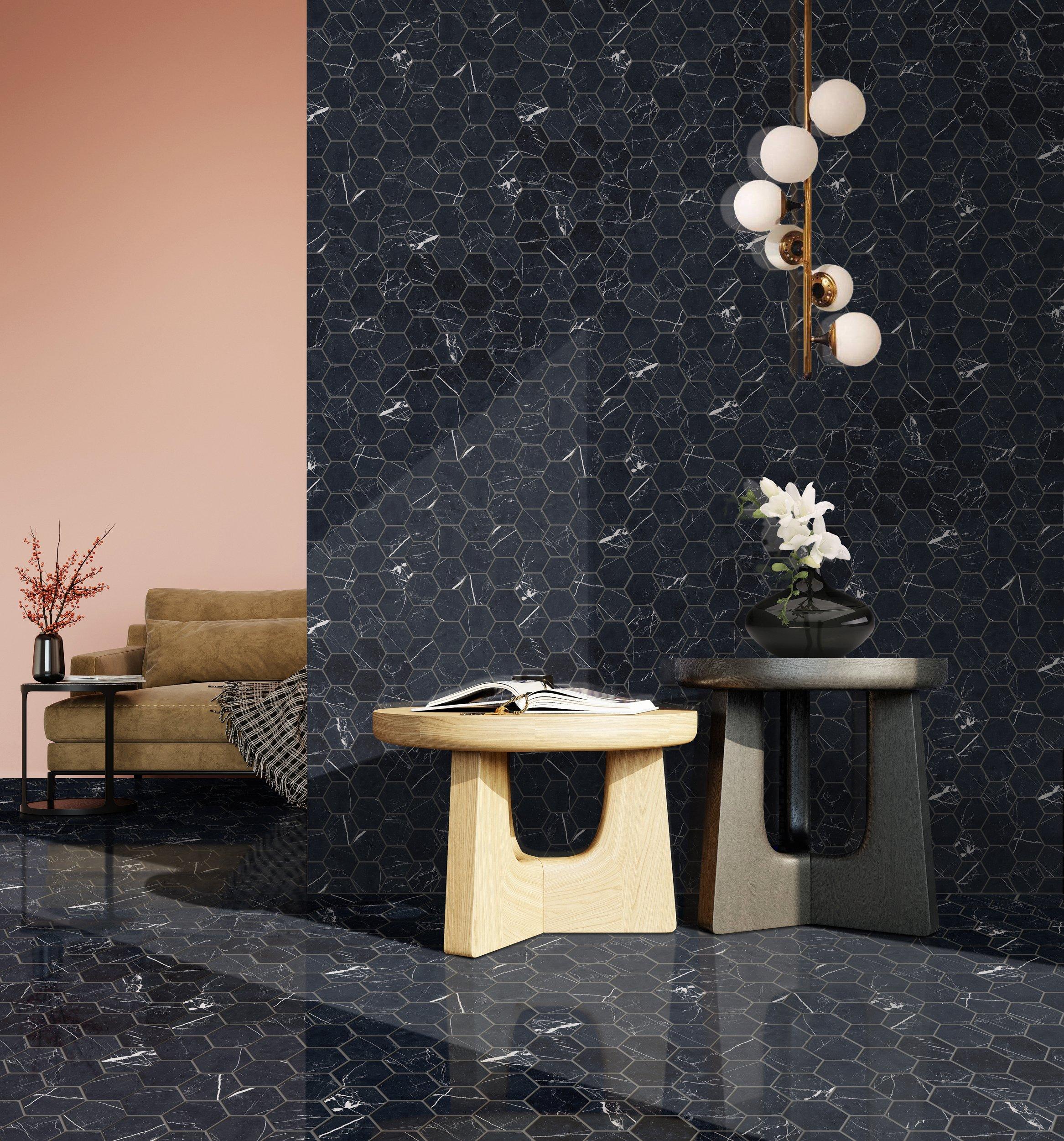 Offering modern to classic appeal, our polished porcelain and ceramic tiles flaunt a shiny, high-gloss finish.