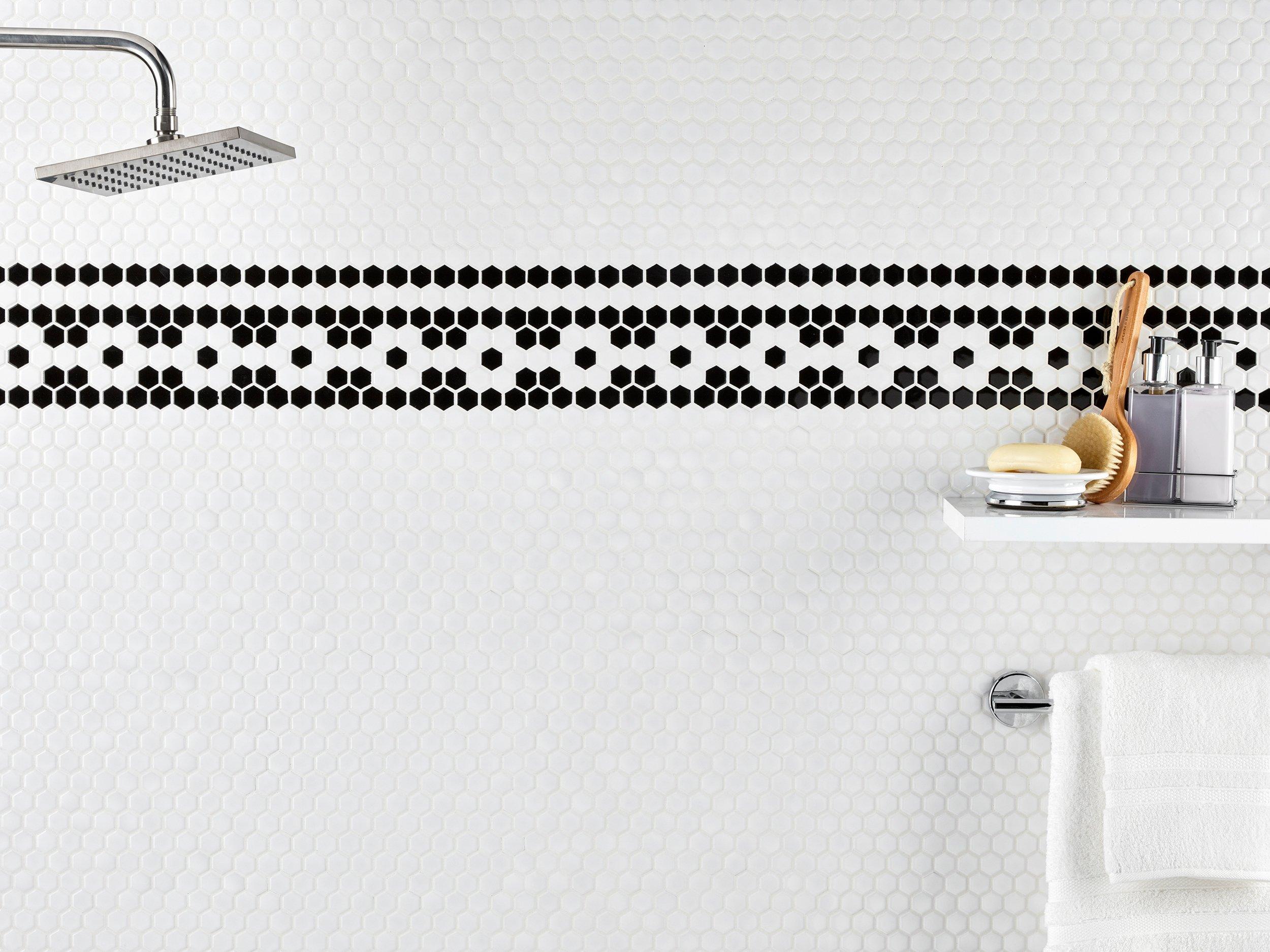 Add style to your home with this 6 x 12 Hexagon Flower Porcelain Polished Border in black color with a polished finish.