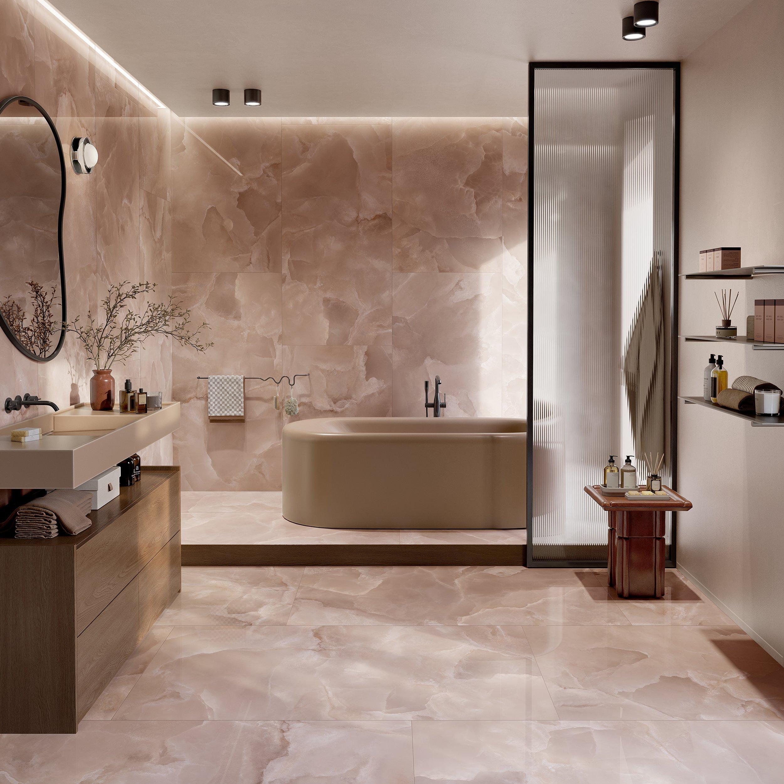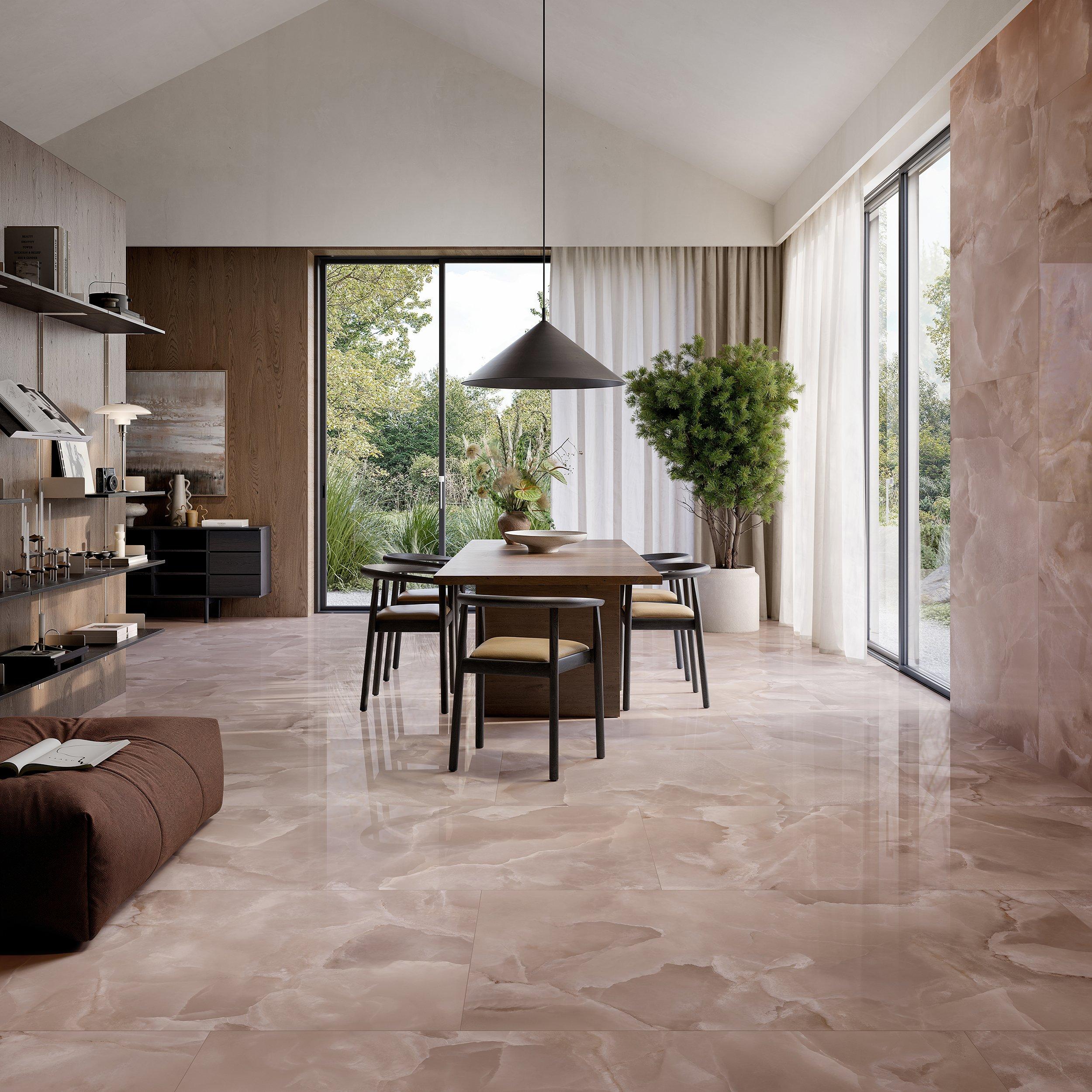 Luminare Rosa Polished Porcelain Tile by Maximo is the perfect blend of elegance and durability. This versatile tile is ideal for both residential and light commercial use, providing a stunning onyx look to any space. With its polished finish and rectified edge, it ensures a seamless and sophisticated appearance.