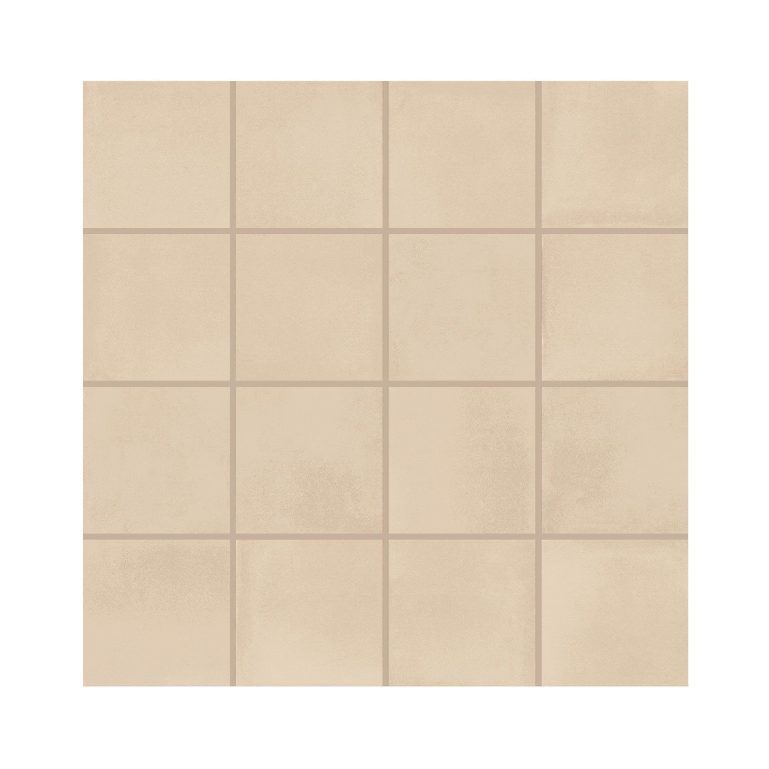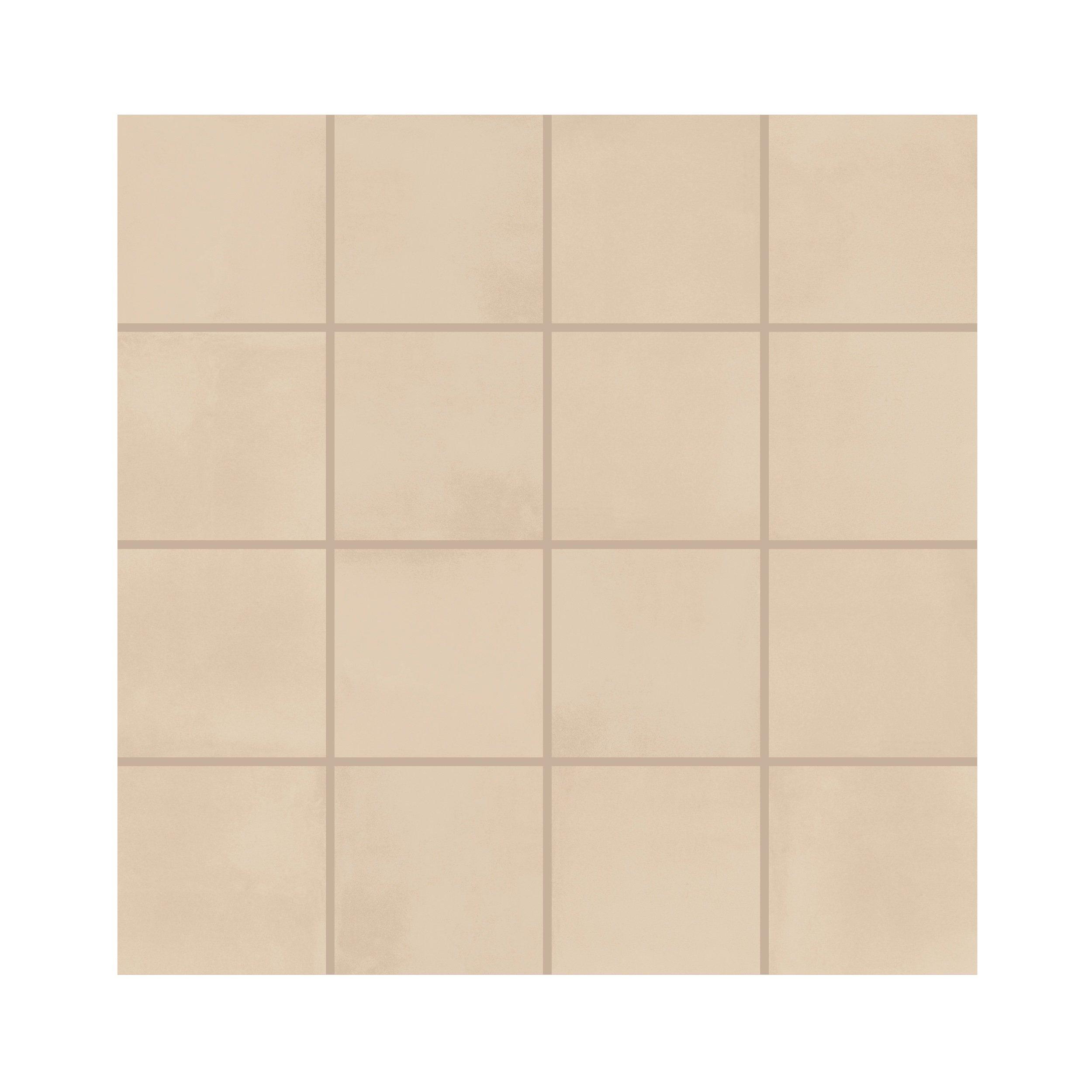 This beige Luxe Dune Square Matte Porcelain Mosaic is 12 x 12 with matte finish.