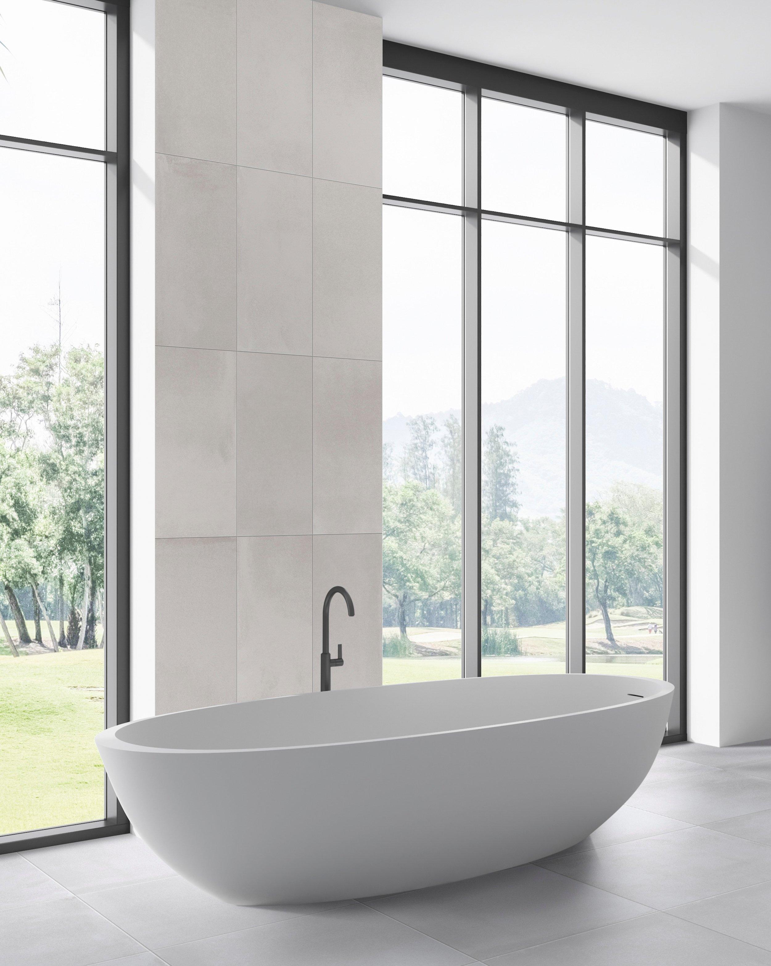 With a matte finish, this gray Luxe Fog Matte Porcelain Tile is 12 x 24.