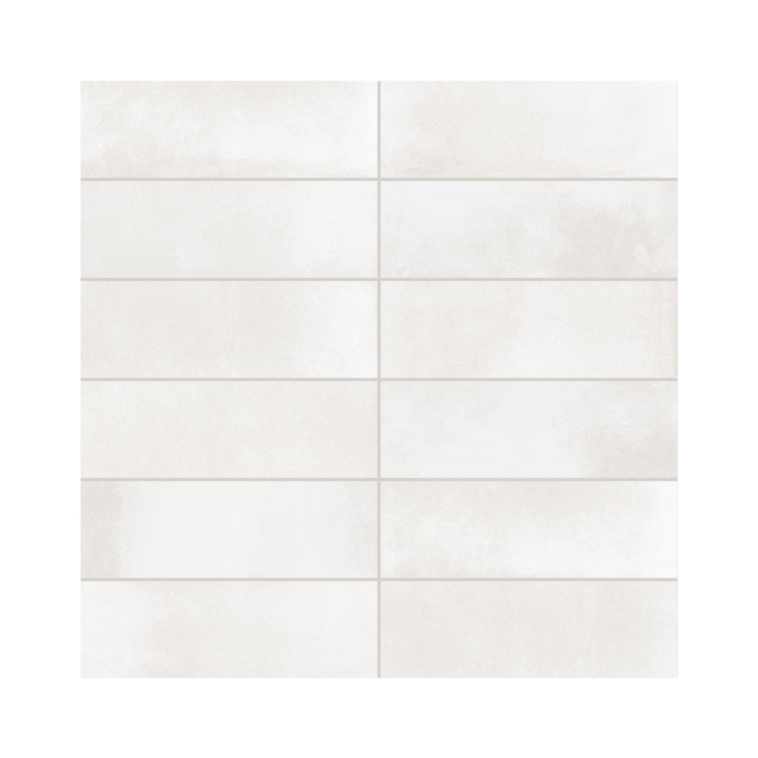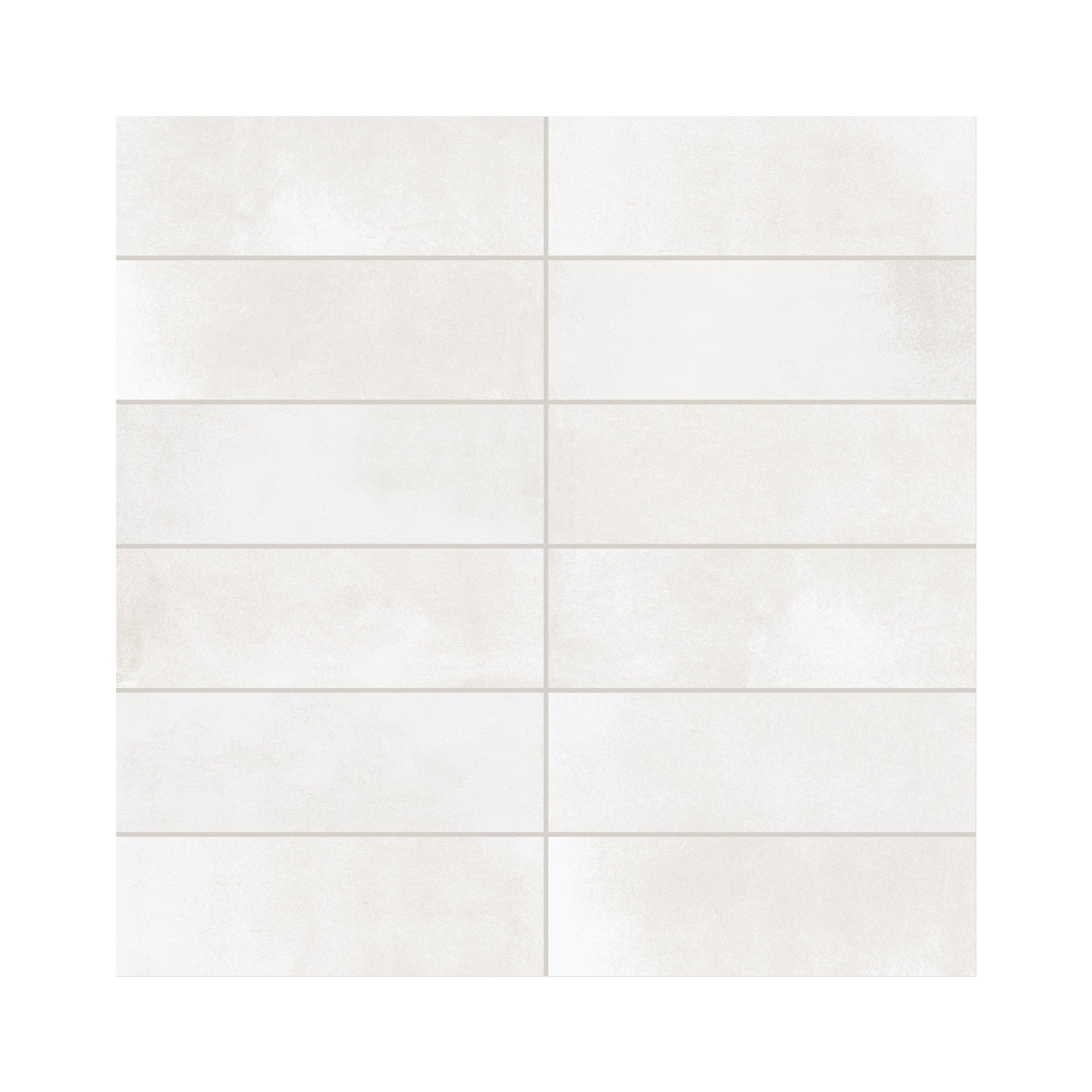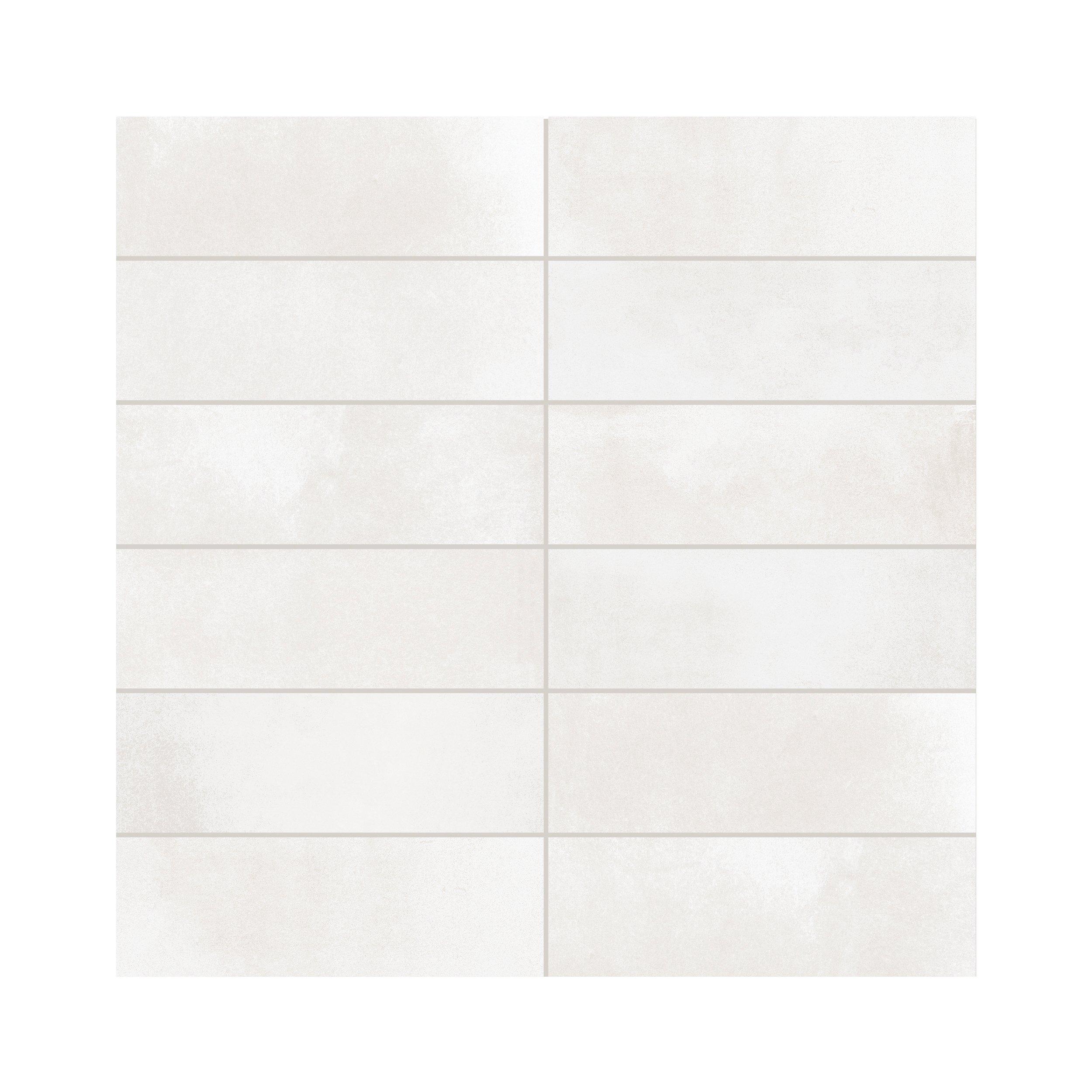 This white Luxe Sand Stacked Matte Porcelain Mosaic is 12 x 12 with matte finish.