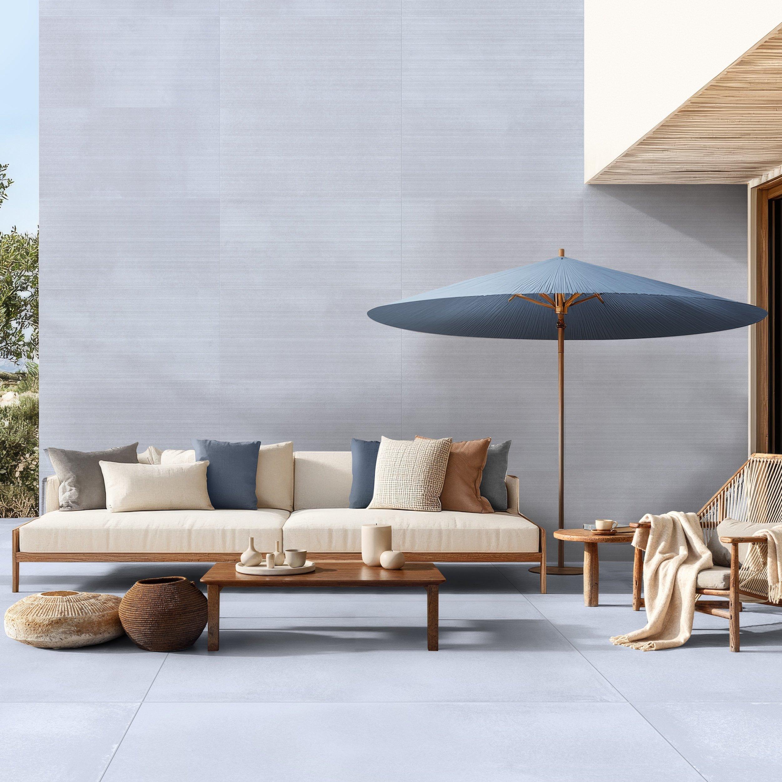 With its striking blue color and 8mm thickness, Luxe Sky Linear Porcelain Tile by Vetta combines beauty and functionality to elevate any space.