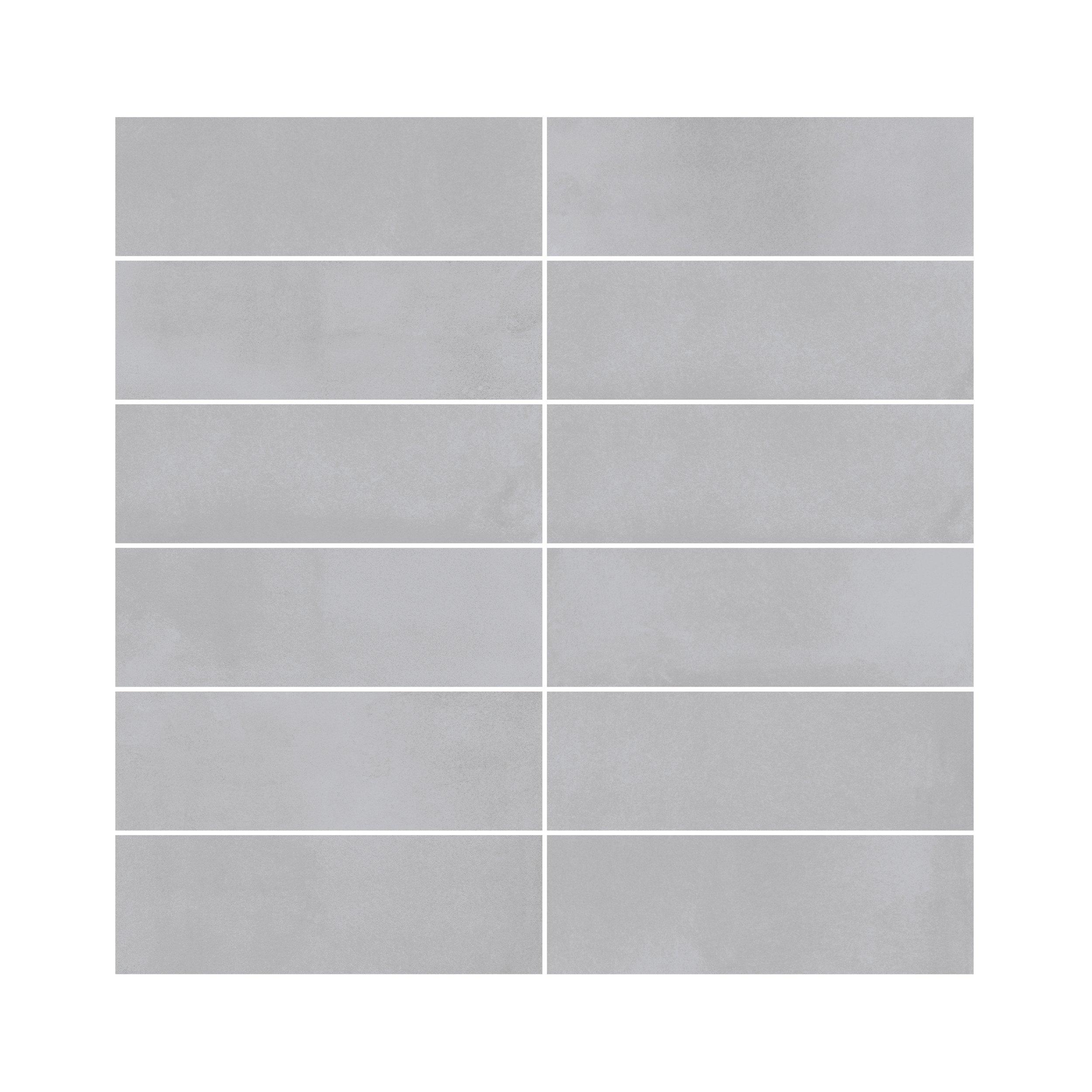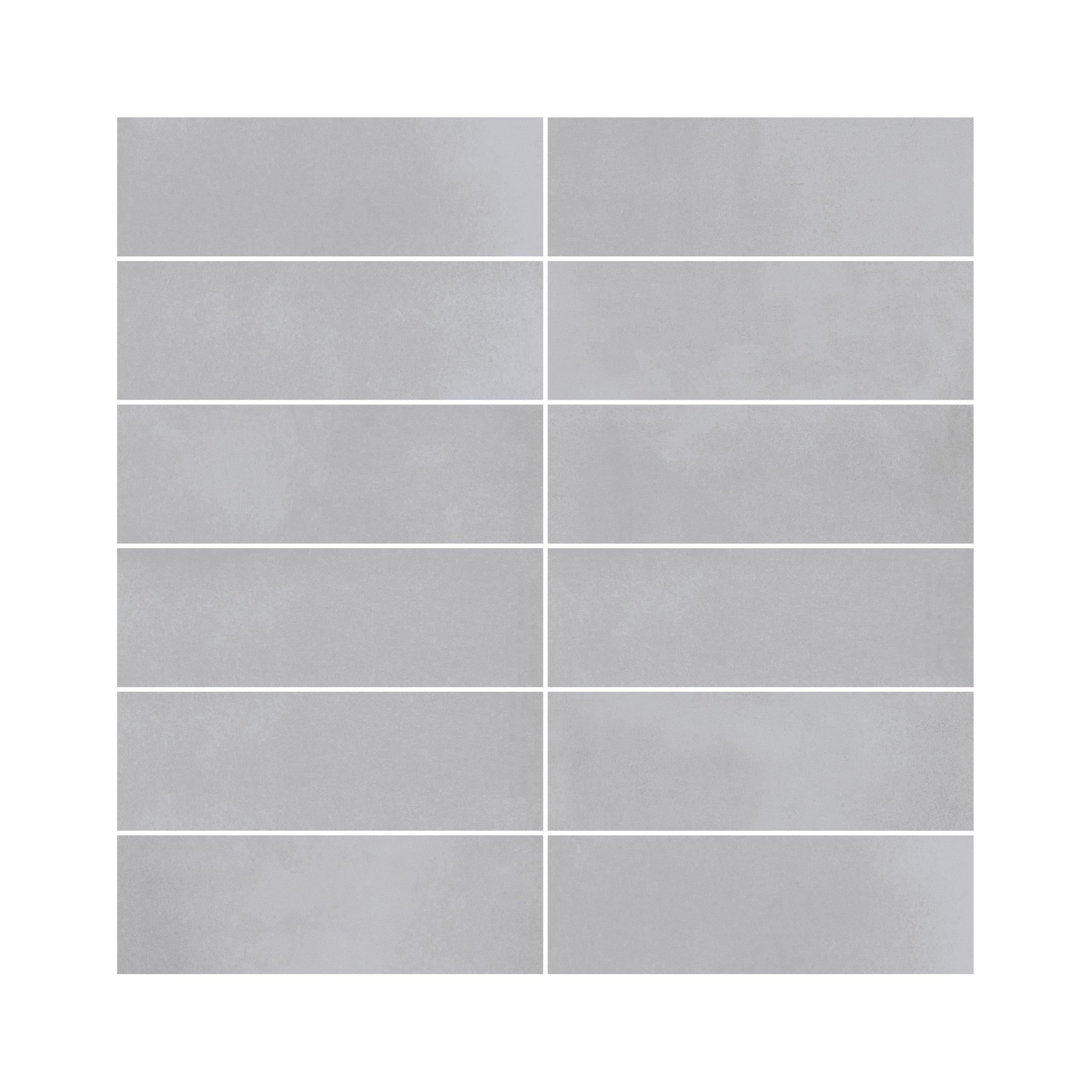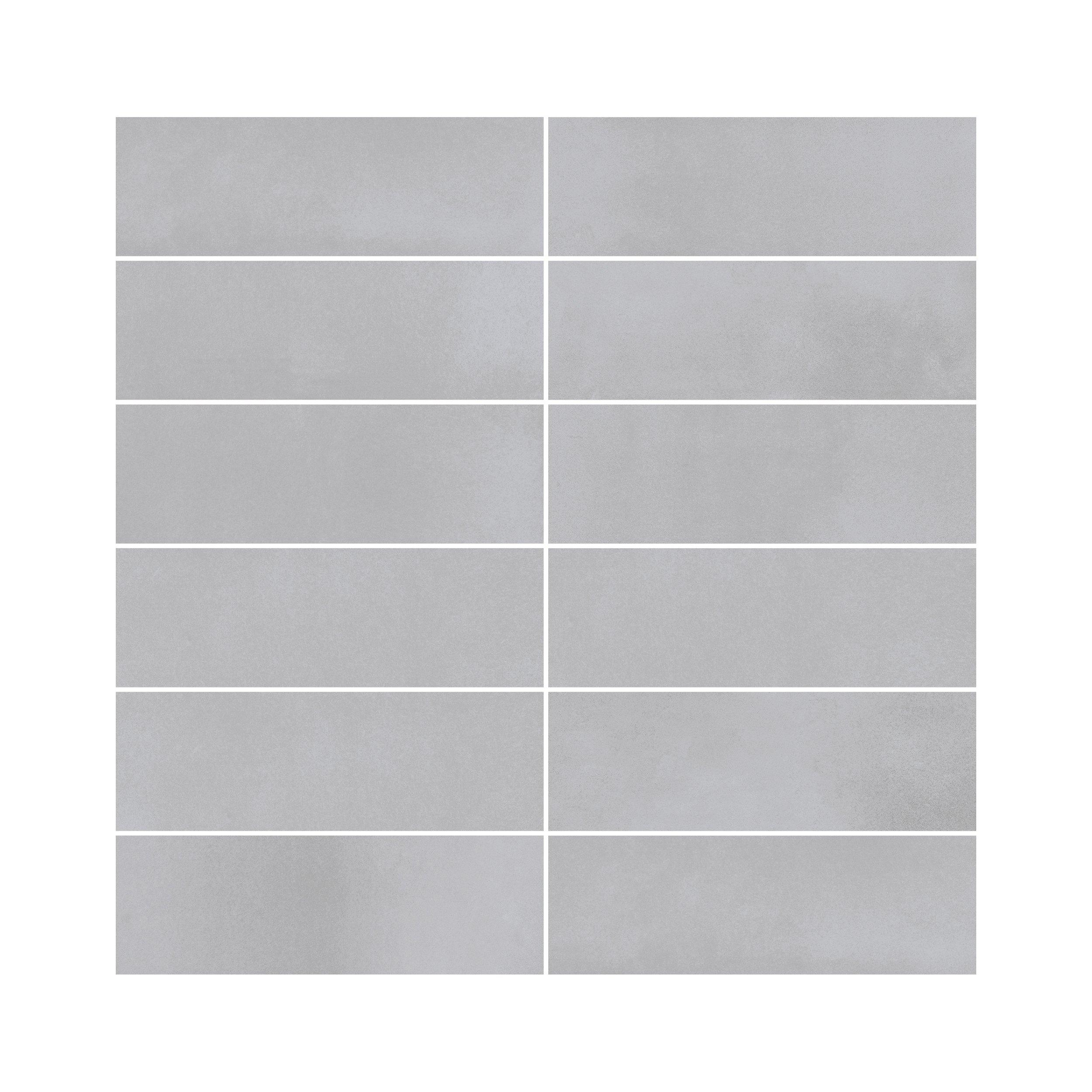 This gray matte Luxe Smoke Stacked Matte Porcelain Mosaic is 12 x 12.