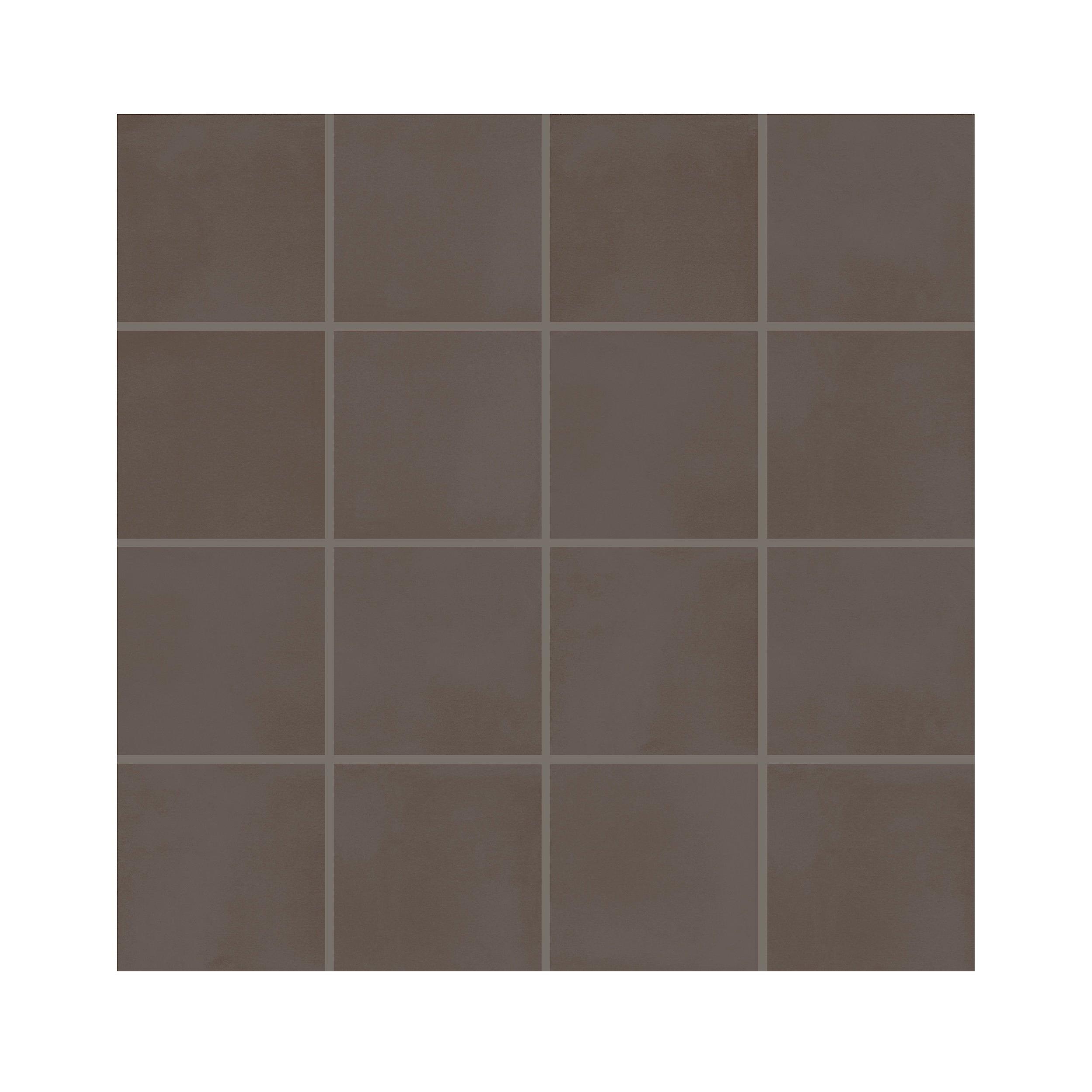 With a matte finish, this brown Luxe Umber Square Matte Porcelain Mosaic is 12 x 12.
