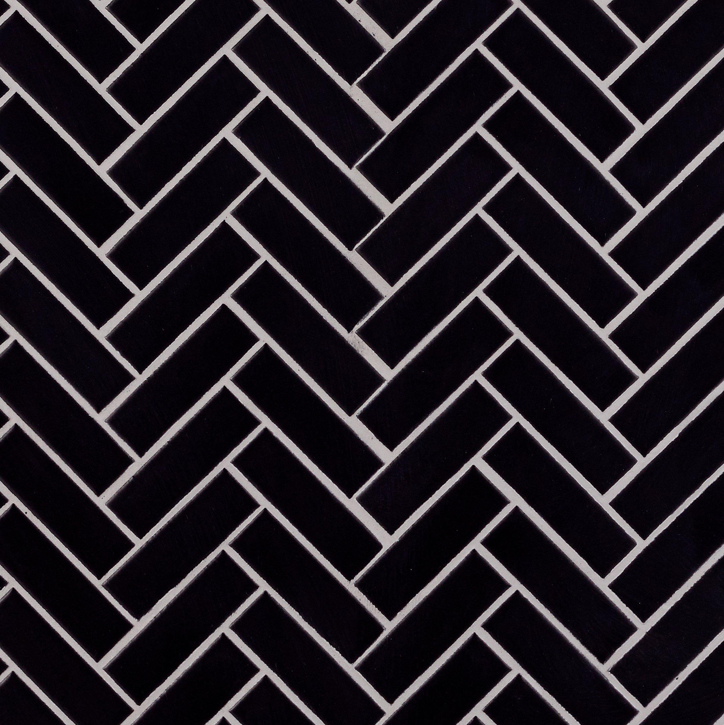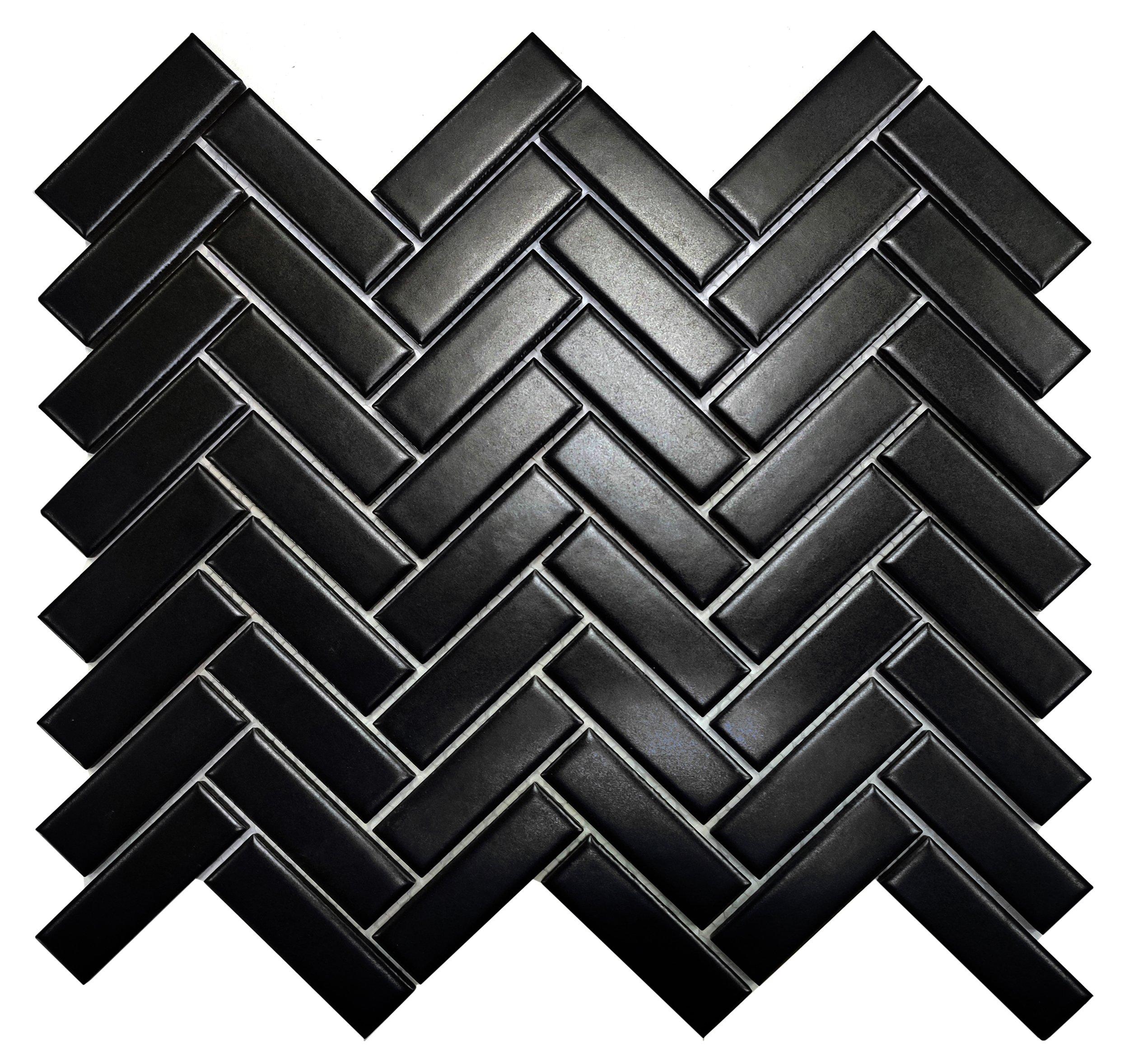 Make a statement with the 11 x 12 Matte Black Herringbone Porcelain Mosaic. This tile is black and has a matte finish, making it an excellent addition for your style and space.