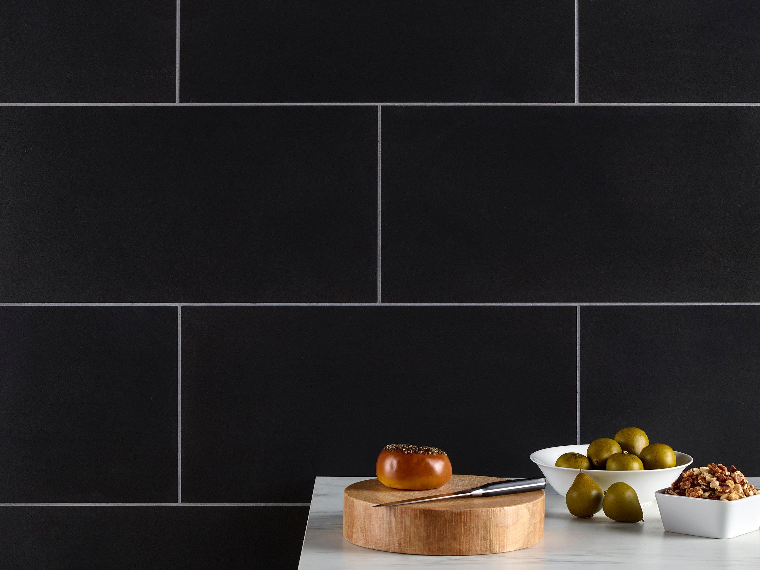 This black matte Milano Noir Porcelain Tile is 12 x 24.
