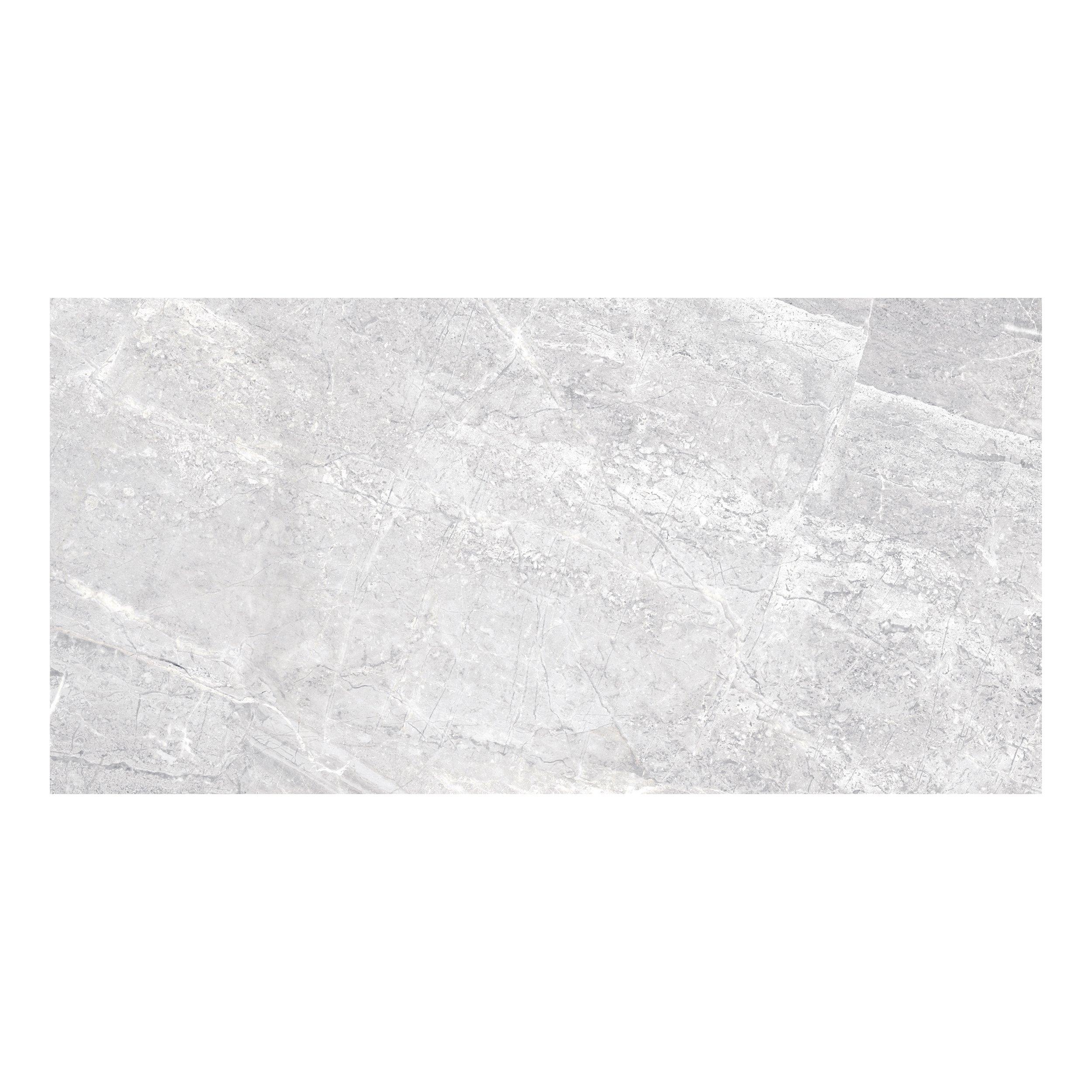 This gray polished or high gloss Nepal Gray Polished Porcelain Tile is 12 x 24.