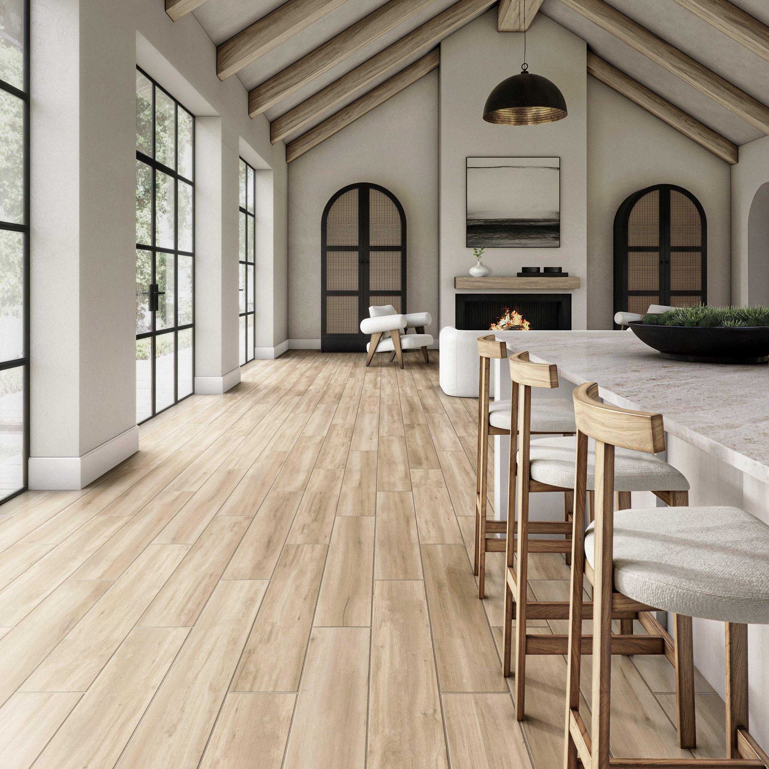 You can never go wrong with the warm look of wood when you pair it with the durability and versatility of tile. The Newcastle Beige Porcelain Tile will create a unique touch to any room or project with everything from the edges to the printed design.