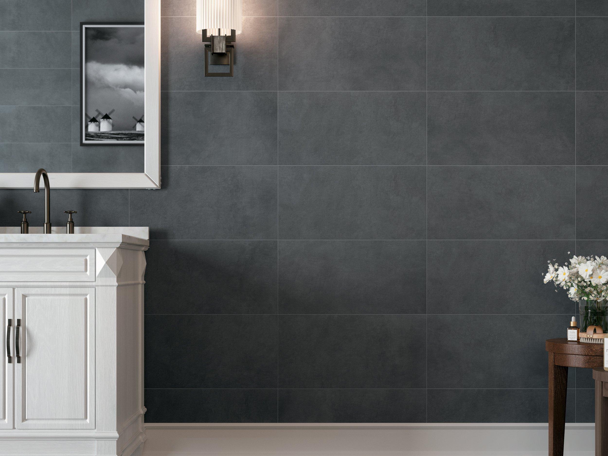With a matte finish, this gray Resin Antracite Porcelain Tile is 12 x 24.