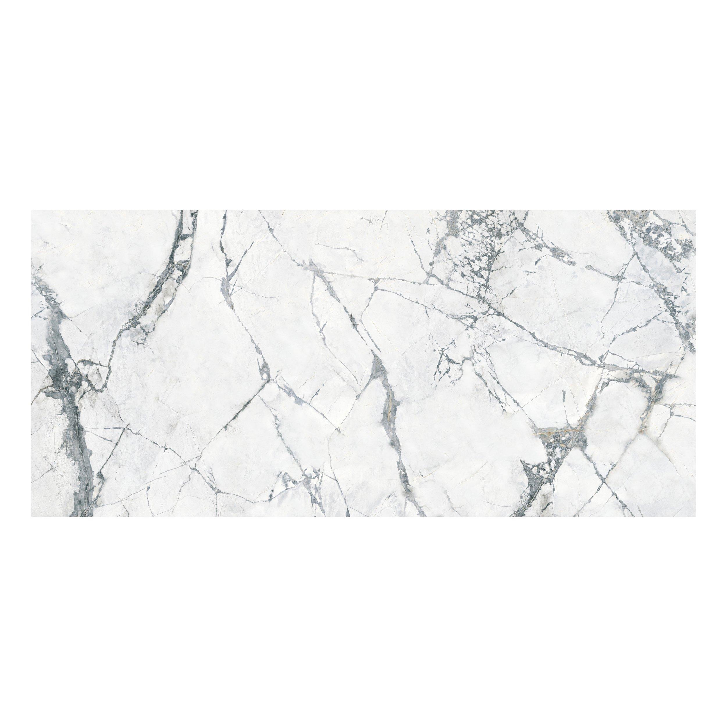 This white polished or high gloss Rialto Grand Polished Porcelain Tile is 24 x 48.