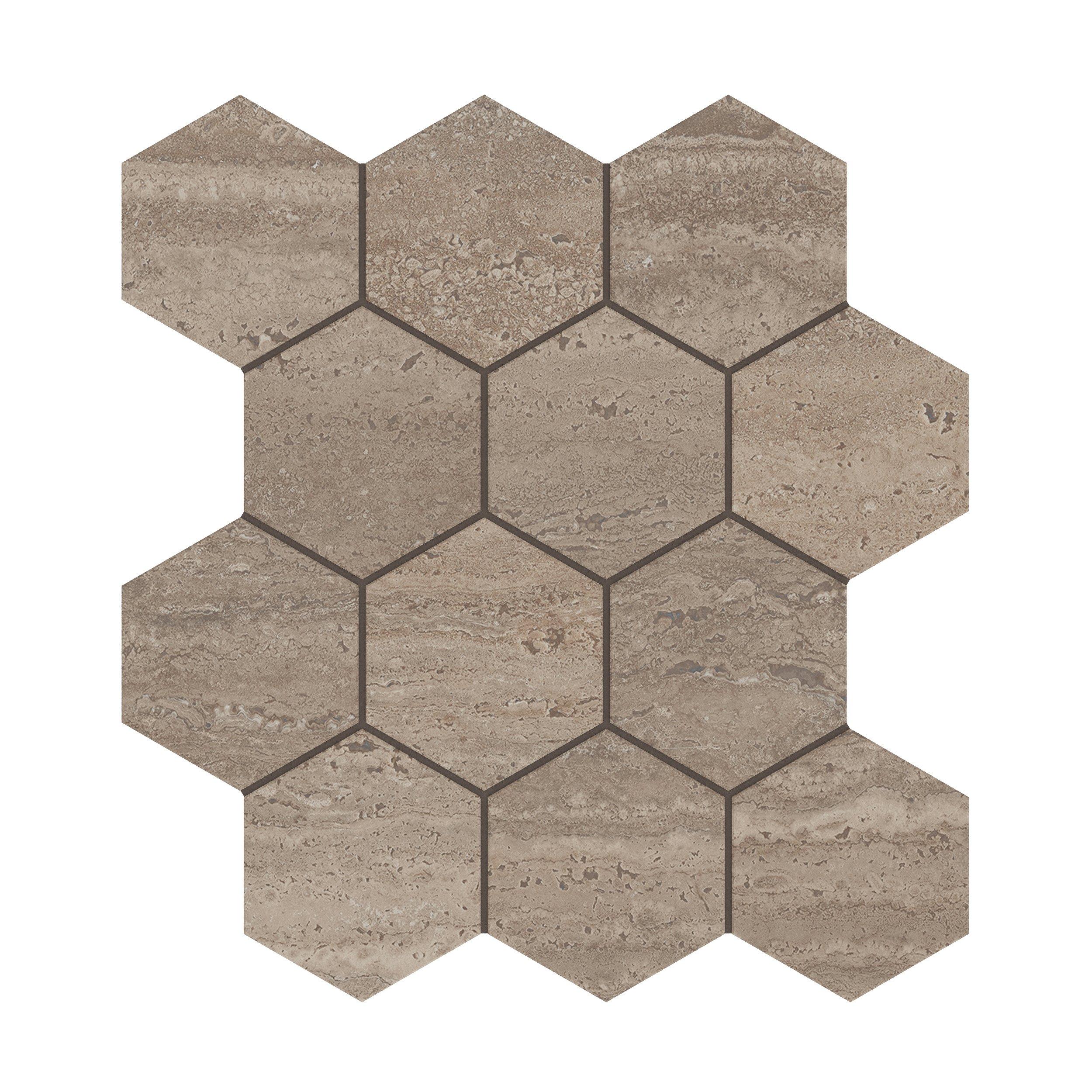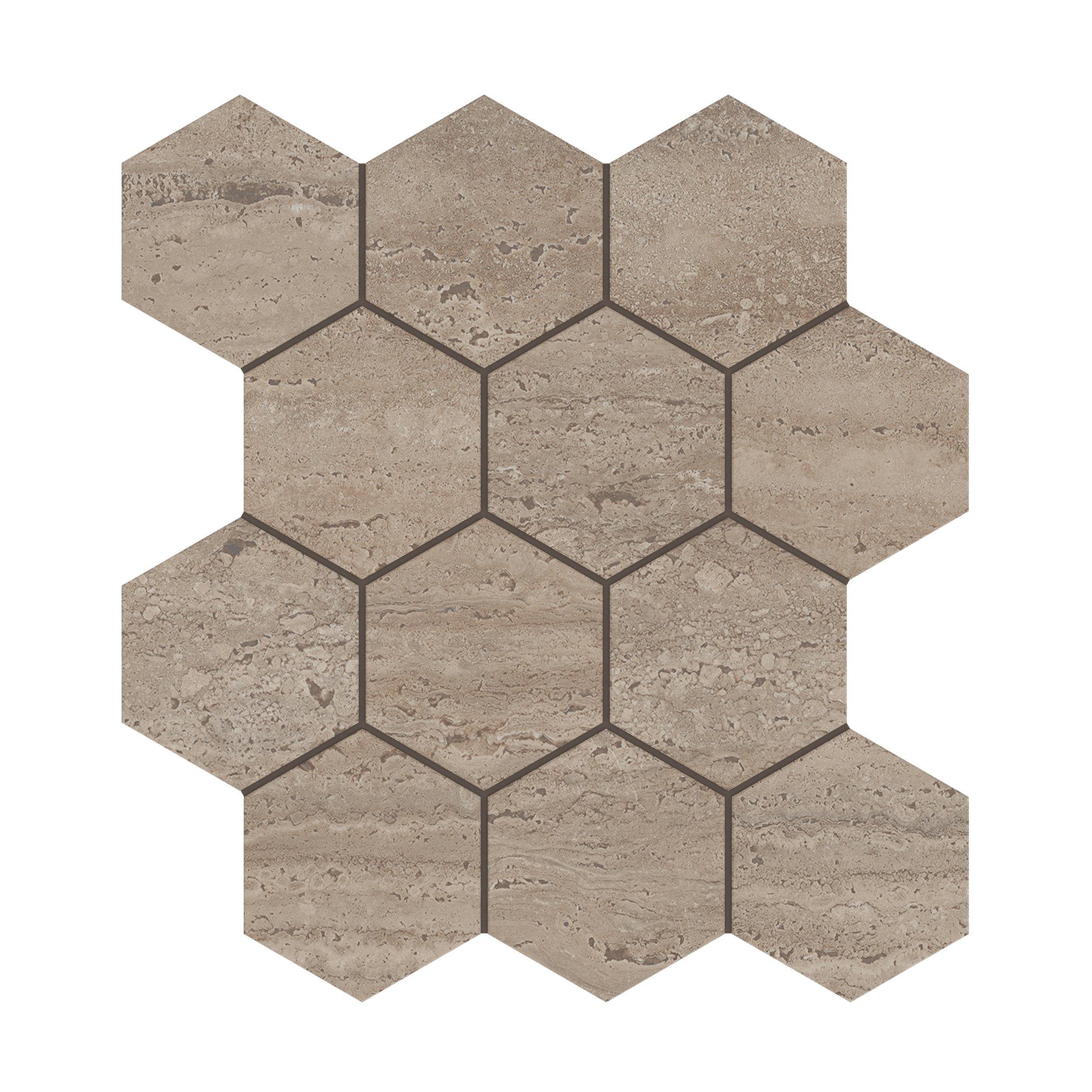 The Riviera Chai Hexagon Matte Porcelain Mosaic comes in a beautiful brown color with a hexagon shape that adds visual interest. Its matte finish enhances the travertine look, making it an excellent choice for creating elegant yet durable surfaces throughout your home or commercial property.