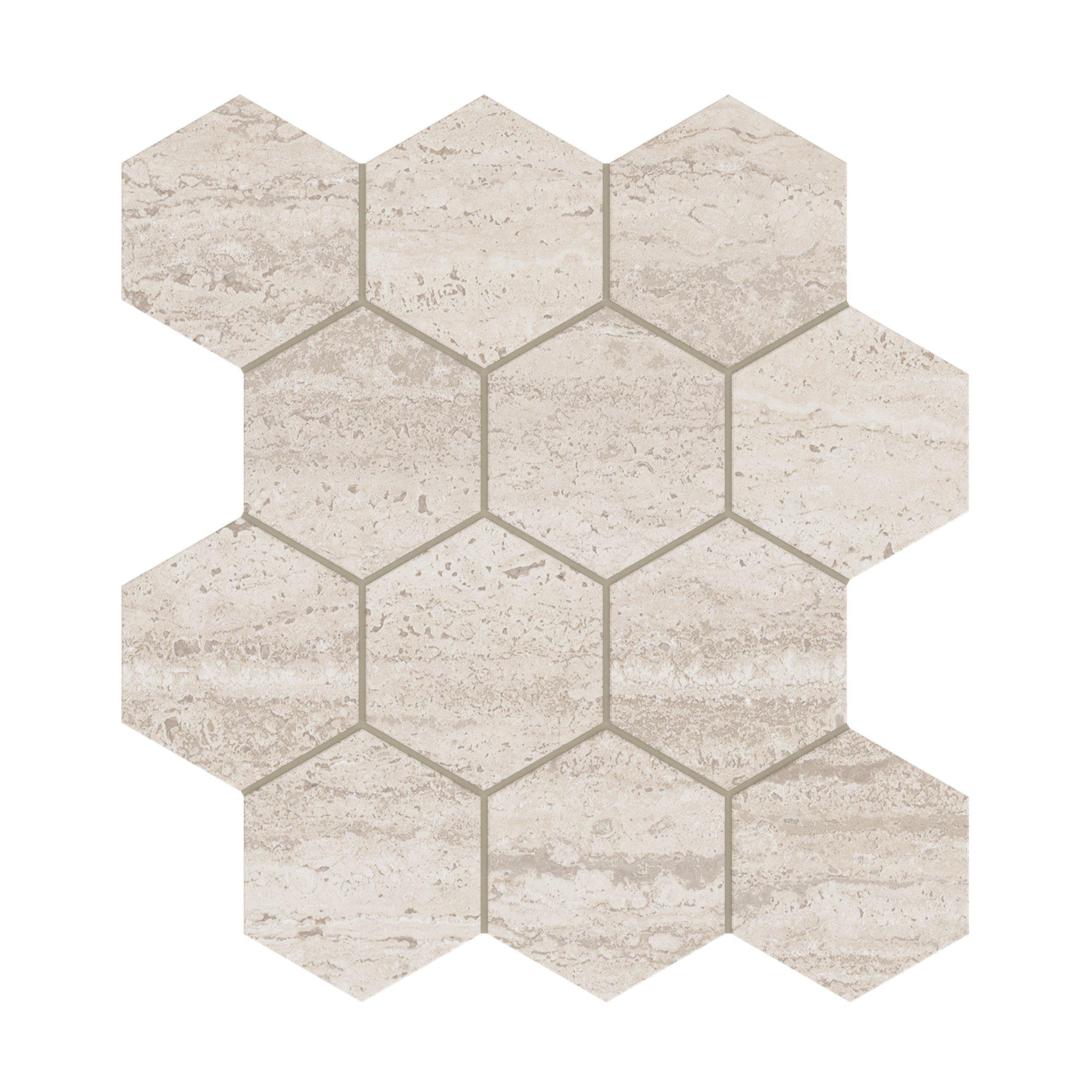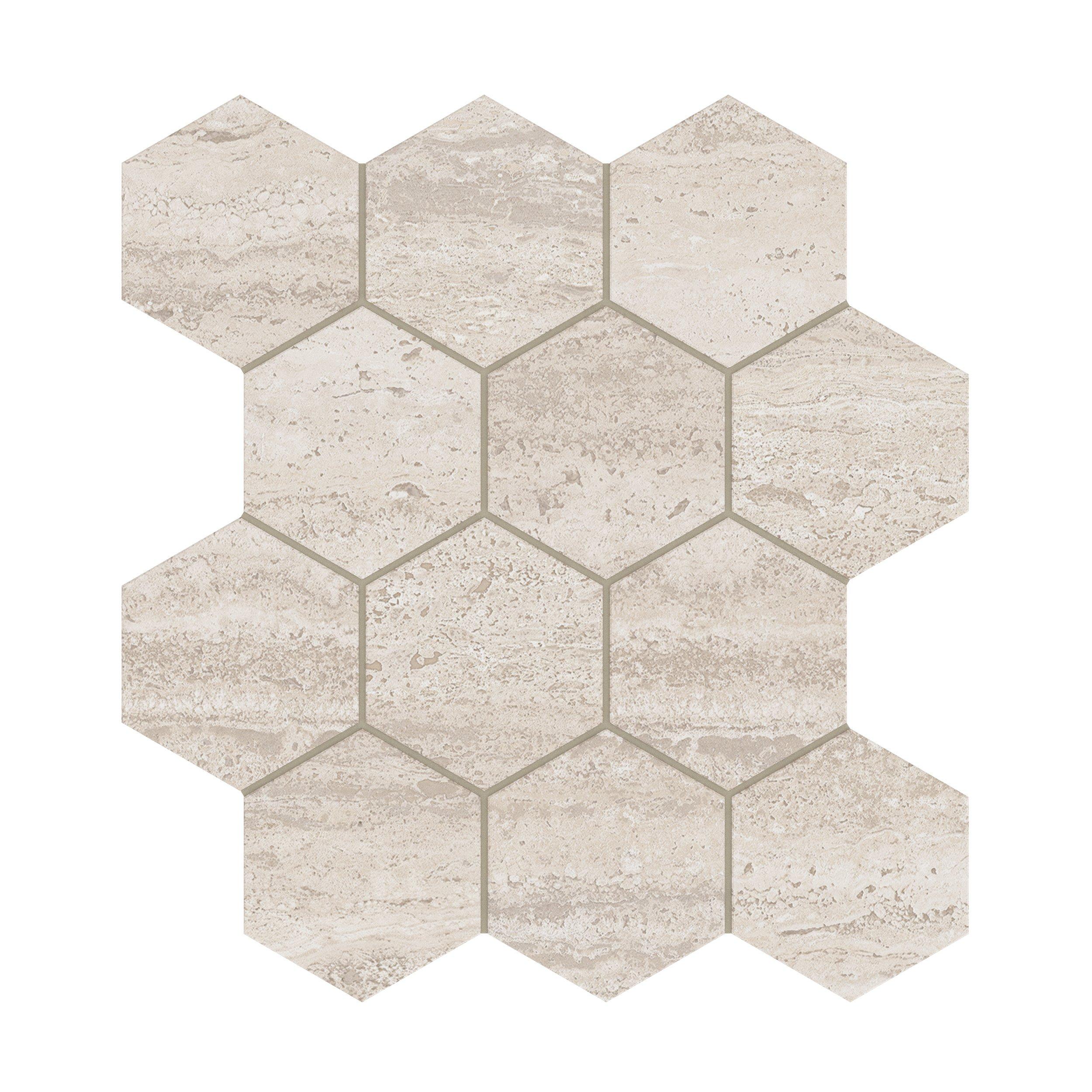 With its beige color, hexagon shape, and travertine look, the Riviera Oat Hexagon Matte Porcelain Mosaic is a beautiful addition to any space. Its 12 x 12 nominal size makes it easy to work with while ensuring a stunning result.