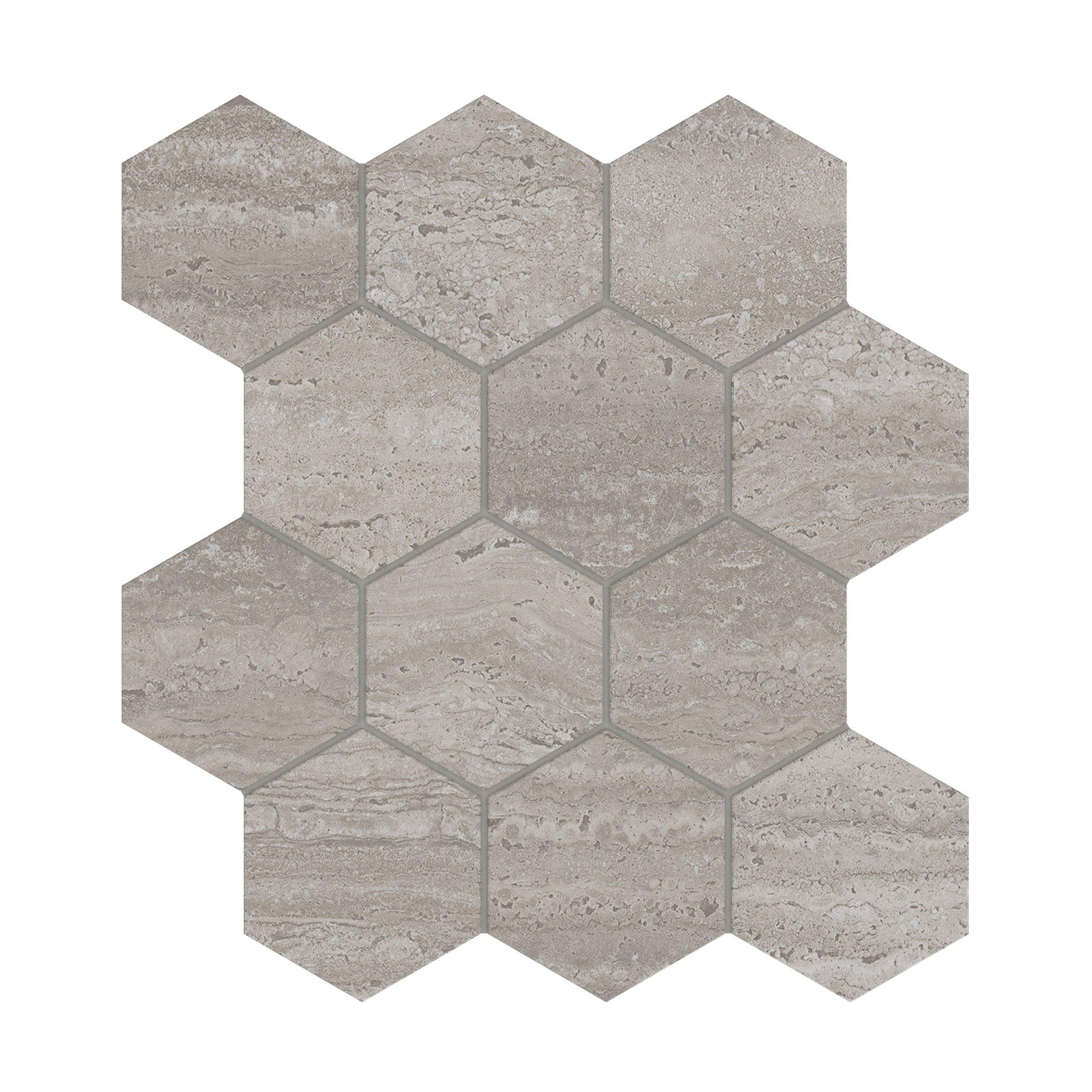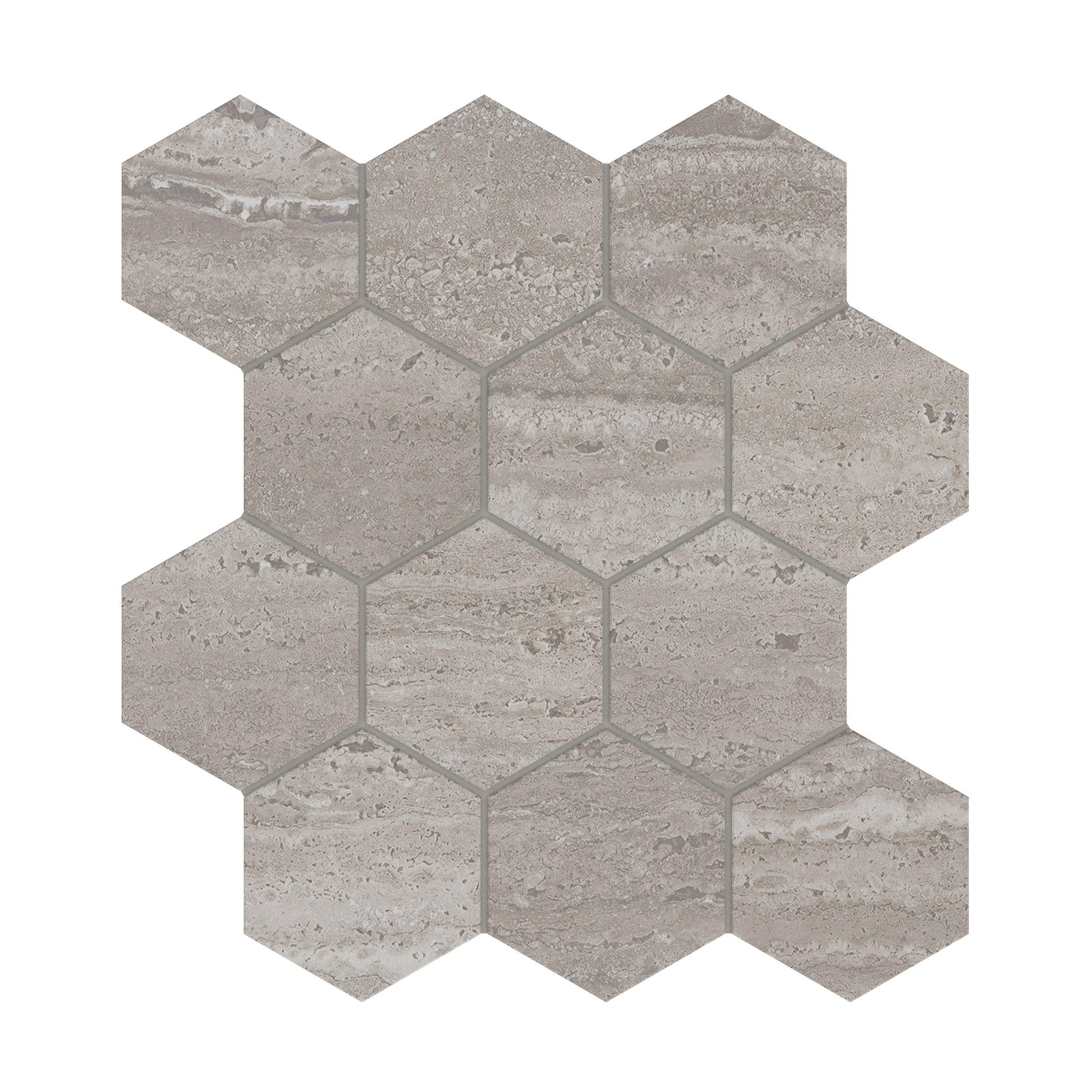 Available in a beautiful gray color, this hexagon & octagon-shaped tile captures the timeless travertine look. The 12 x 12 nominal size description makes it suitable for various design applications. With an approximate thickness of 8 mm and a matte finish, its perfect for those seeking both style and practicality.