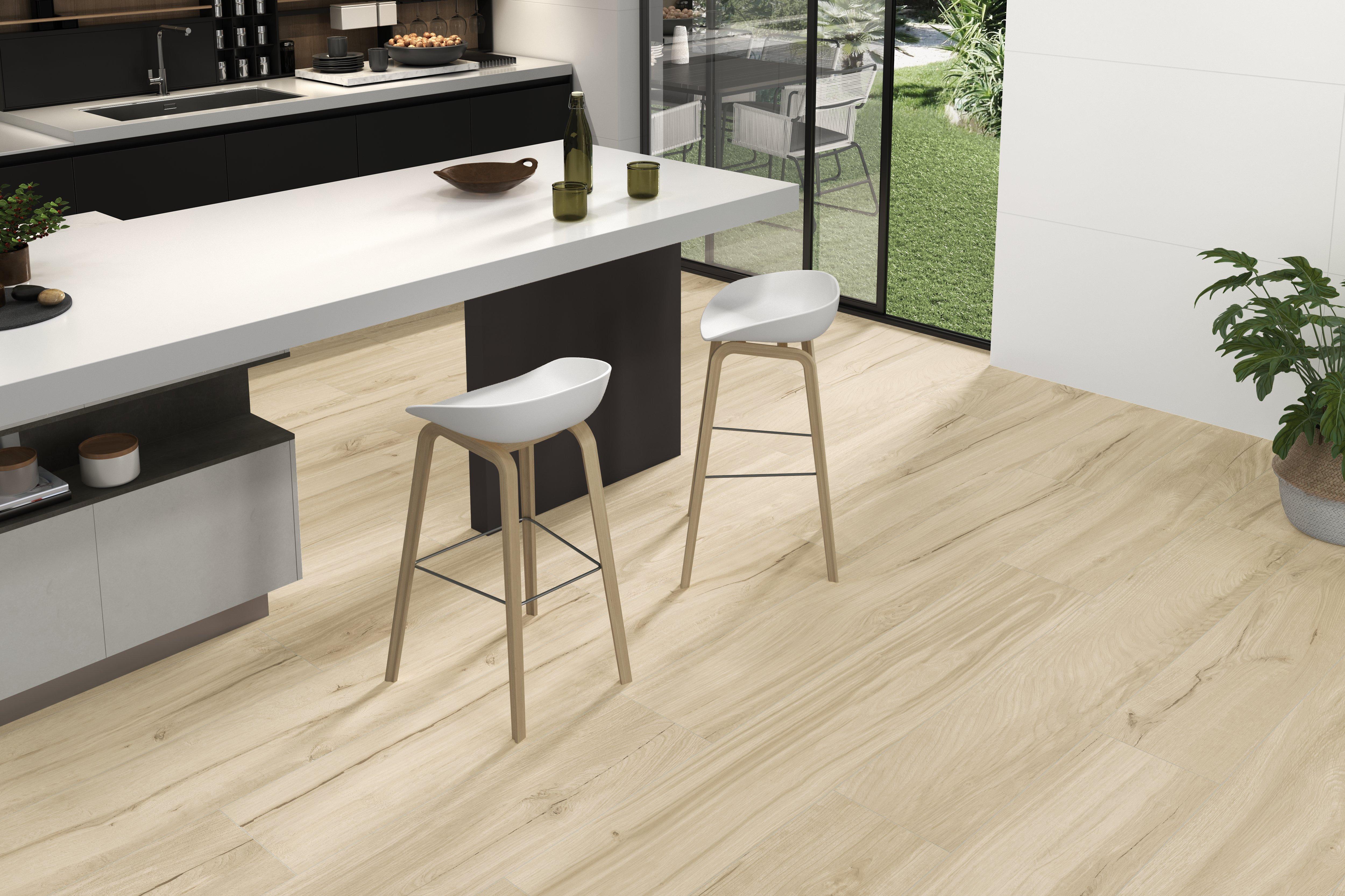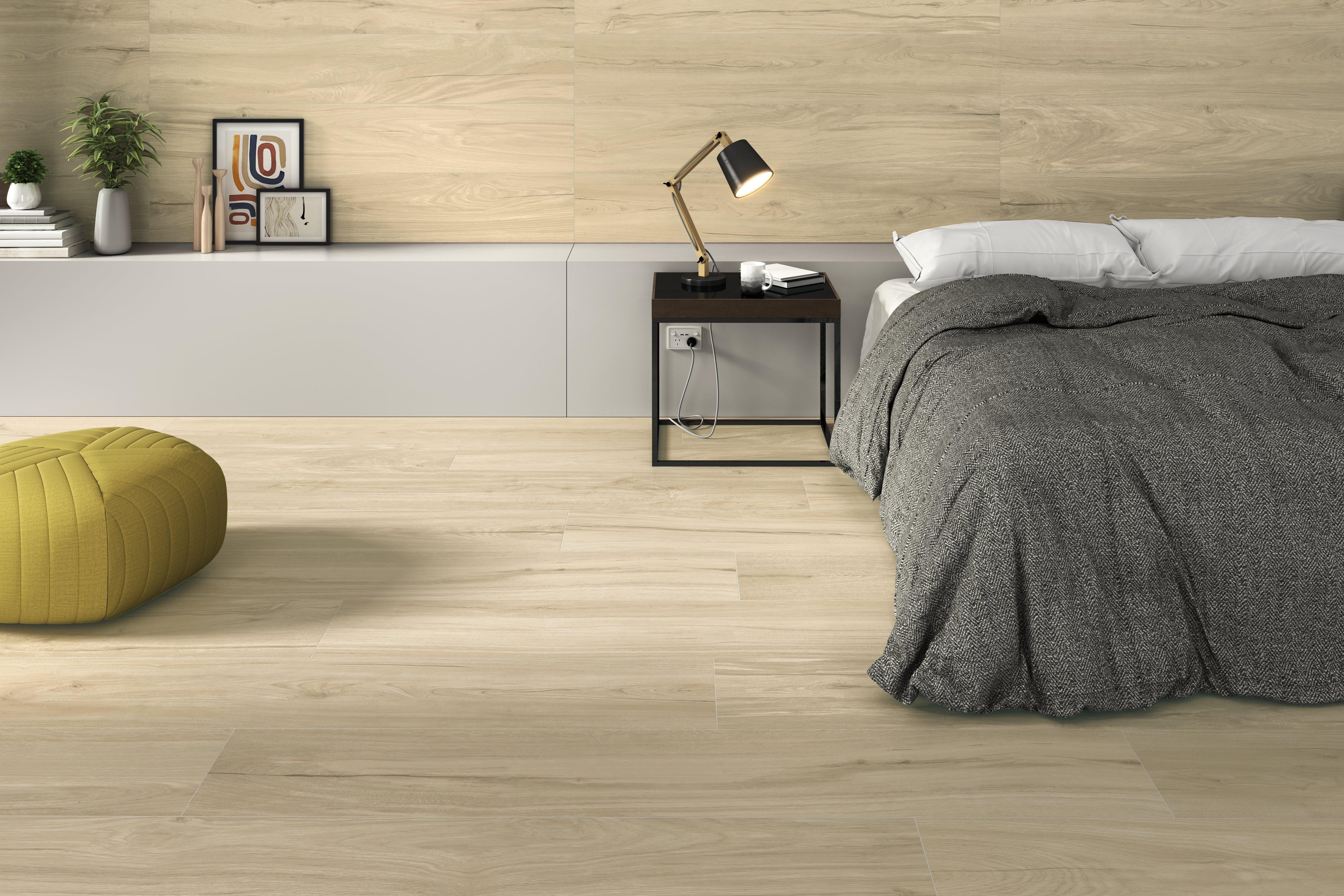 This natural matte Rowen Birch Wood Look Matte Porcelain Tile is 10 x 62.