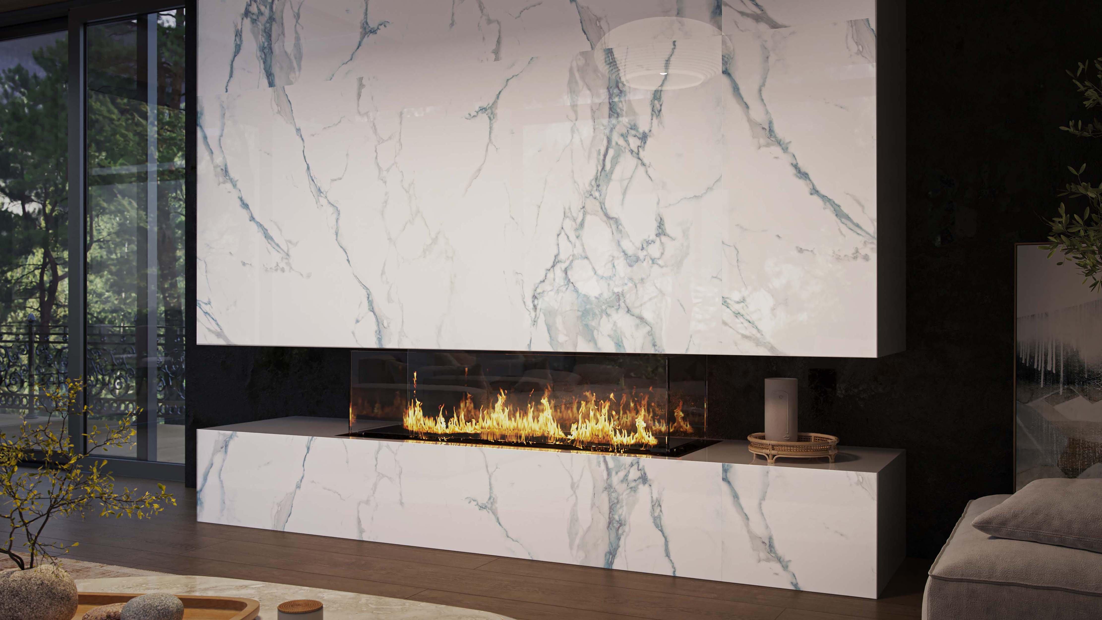 The Sample - Mart Porcelain Slab provides stunning opulence for any focal point in your next indoor or outdoor project. Minimal grout lines create a luxurious and seamless appearance, and the porcelain material offers optimal durability. Luxury and performance create endless possibilities for an elevated design in a variety of spaces.