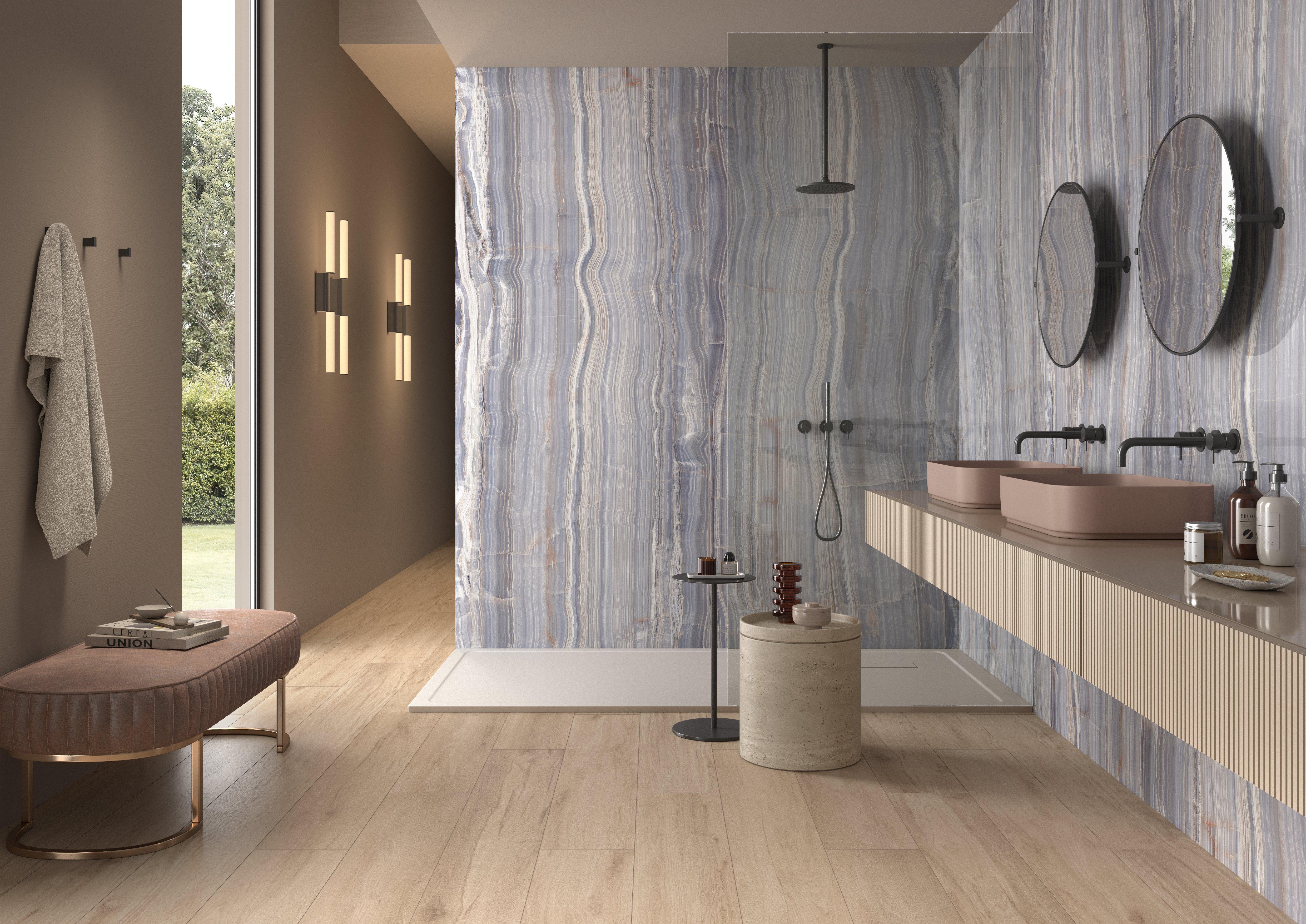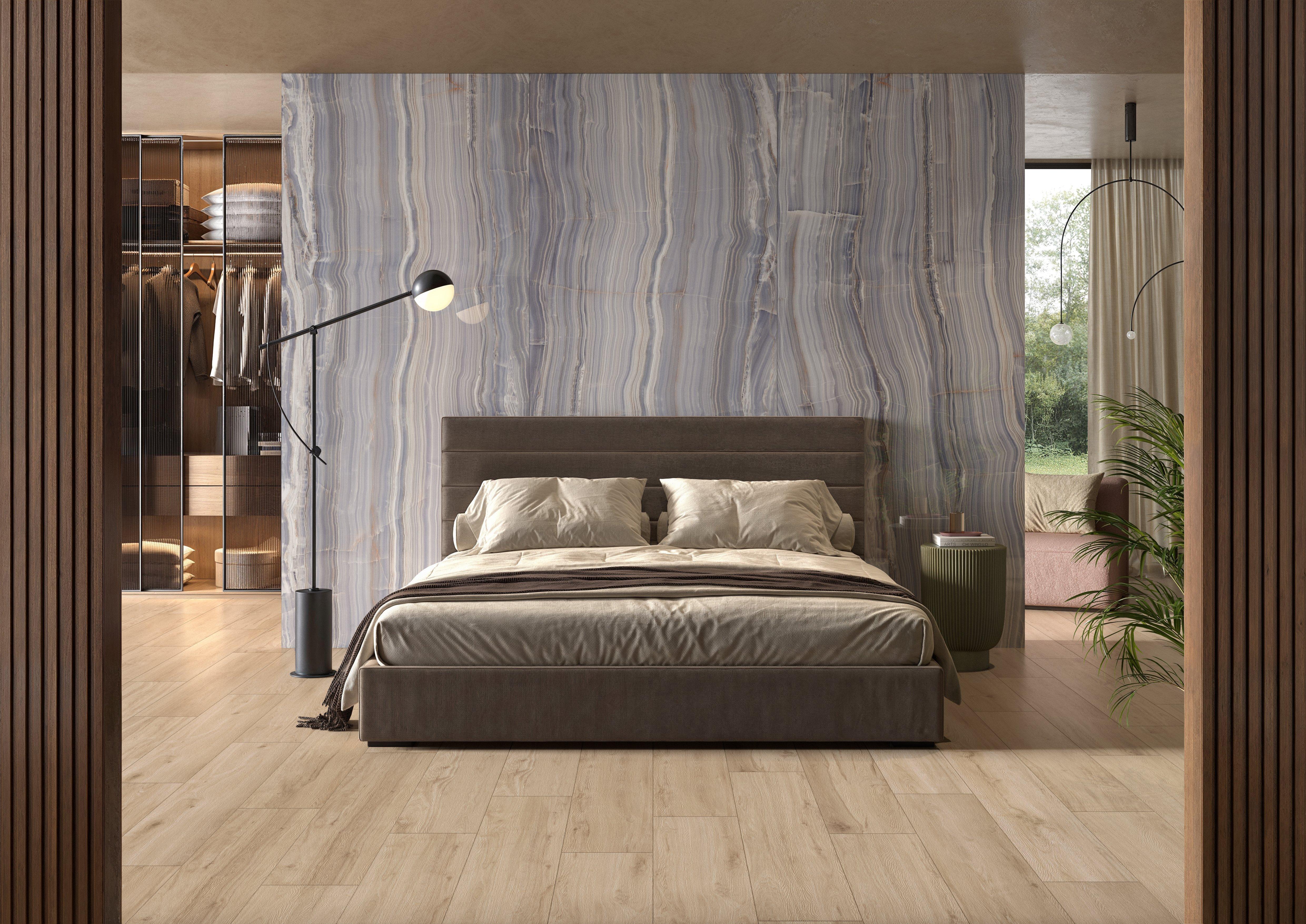The Sample - Persephone Polished Porcelain Slab provides stunning opulence for any focal point in your next indoor or outdoor project. Minimal grout lines create a luxurious and seamless appearance, and the porcelain material offers optimal durability. Luxury and performance create endless possibilities for an elevated design in a variety of spaces.