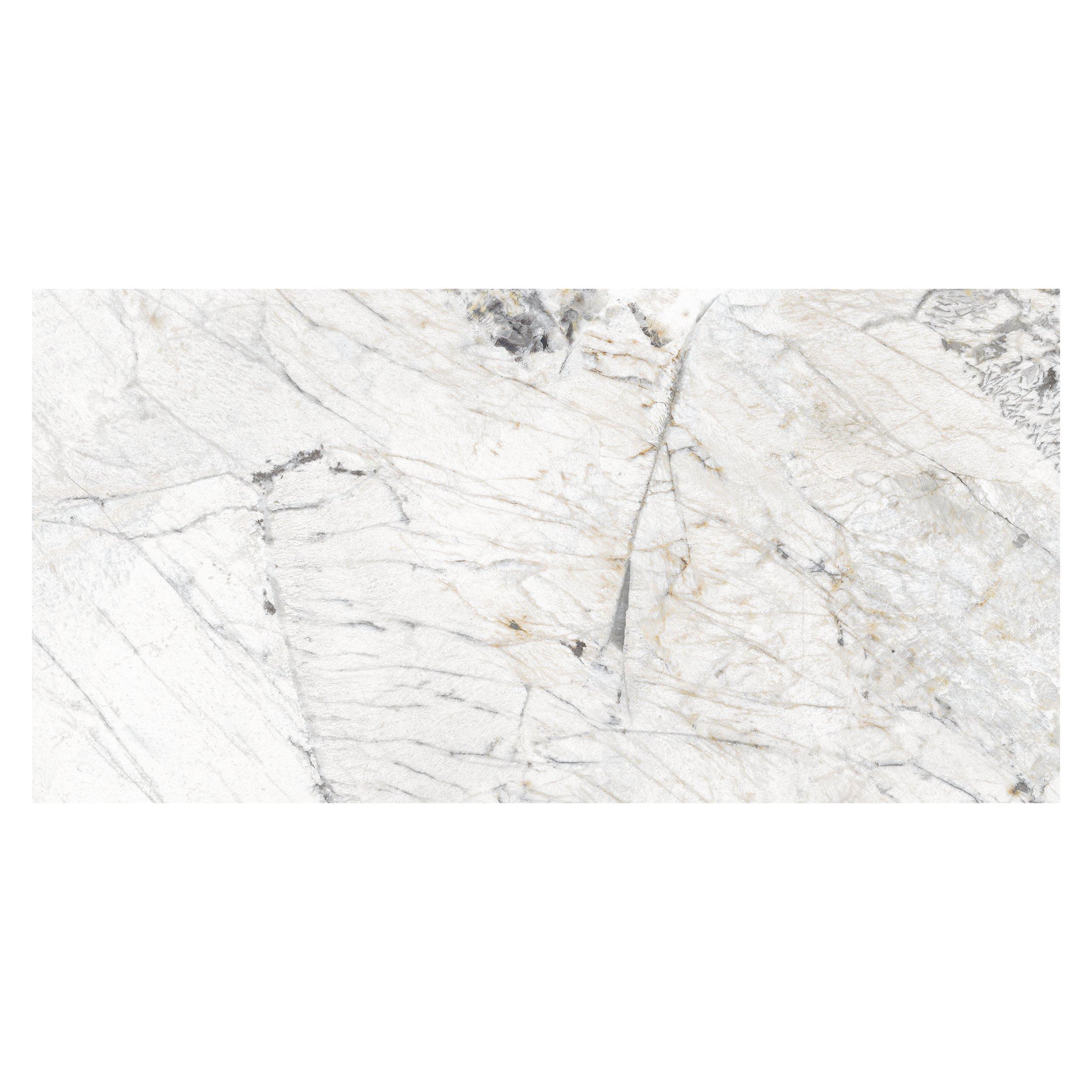 With a polished or high gloss finish, this white San Matias Polished Porcelain Tile is 24 x 48.