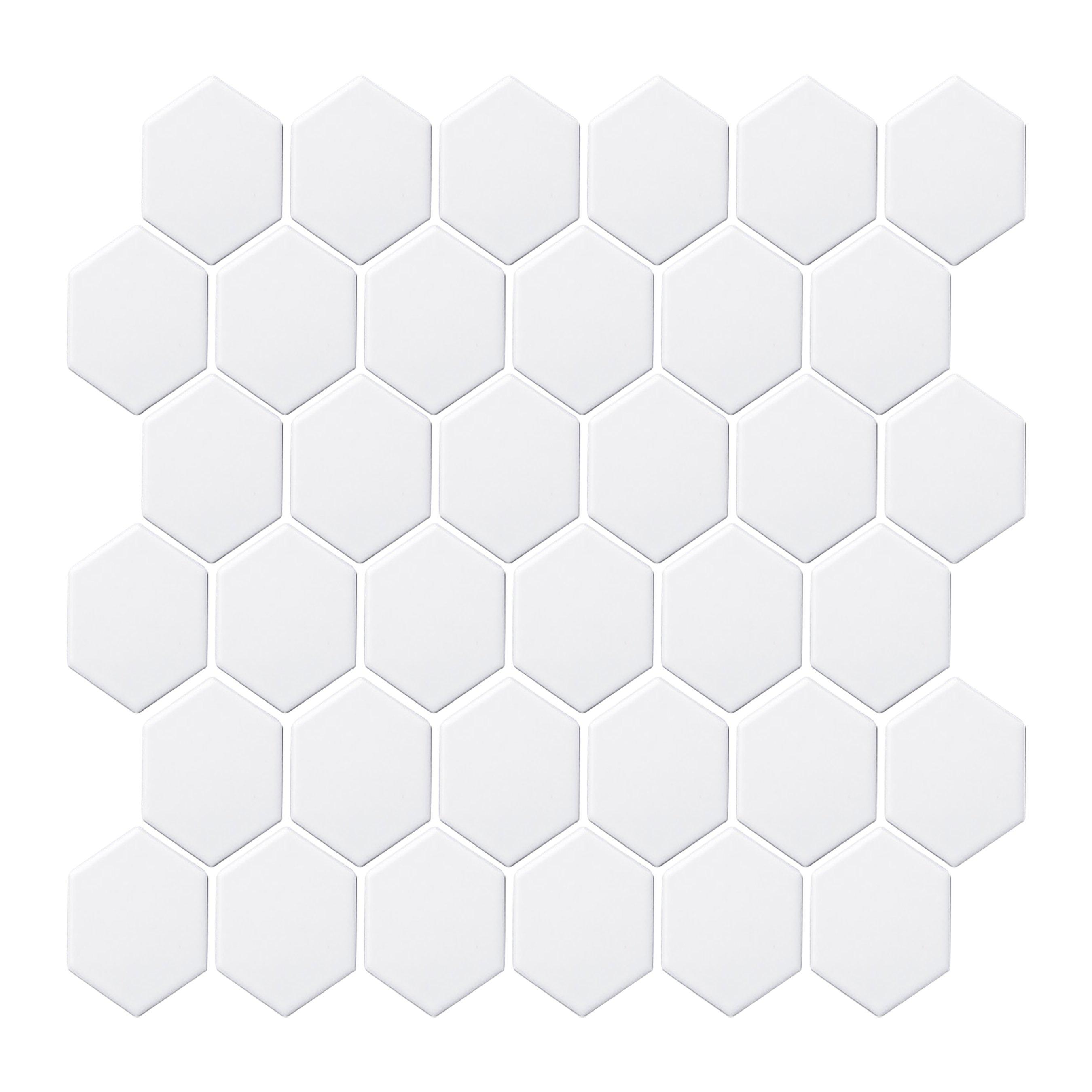 For an elevated look to your design, choose the Satin White Matte Hexagon Porcelain Mosaic with a textured finish. Use this white tile to add new visual interest in any space like the bathroom, kitchen, living room, and more.